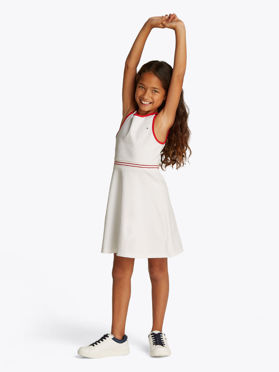 Tommy Hilfiger - CONTRAST BINDING SKATER DRESS , 8 , White , Style KG0KG08483