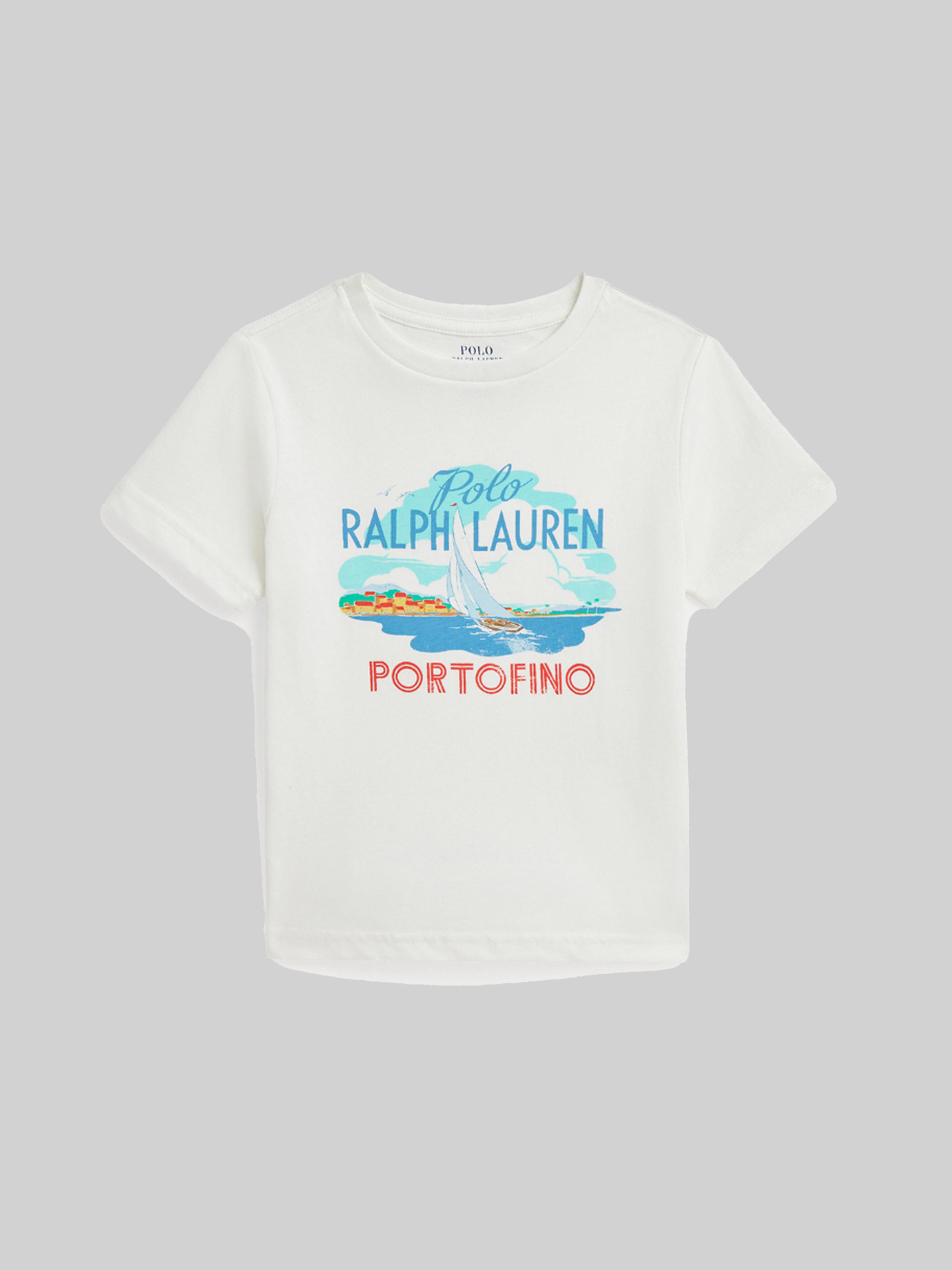 • "Polo Ralph Lauren", a sailboat graphic and "Portofino" printed on the centre front.