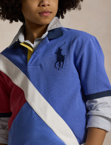 • This Polo shirt features bold colour-blocking, our iconic Big Pony and a "3" patch, representing the number typically worn by a polo team's strongest player. It's made from our breathable cotton mesh fabric and washed for added comfort.