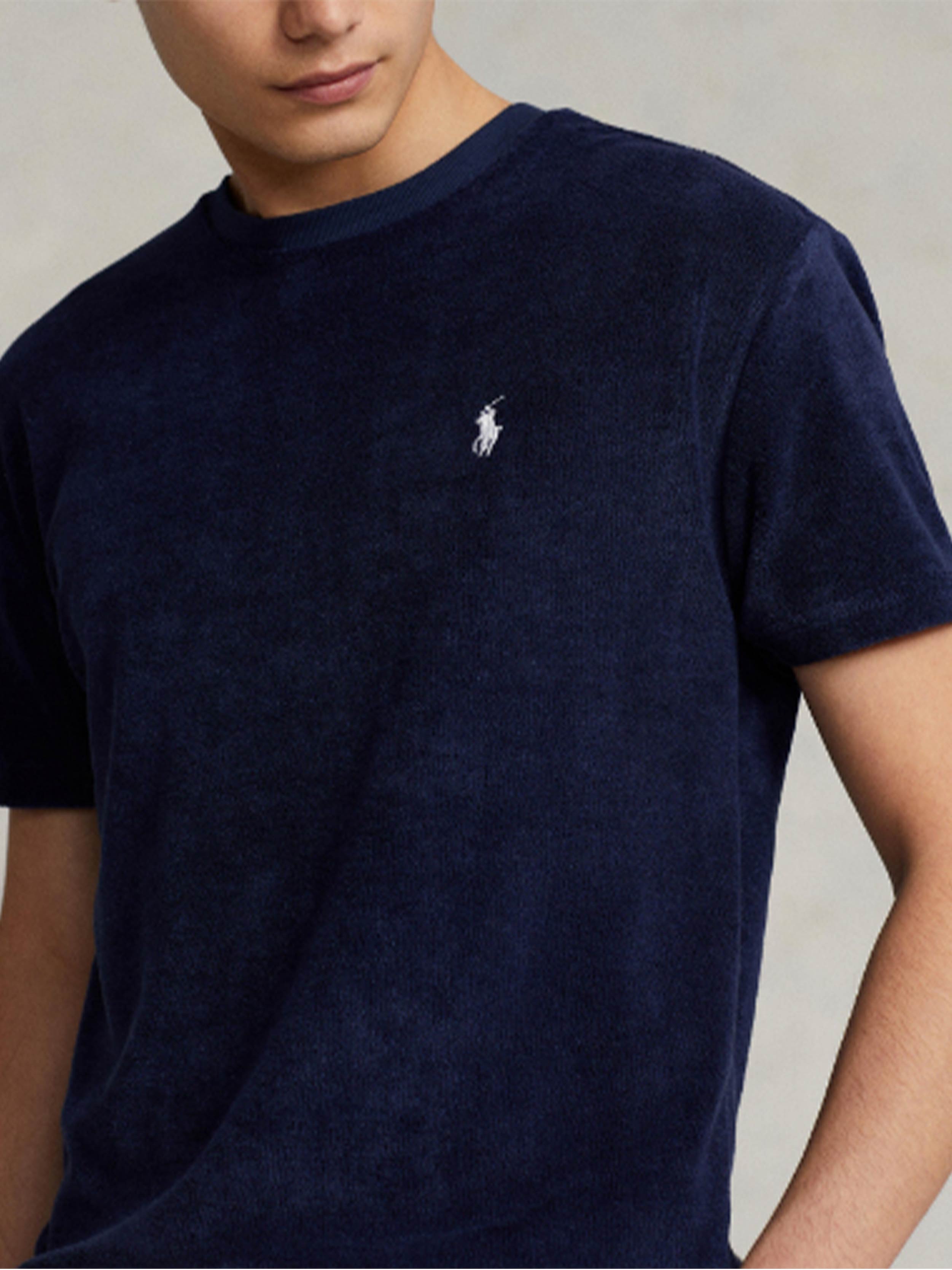 • This T-shirt’s lightweight cotton-blend fabric is crafted with recycled polyester, reinforcing Ralph Lauren’s aim to create the highest-quality products while considering our environment. Ralph Lauren partners with Better Cotton™ to improve cotton farming globally. Better Cotton trains farmers to use water efficiently, care for the health of the soil and natural habitats, reduce use of the most harmful chemicals, and implement the principles of decent work.