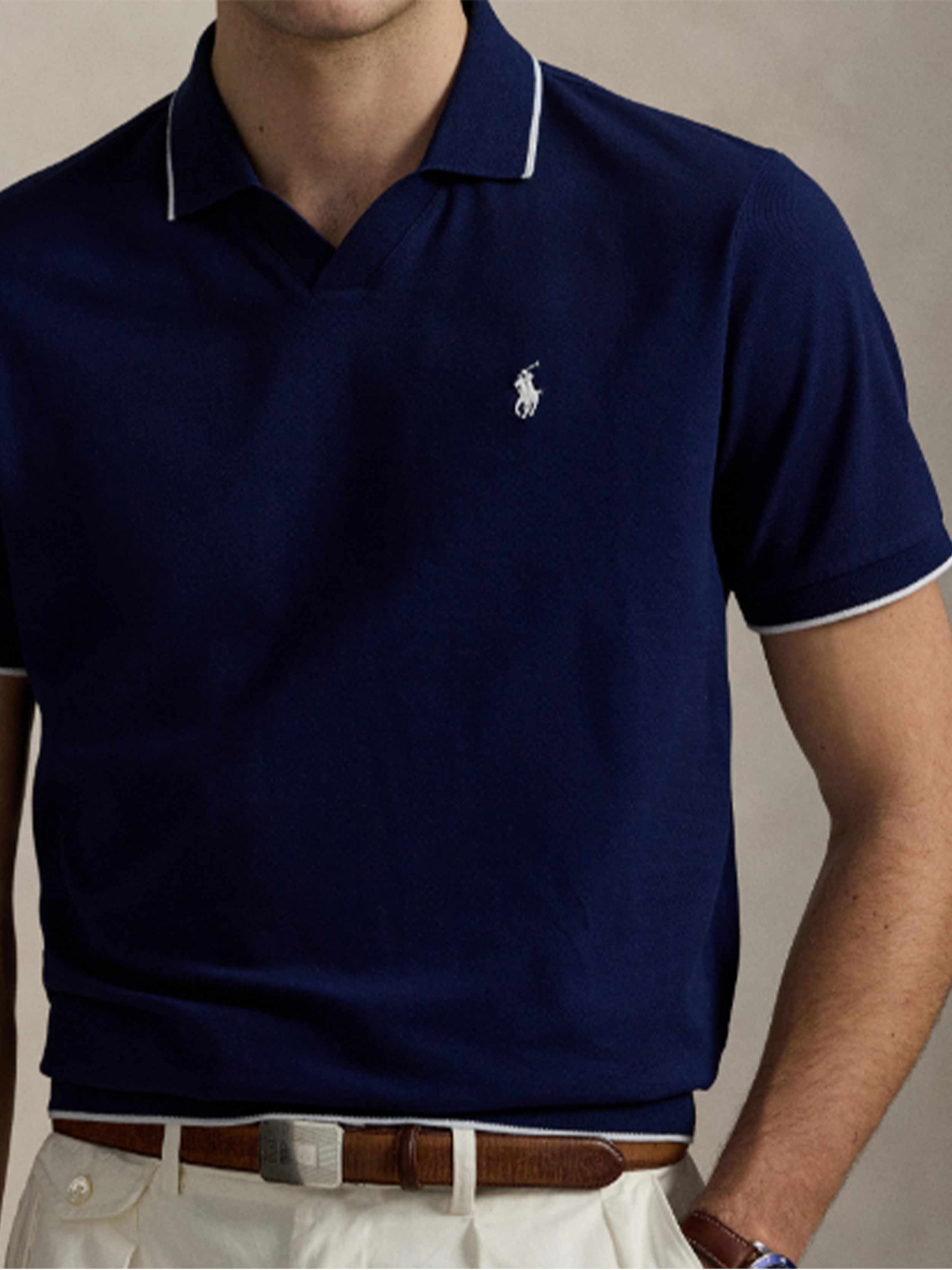 • This Johnny-collar shirt is made with cotton jacquard mesh and finished with our signature embroidered Pony.