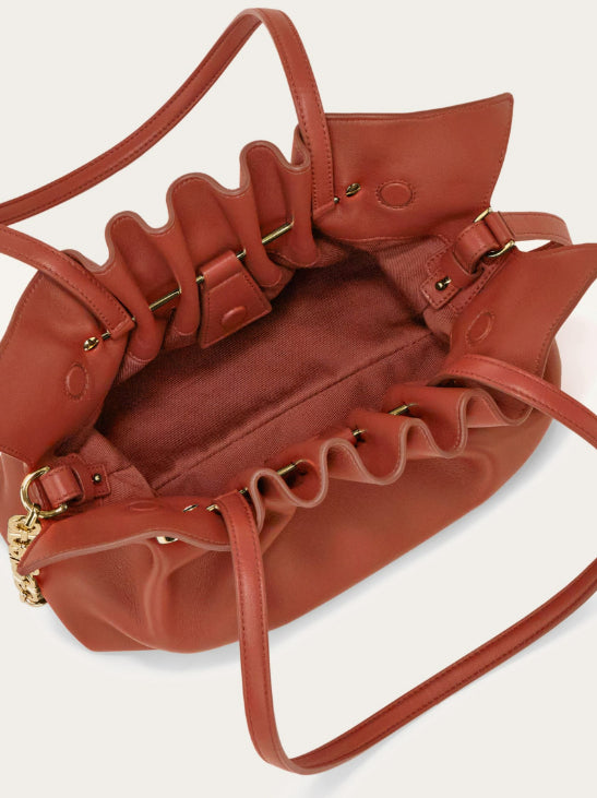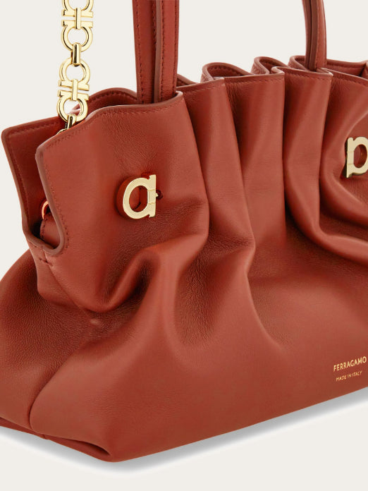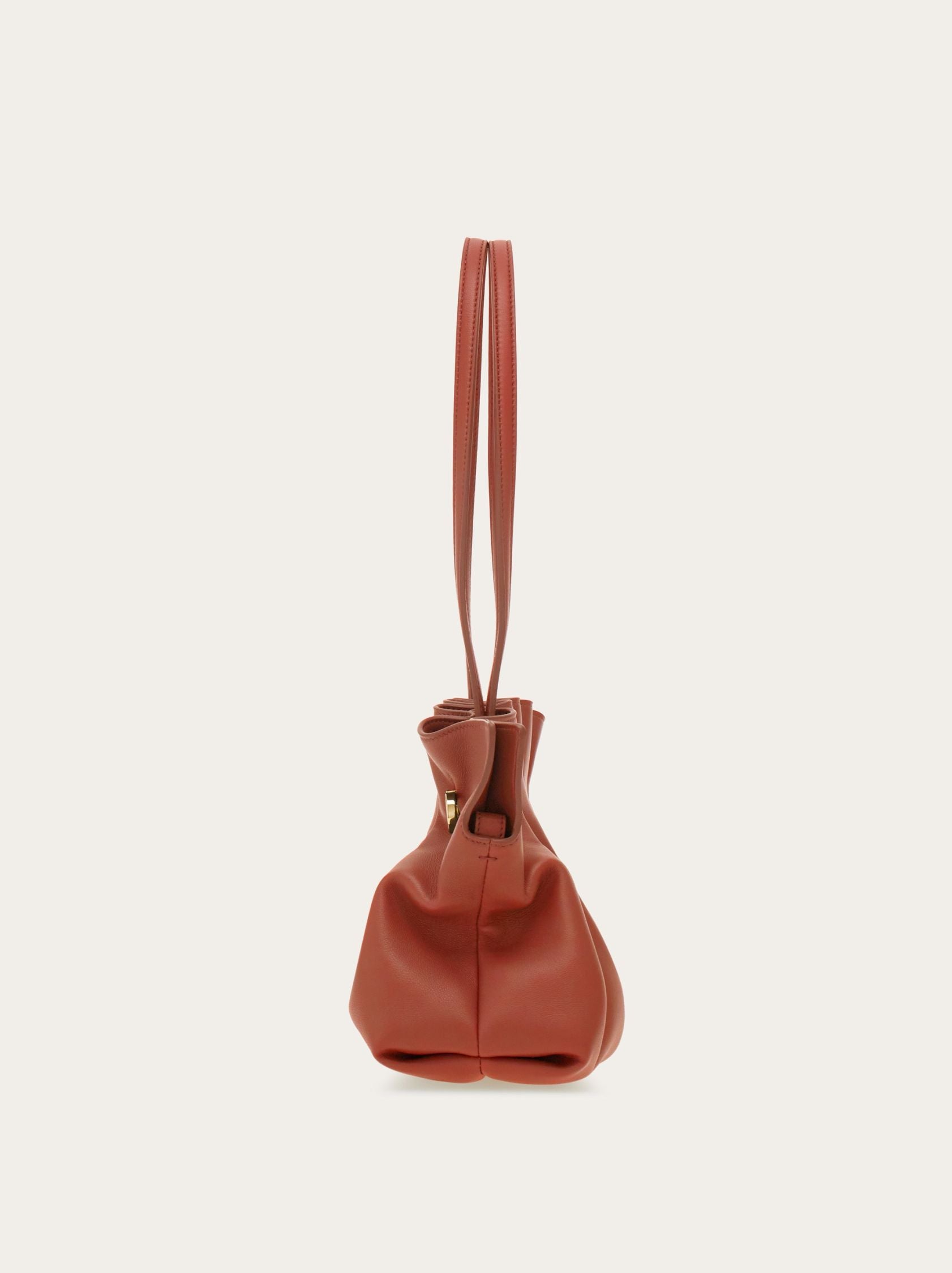 • A touch of effortless elegance, destined to be your new crush. This shoulder bag reinterprets an archive design with a modern edge. The clean-cut silhouette is enhanced by soft nappa leather, gathered at the top with a Gancio pin for a bold yet effortless look.