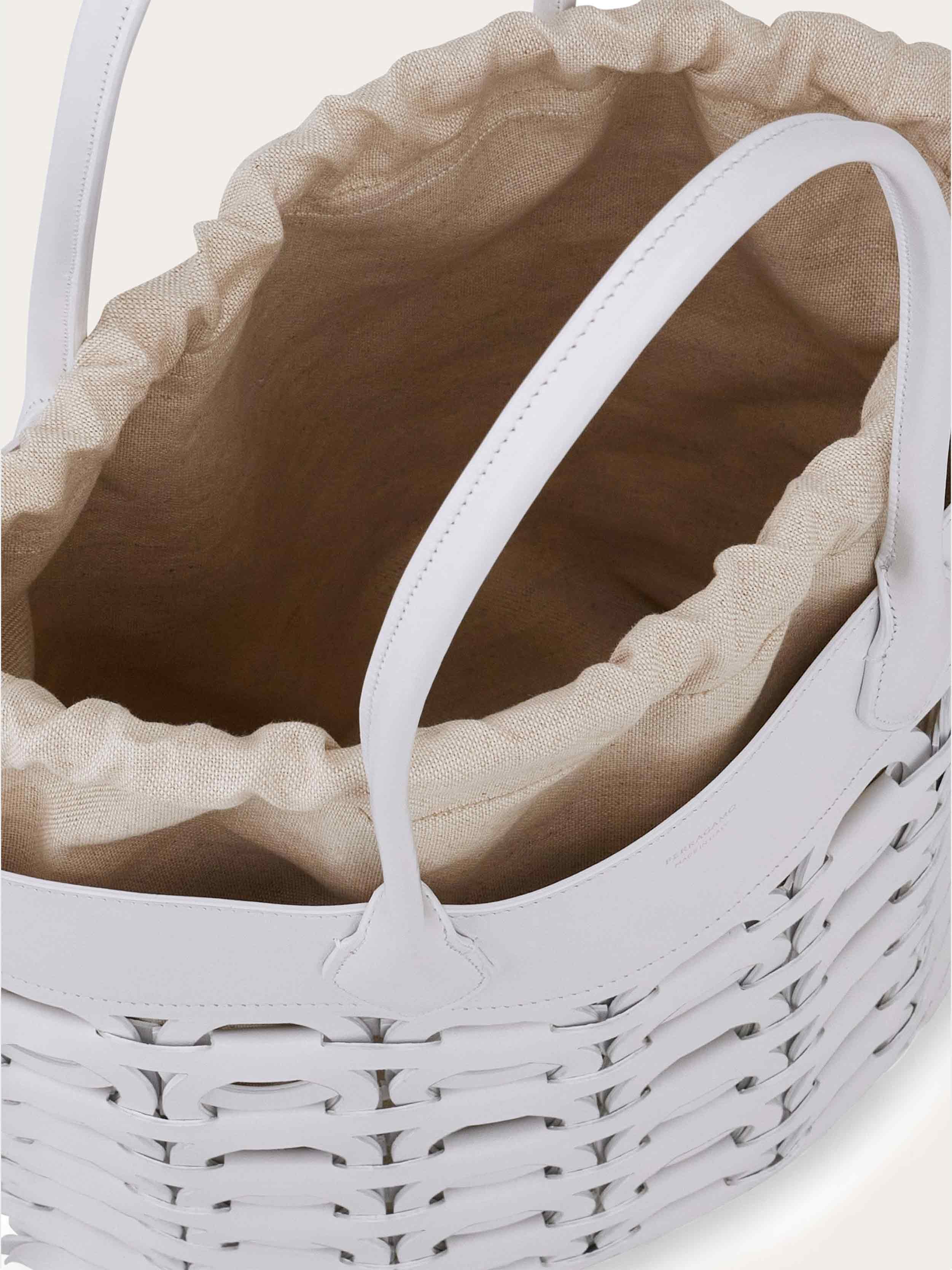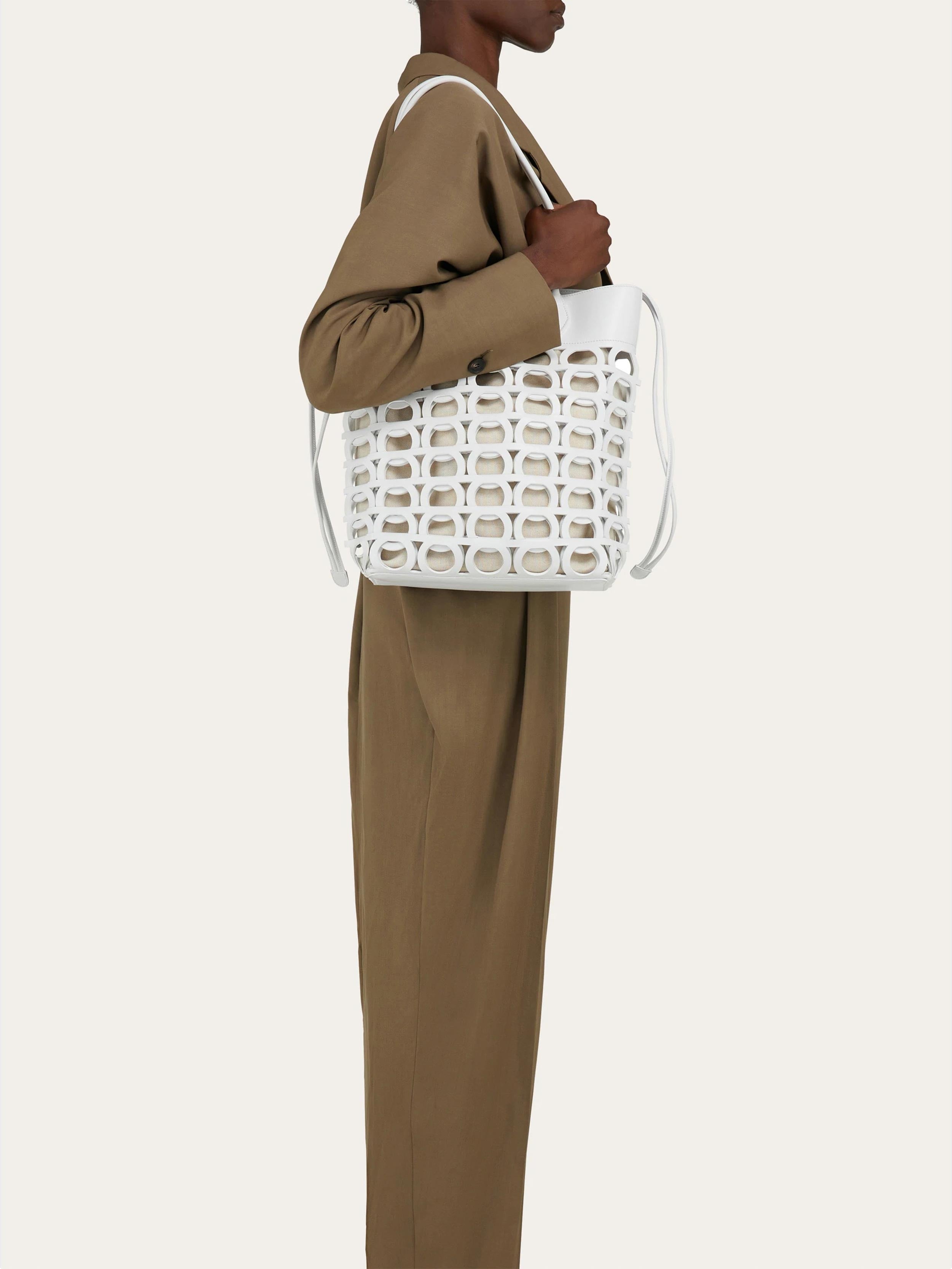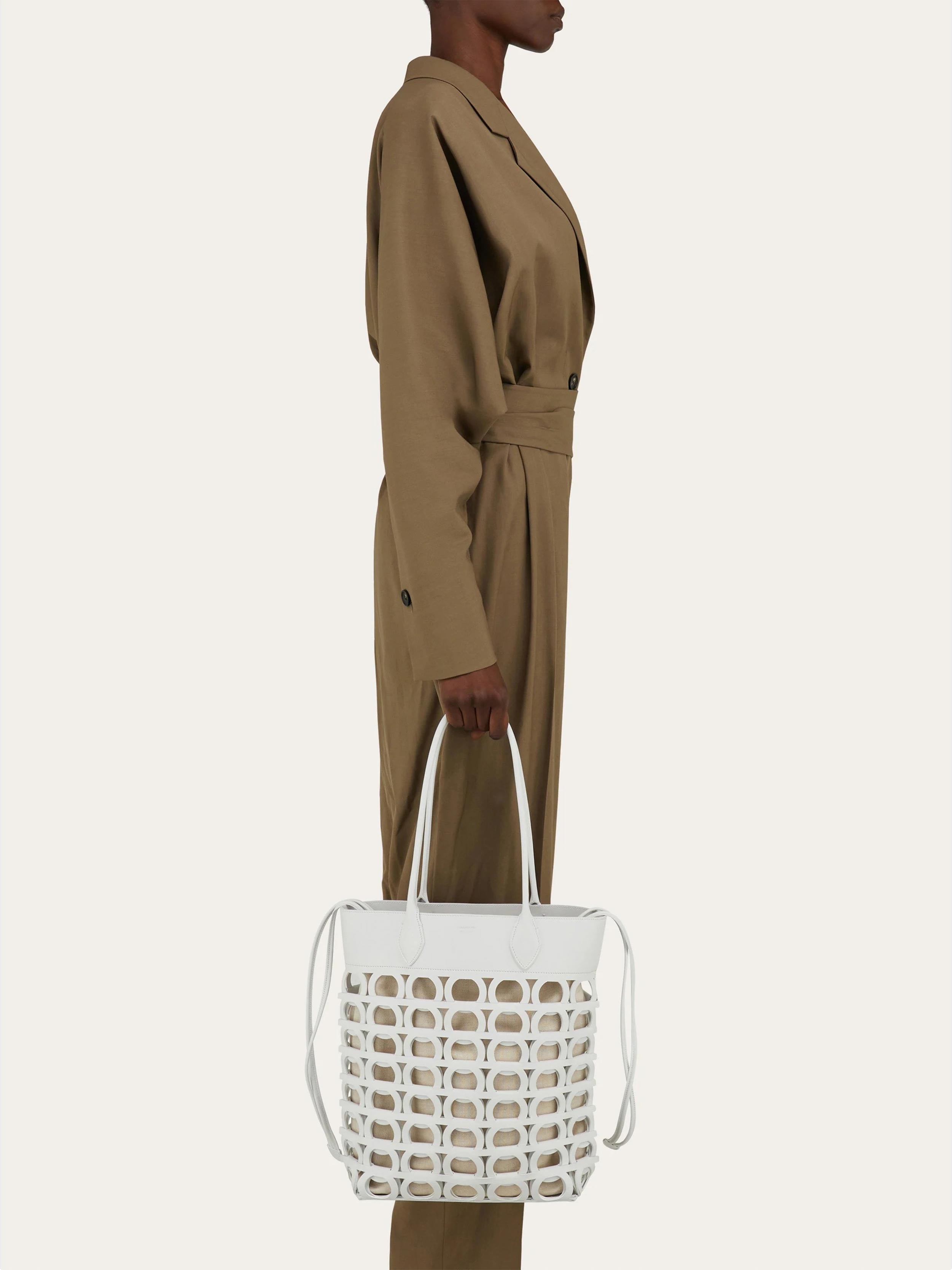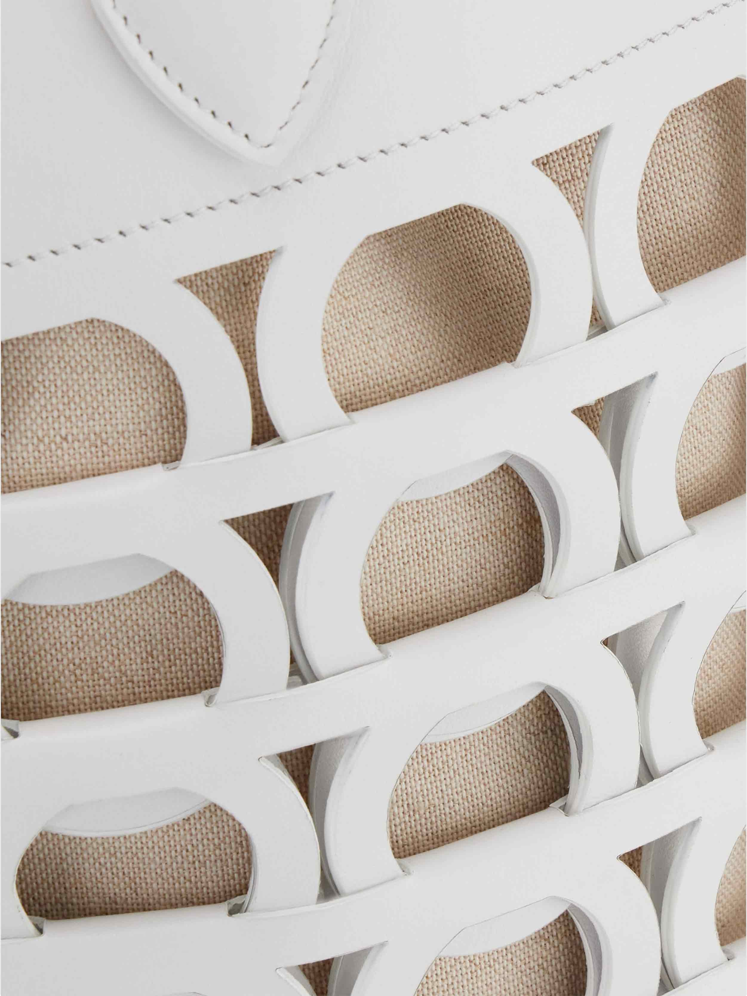 • The unmistakable Gancio outline lights up the dials of this chic new top handle. Crafted using a dual layer laser technique, this masterful construction features an internal canvas pouch.