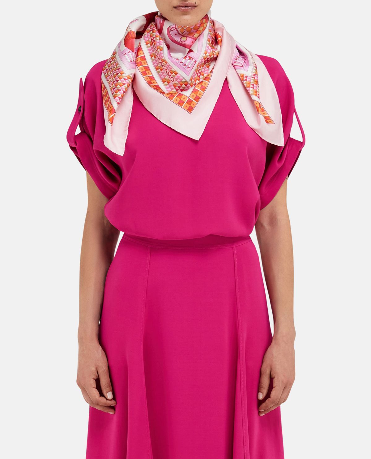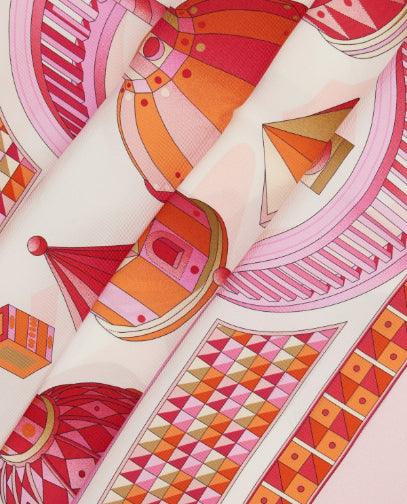 • Pure silk scarf decorated with the new Nadir print, a sophisticated mix of architectural elements inspired by Renaissance aesthetics: sundials, churches, fountains and obelisks set in an ideal square.