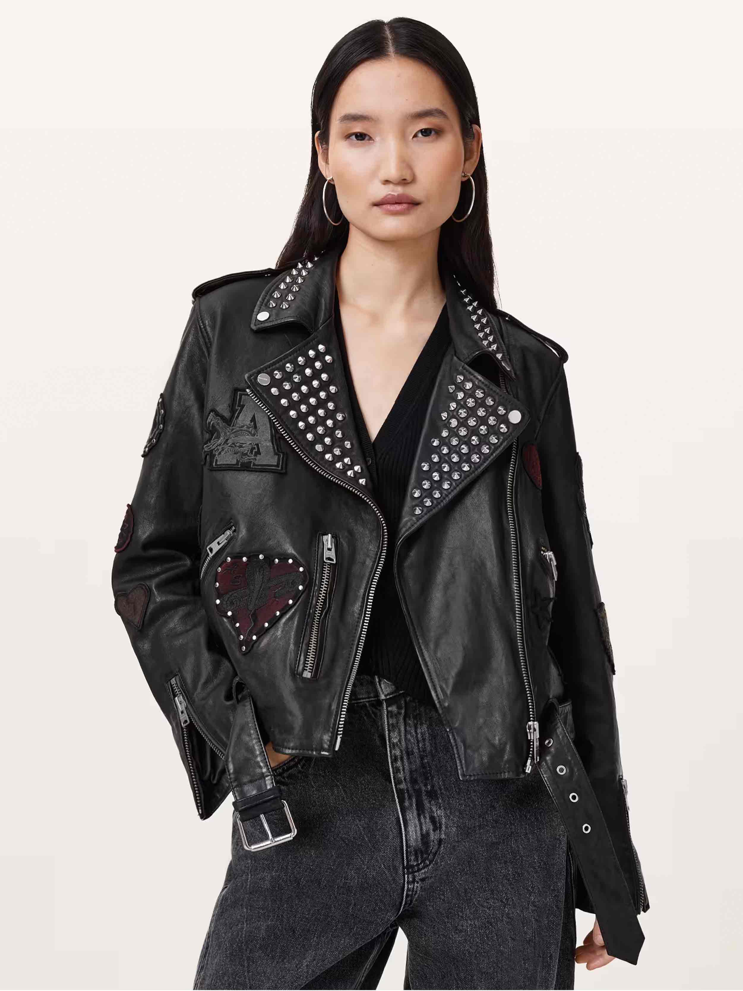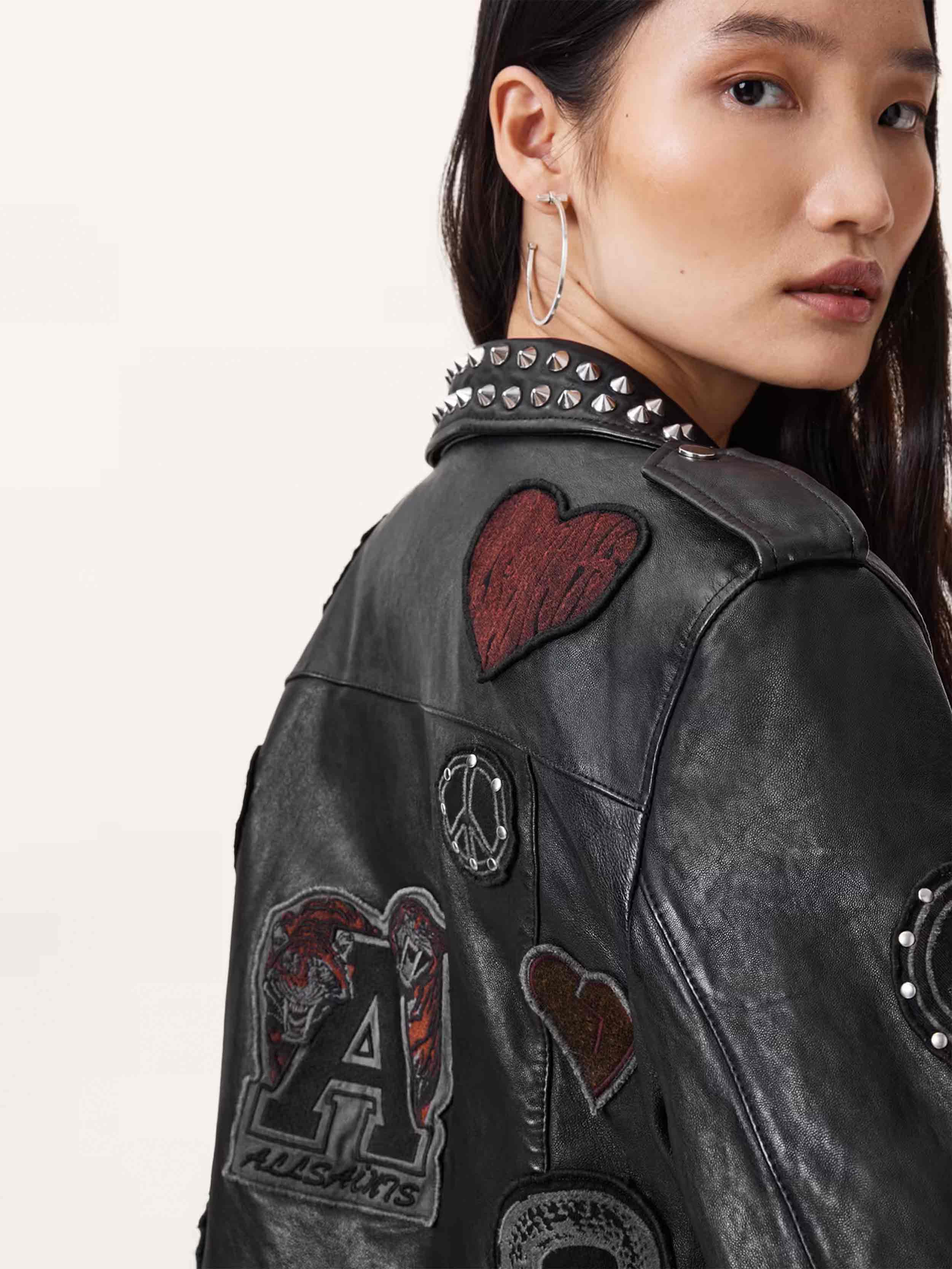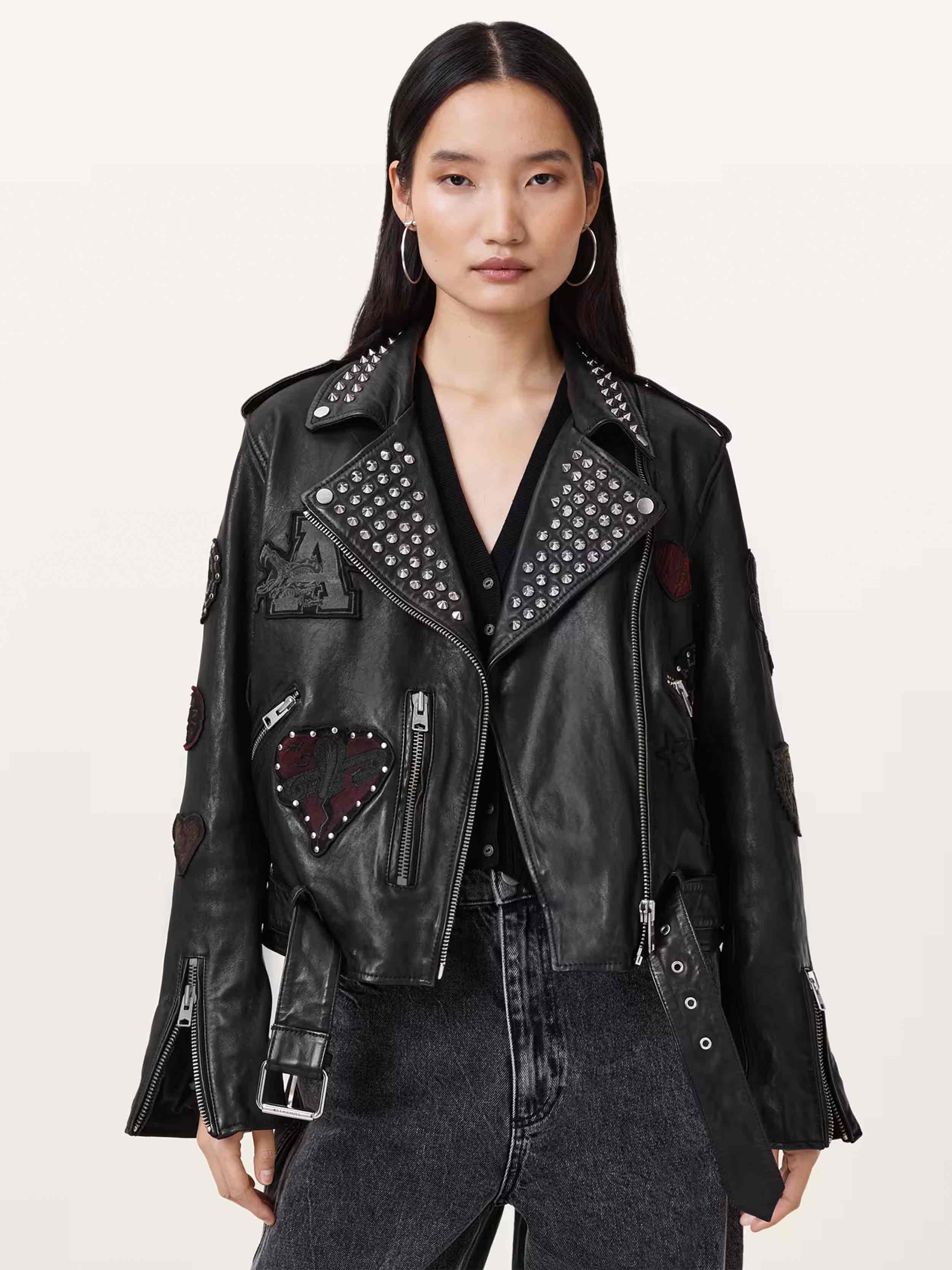 • AllSaints - Women's College Relaxed Fit Leather Biker Jacket