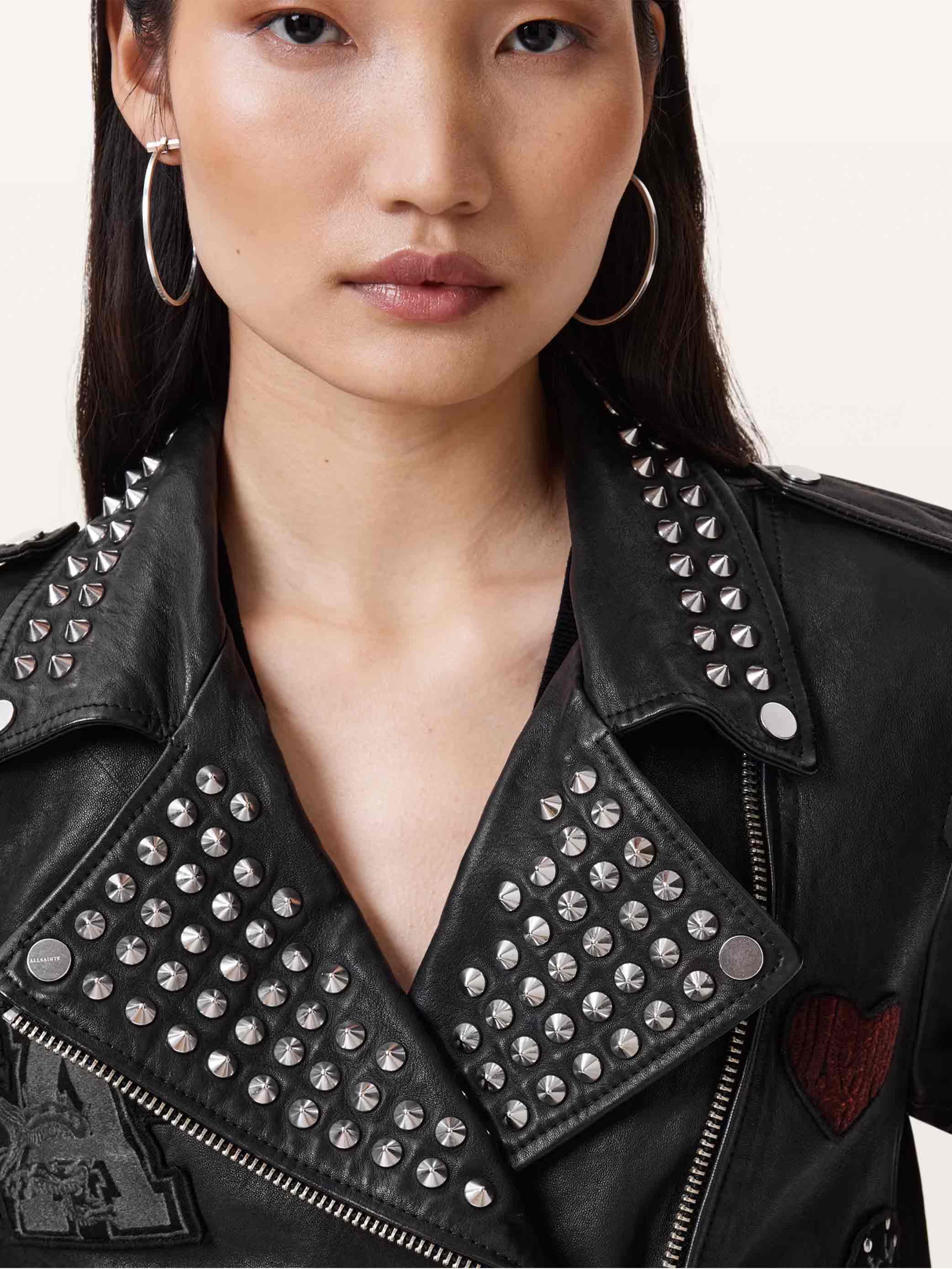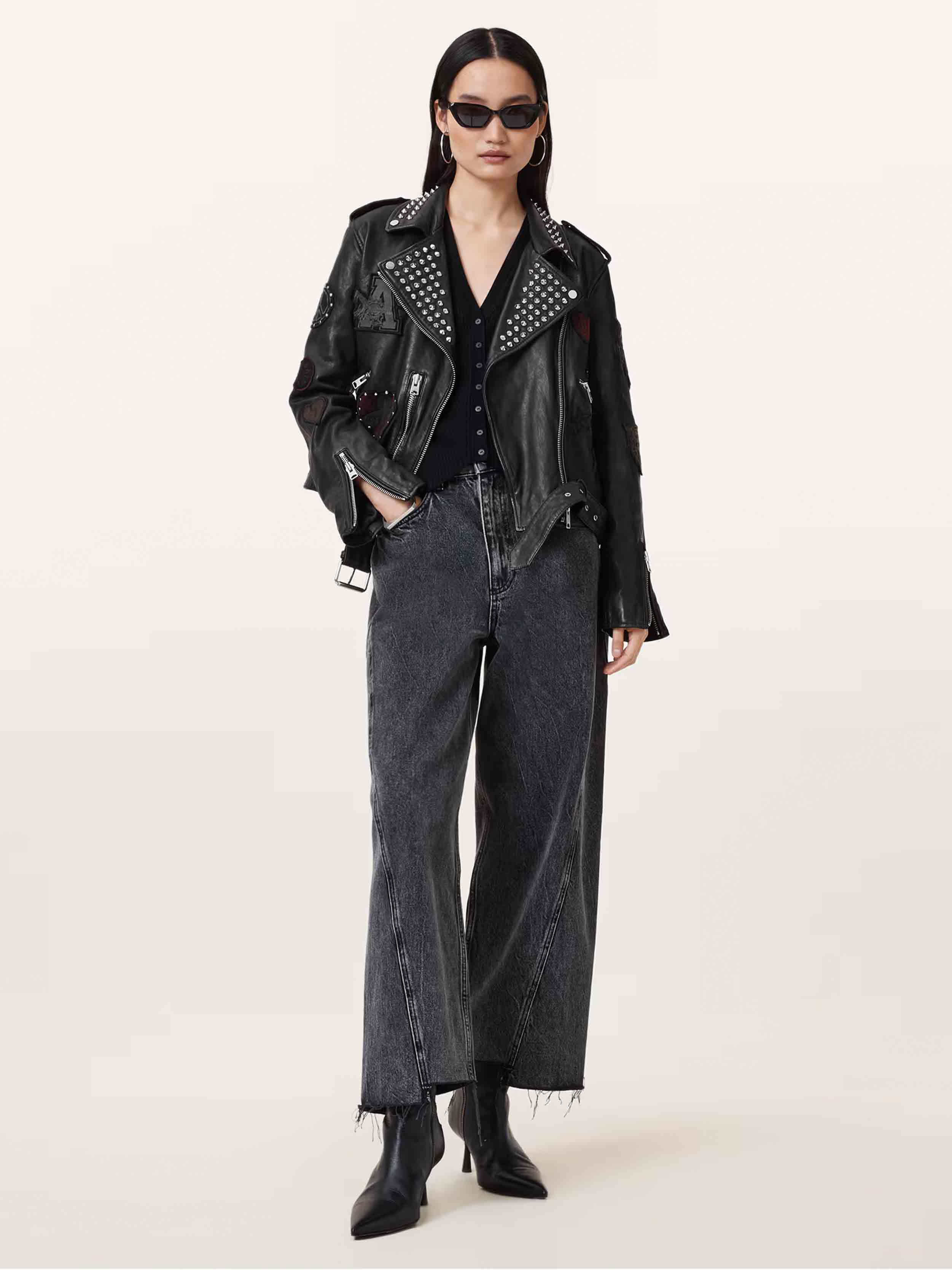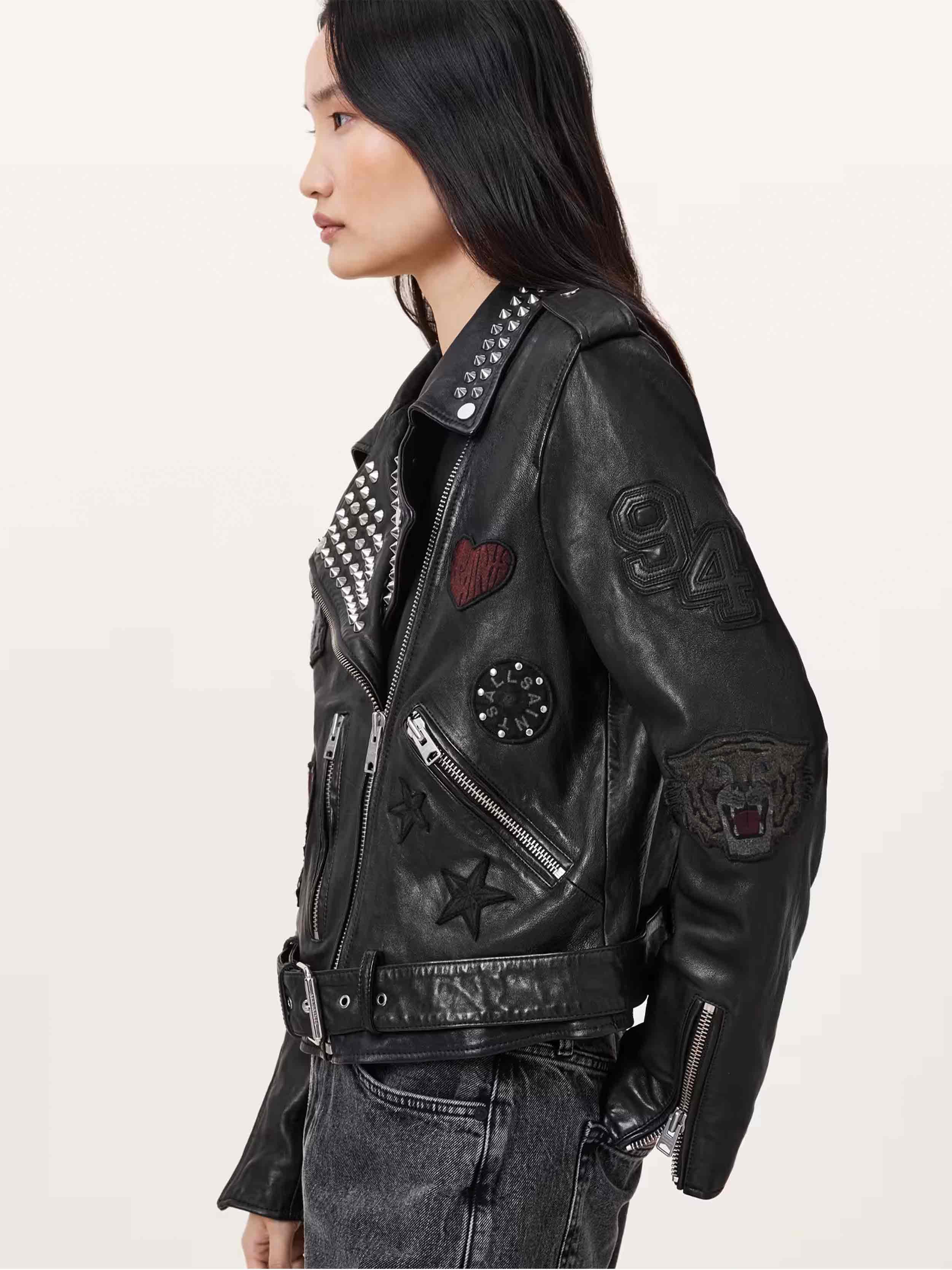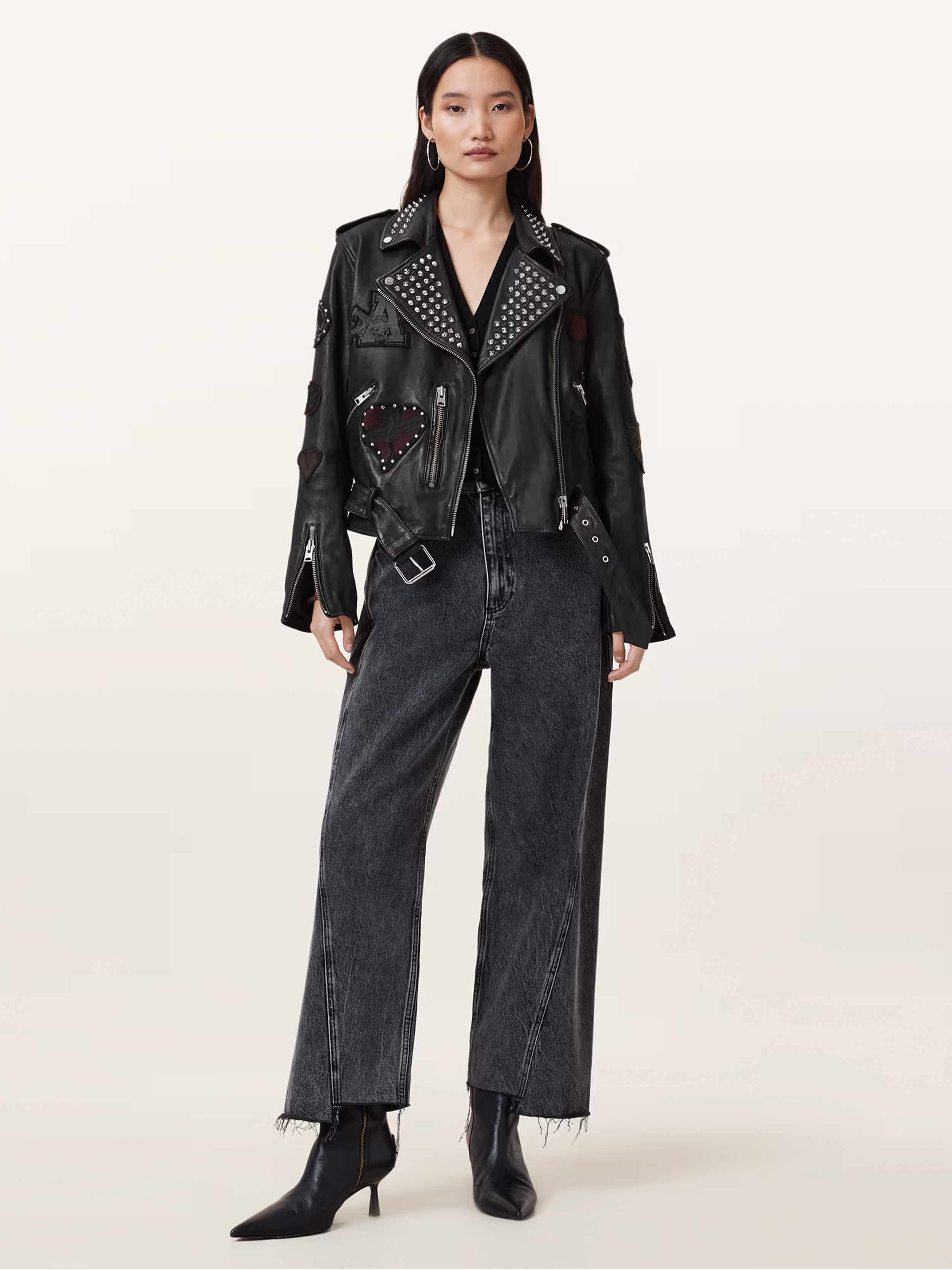 • AllSaints - Women's College Relaxed Fit Leather Biker Jacket