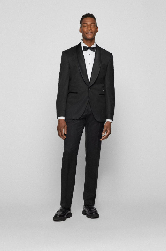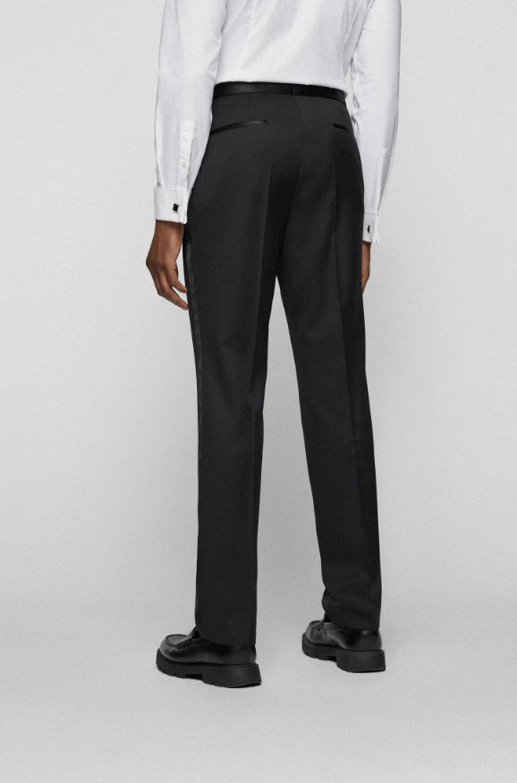 • BOSS - Men's Regular-Fit Tuxedo Trousers In Virgin-Wool Serge