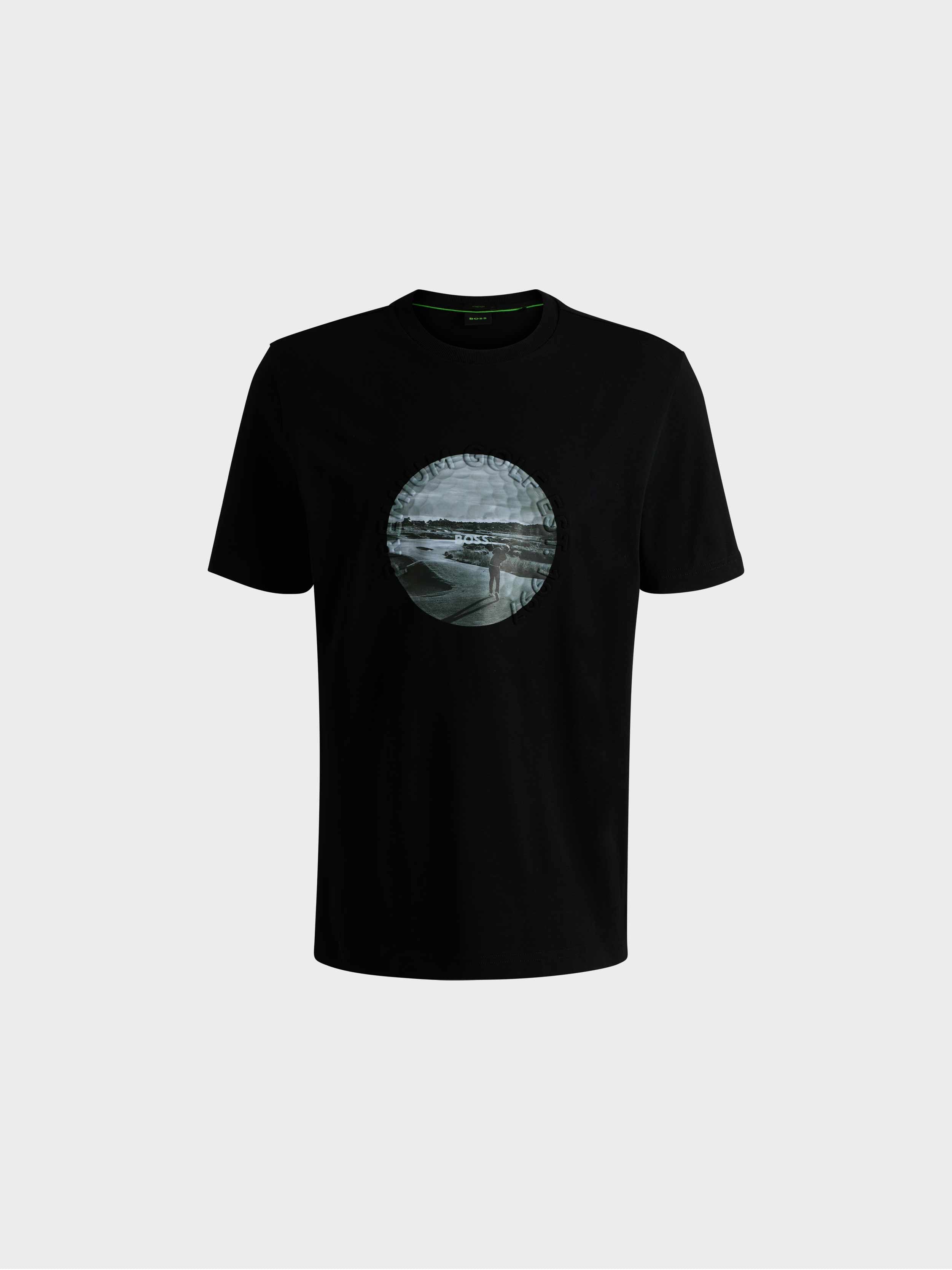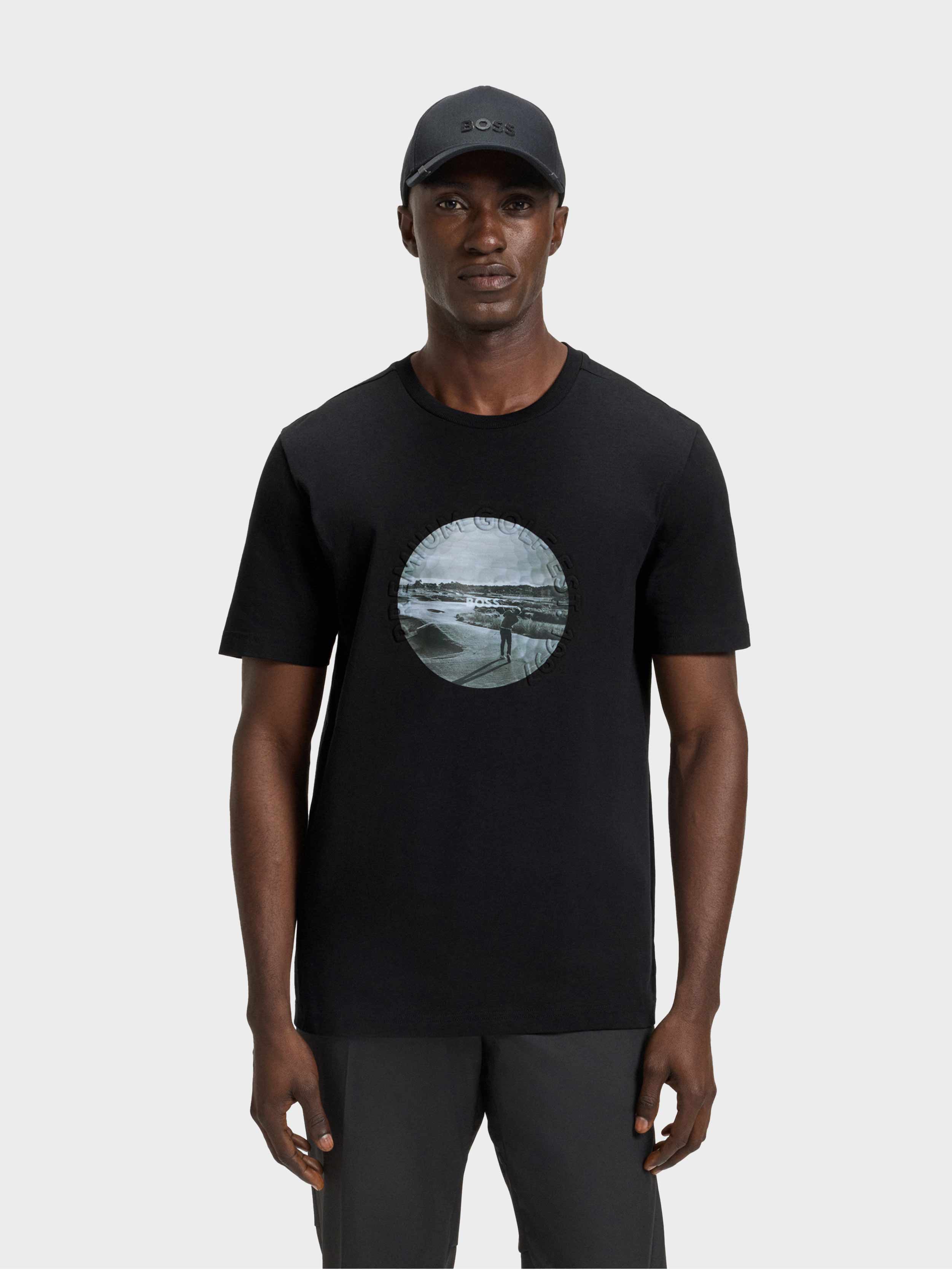 • In stretch jersey with a breathable feel, this BOSS Menswear T-shirt has modern golfing artwork. Cut to a casual straight fit. This product’s raw material is derived from regenerative agriculture: an approach focused on preservation and restoration that aims to increase biodiversity, preserve water quality and improve soil health while absorbing CO2. Regenerative agriculture also promotes animal welfare and fair working conditions for farmers.