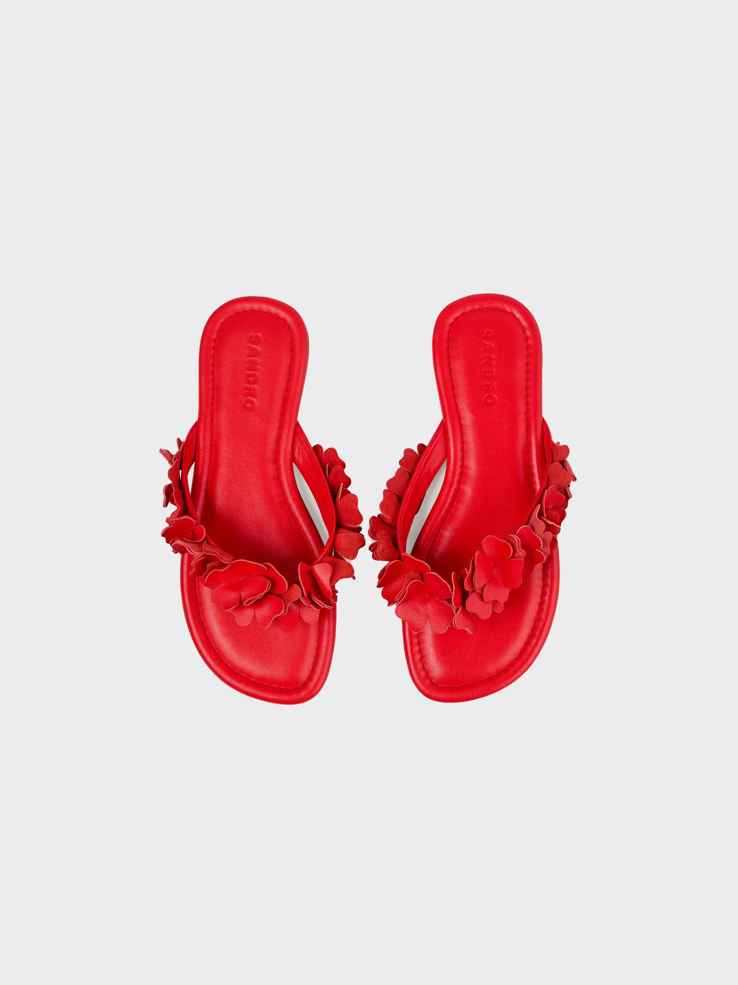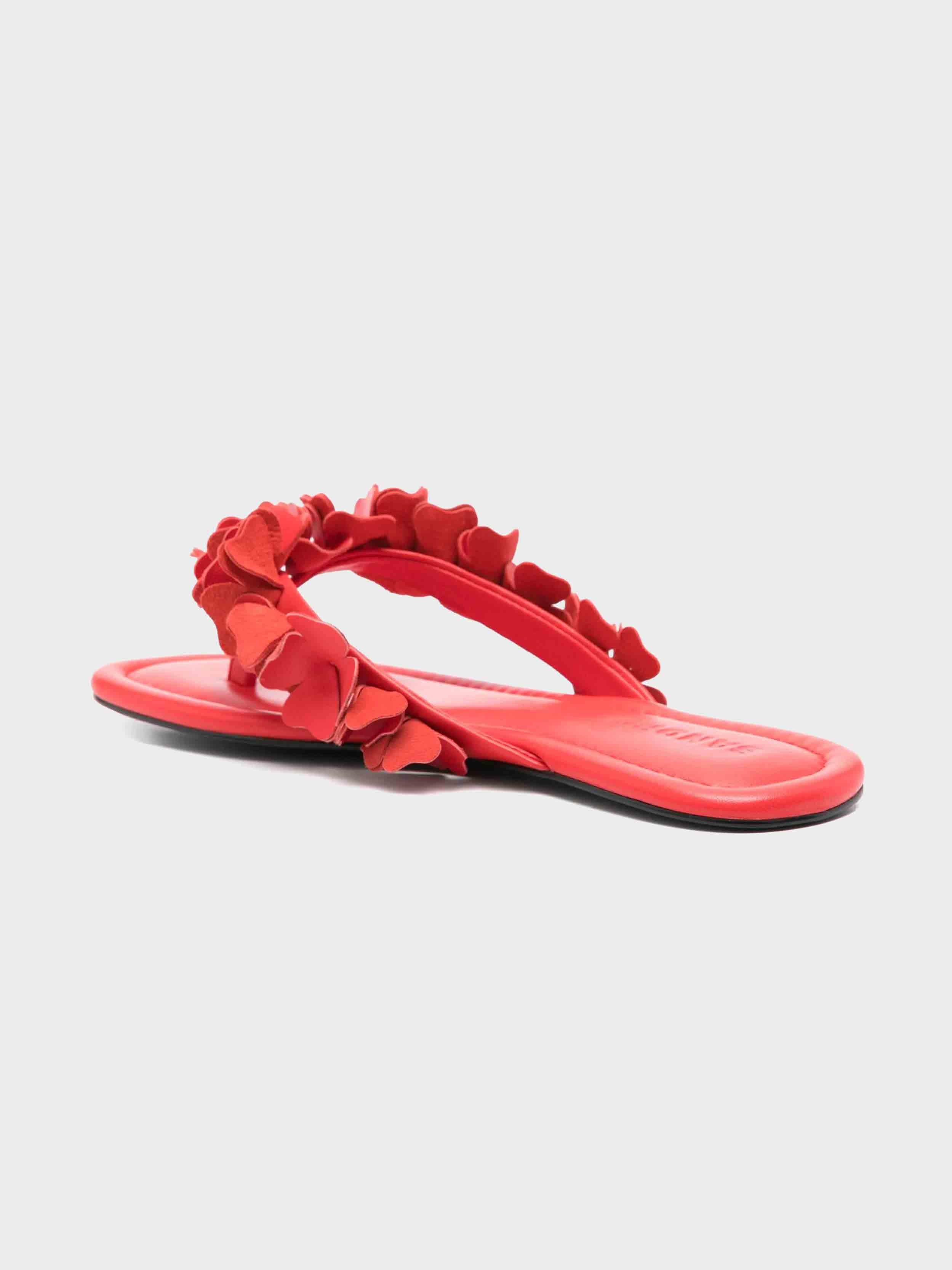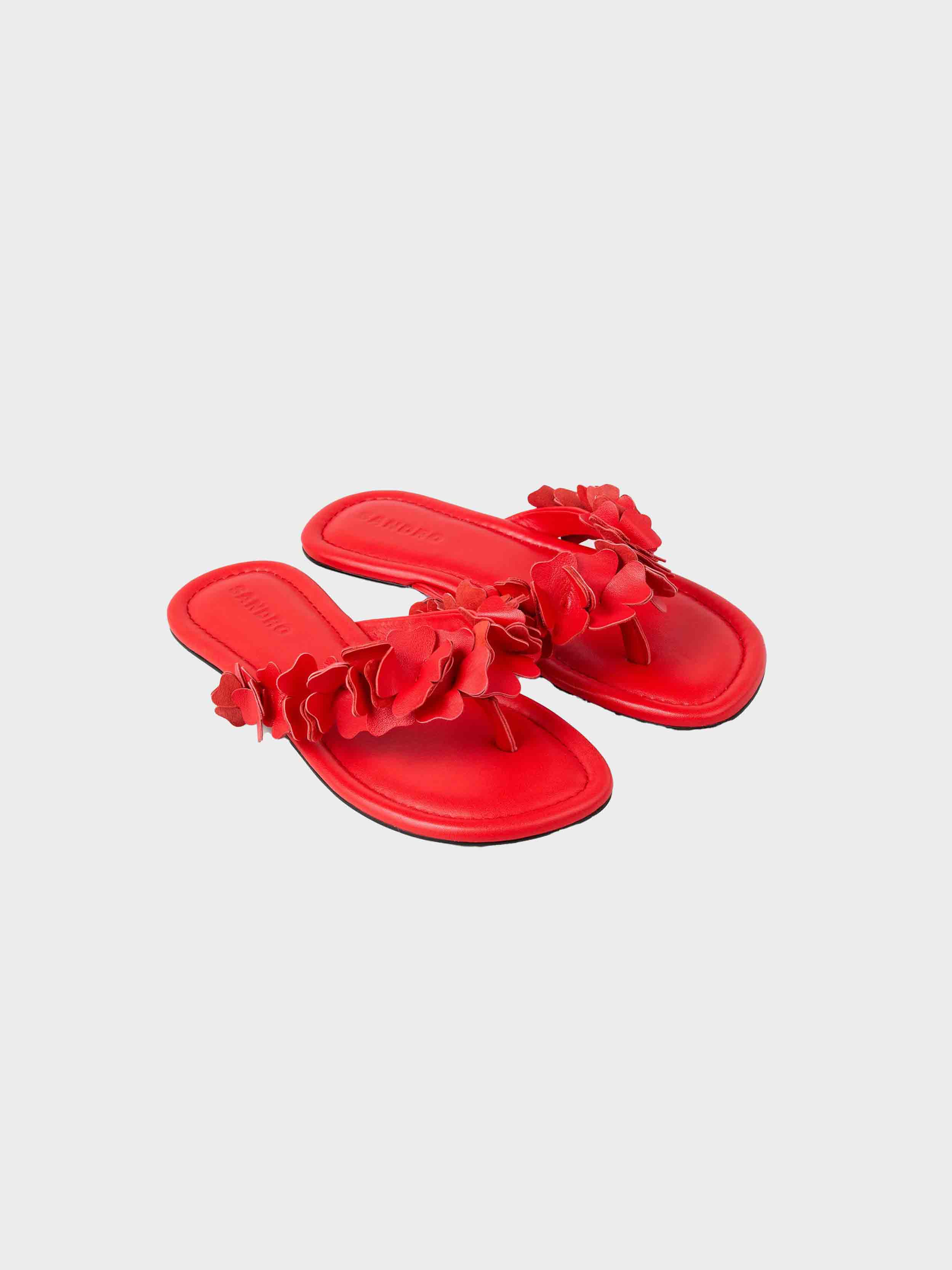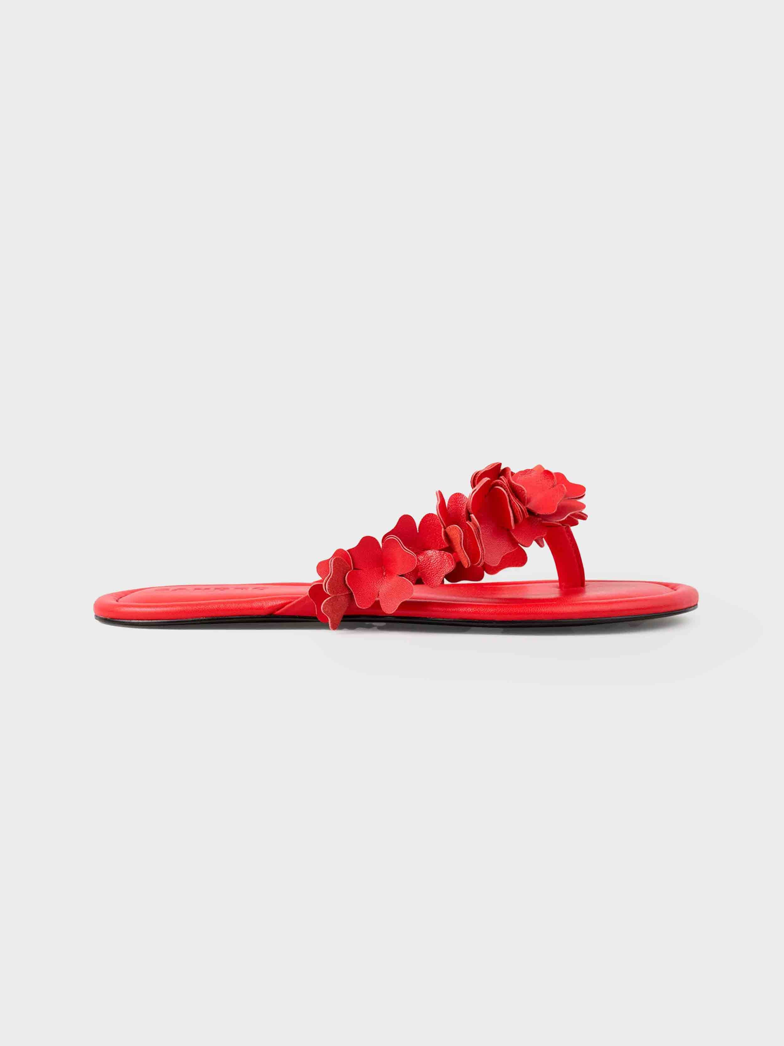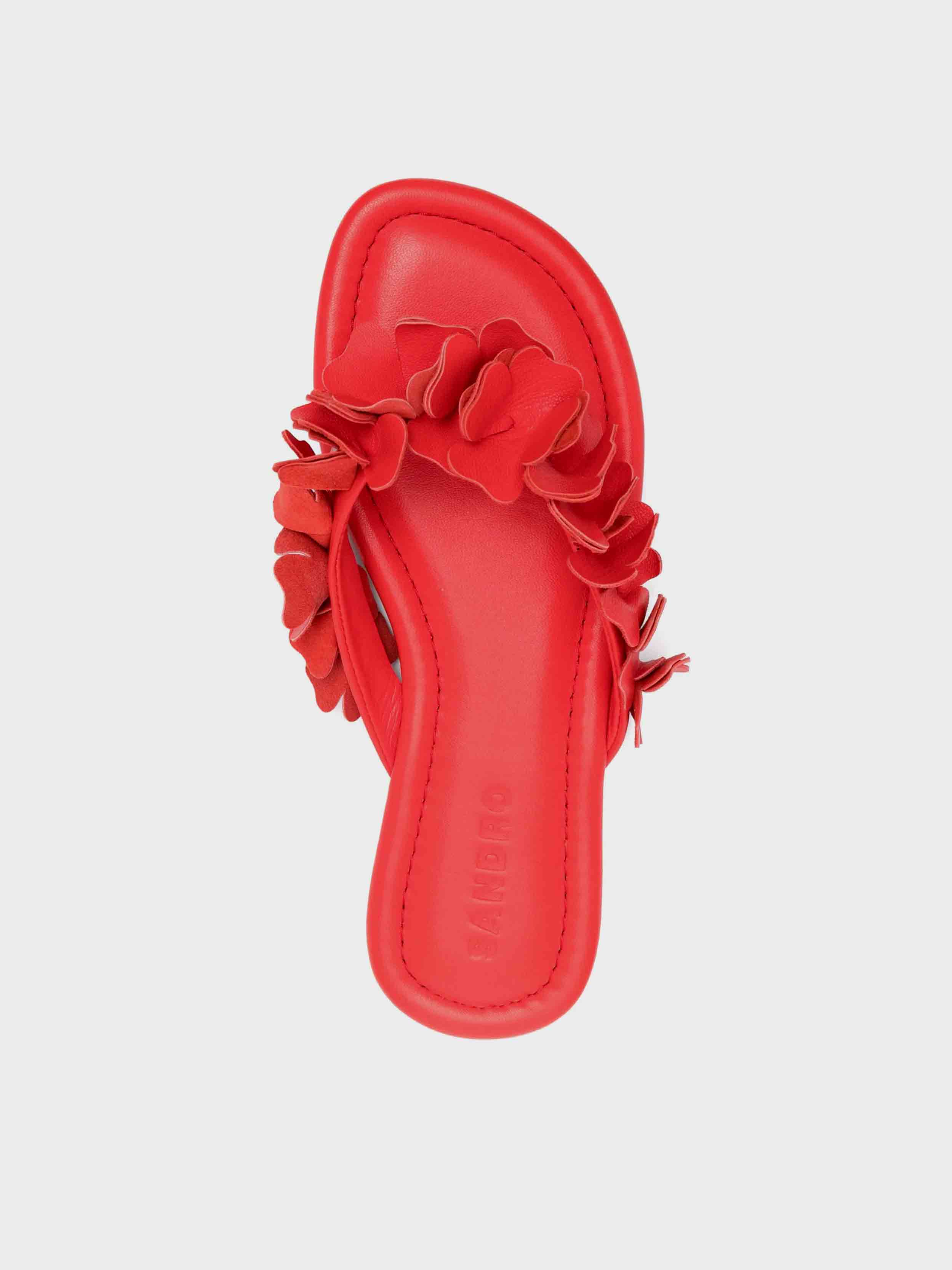 • Flat sandals in smooth leather, with straps embellished with cut-out flowers.