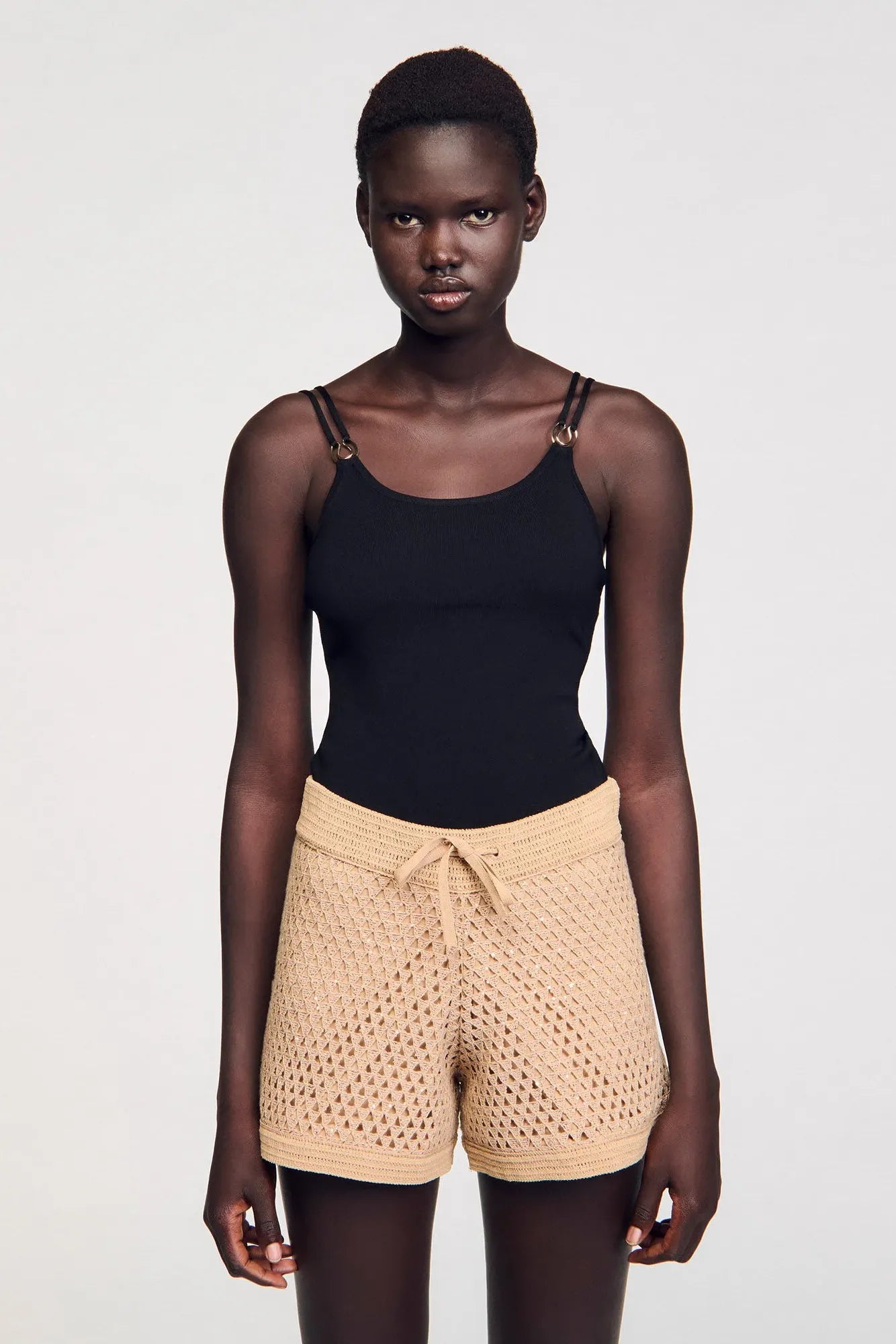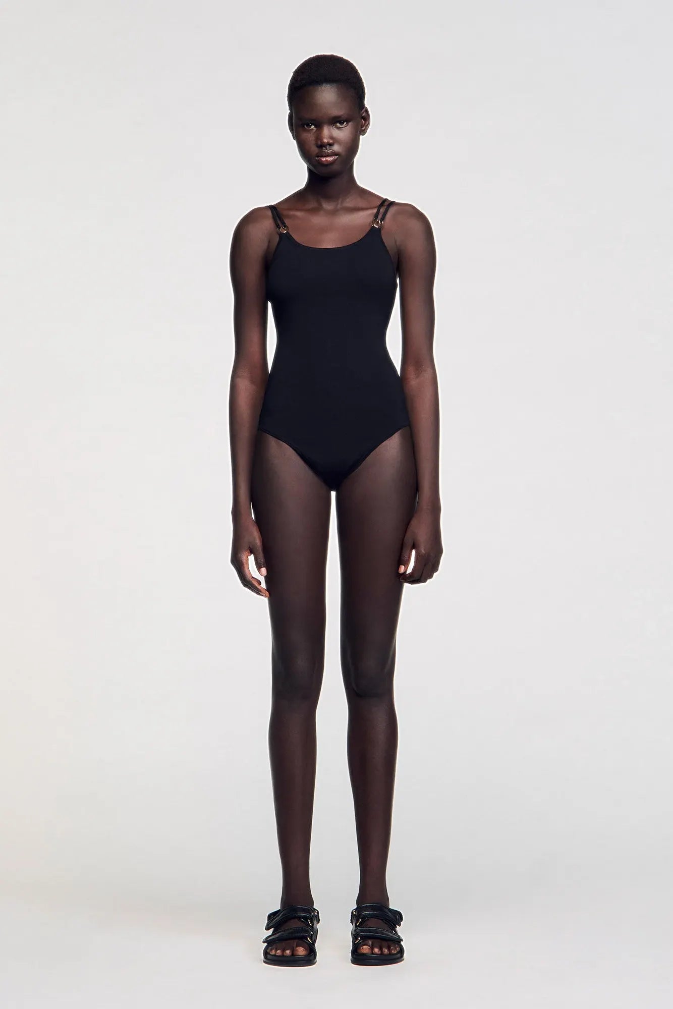 • Knit bodysuit with double straps and jewellery detail.