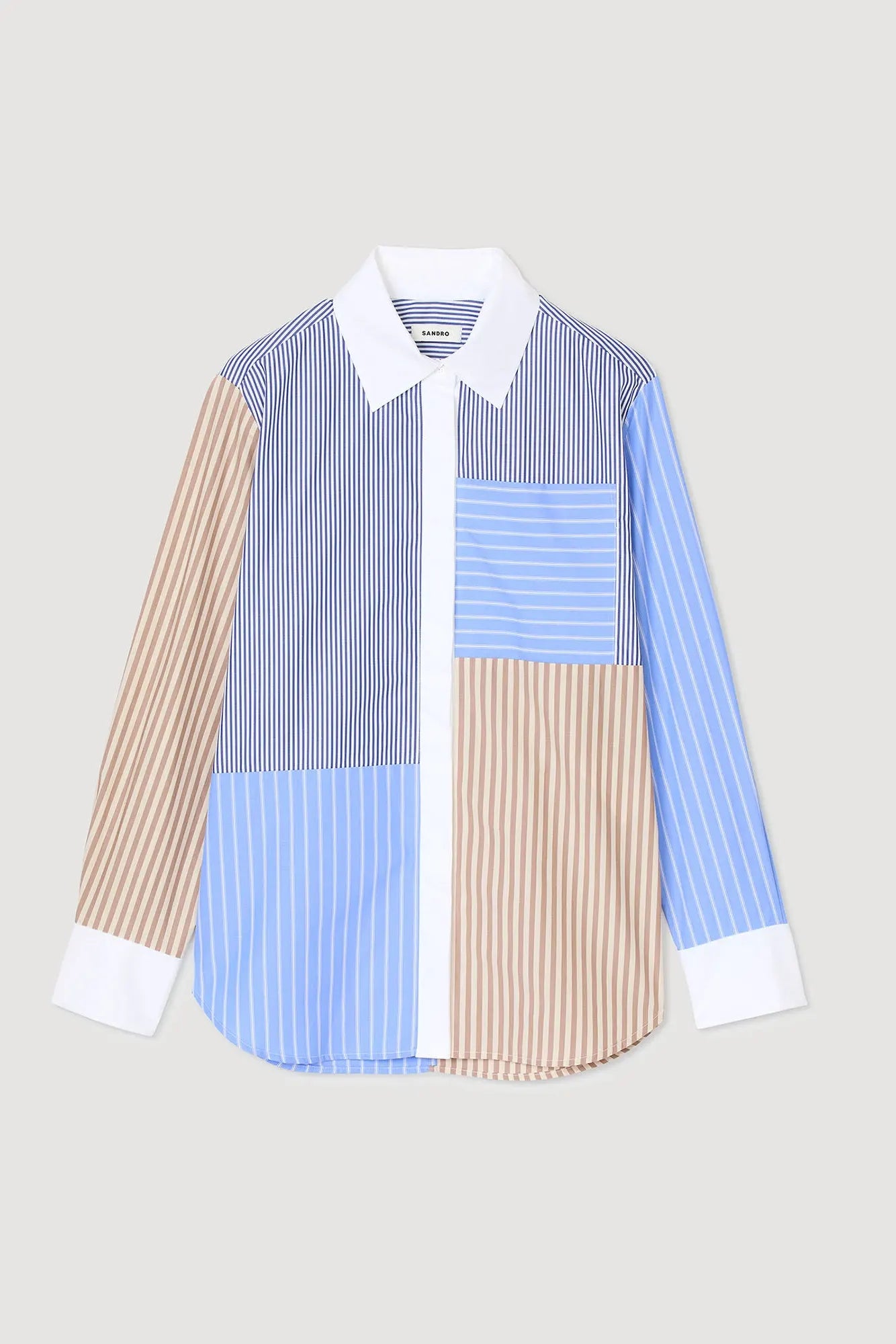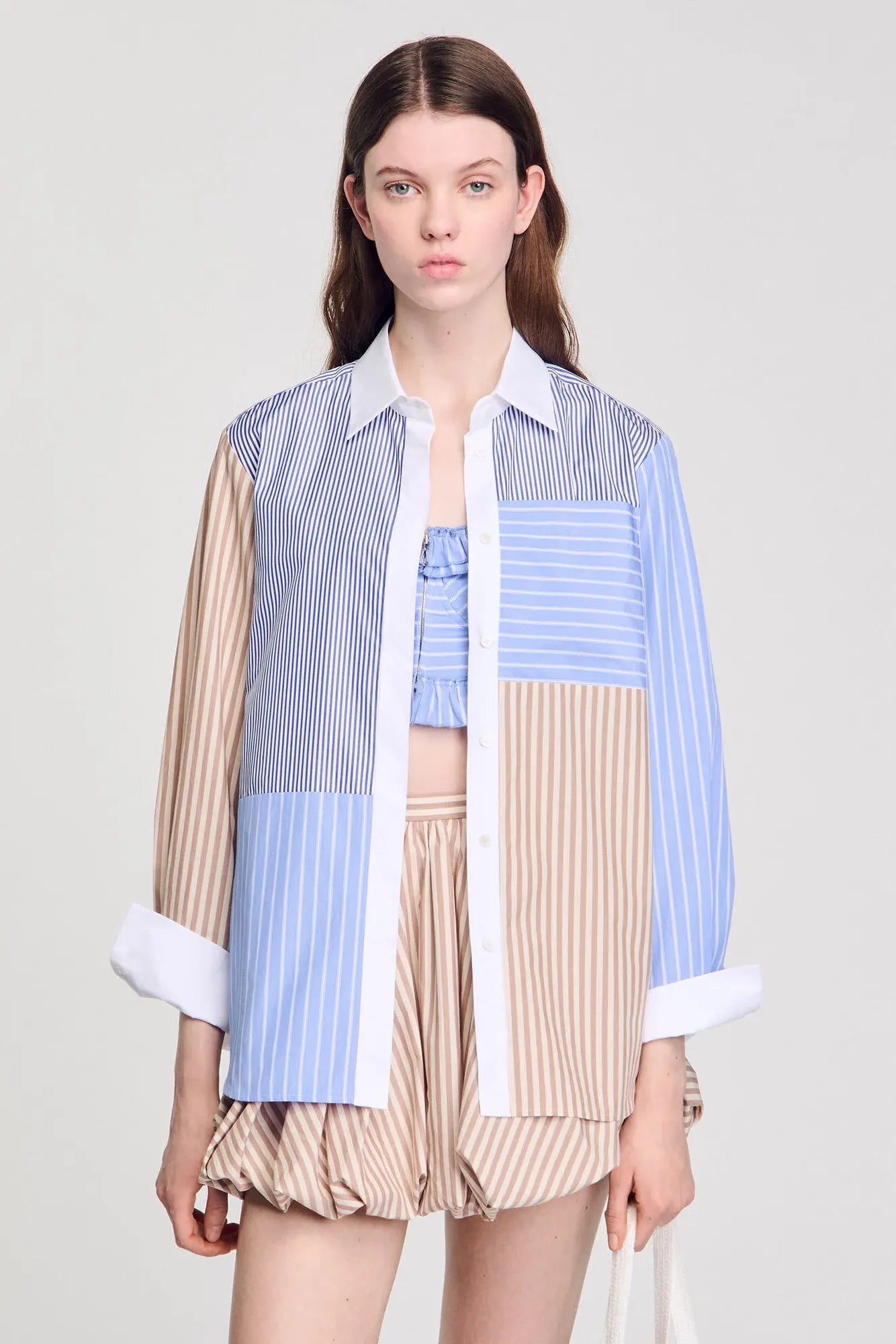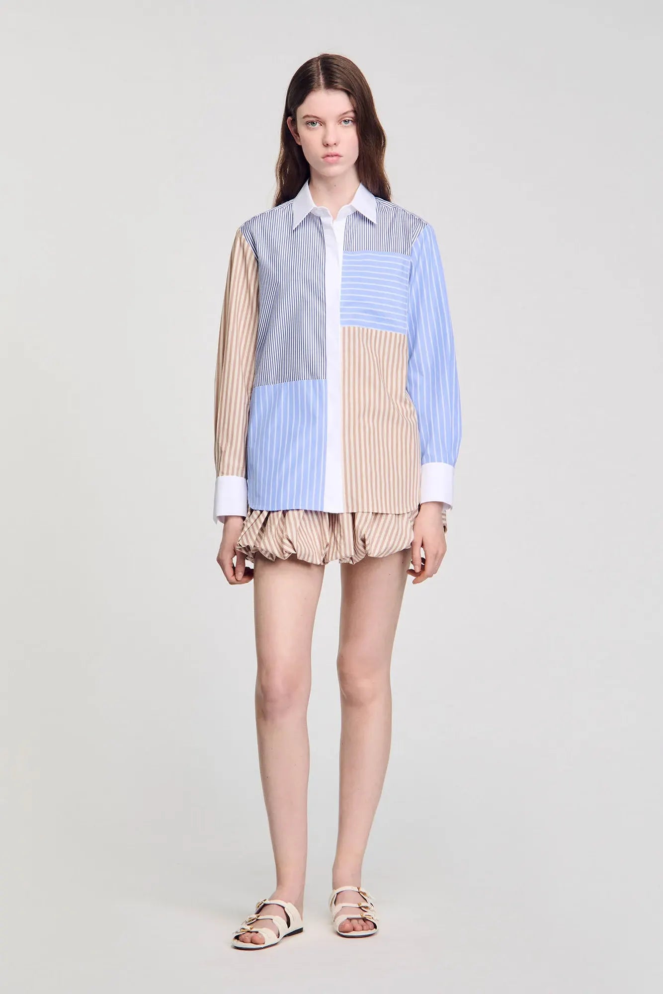 • Poplin shirt with long sleeves and button placket, with a mix of stripe motifs.