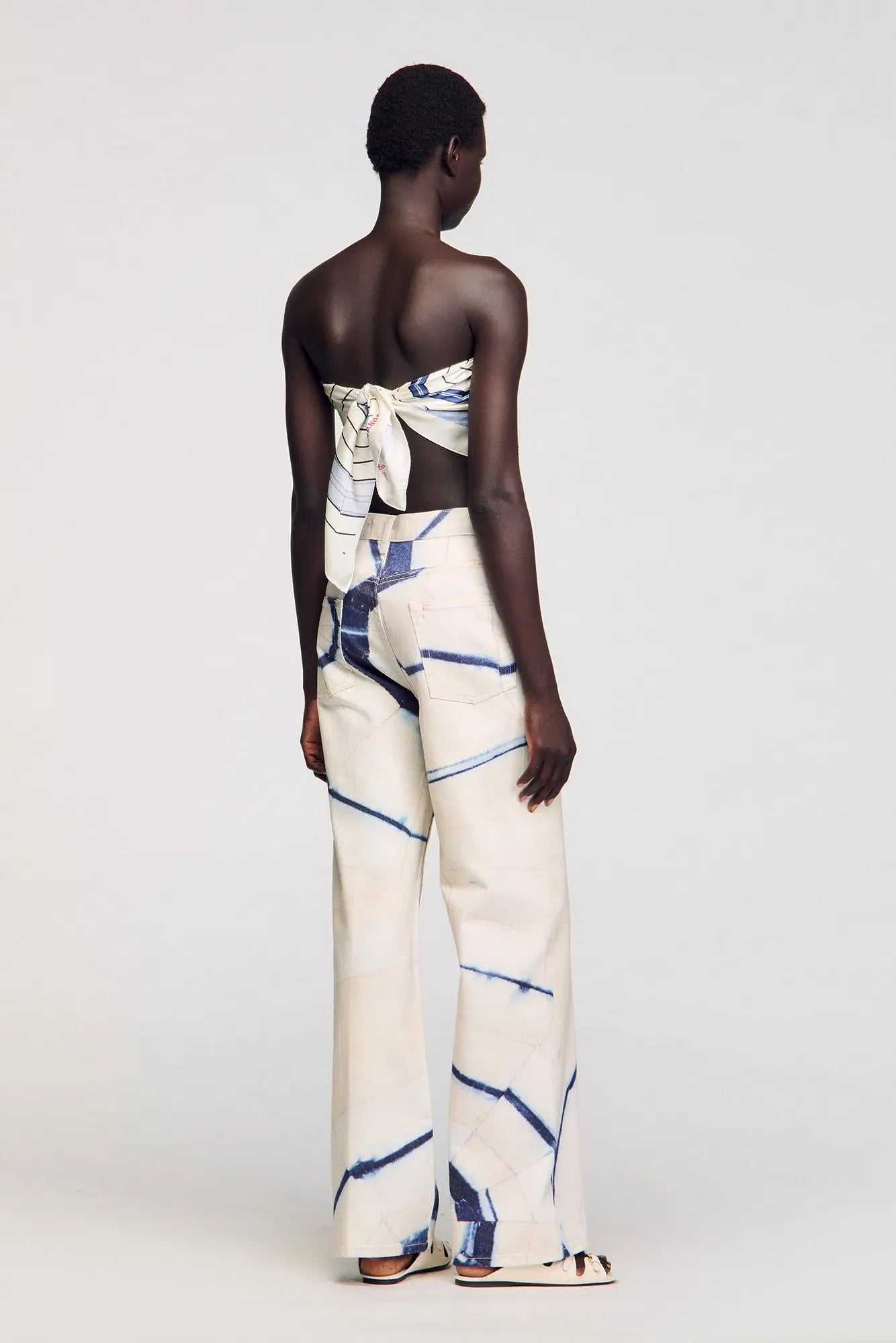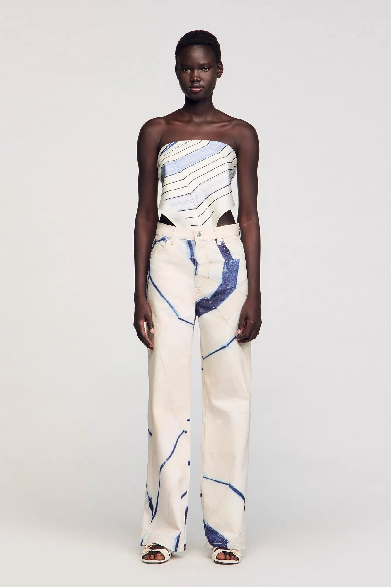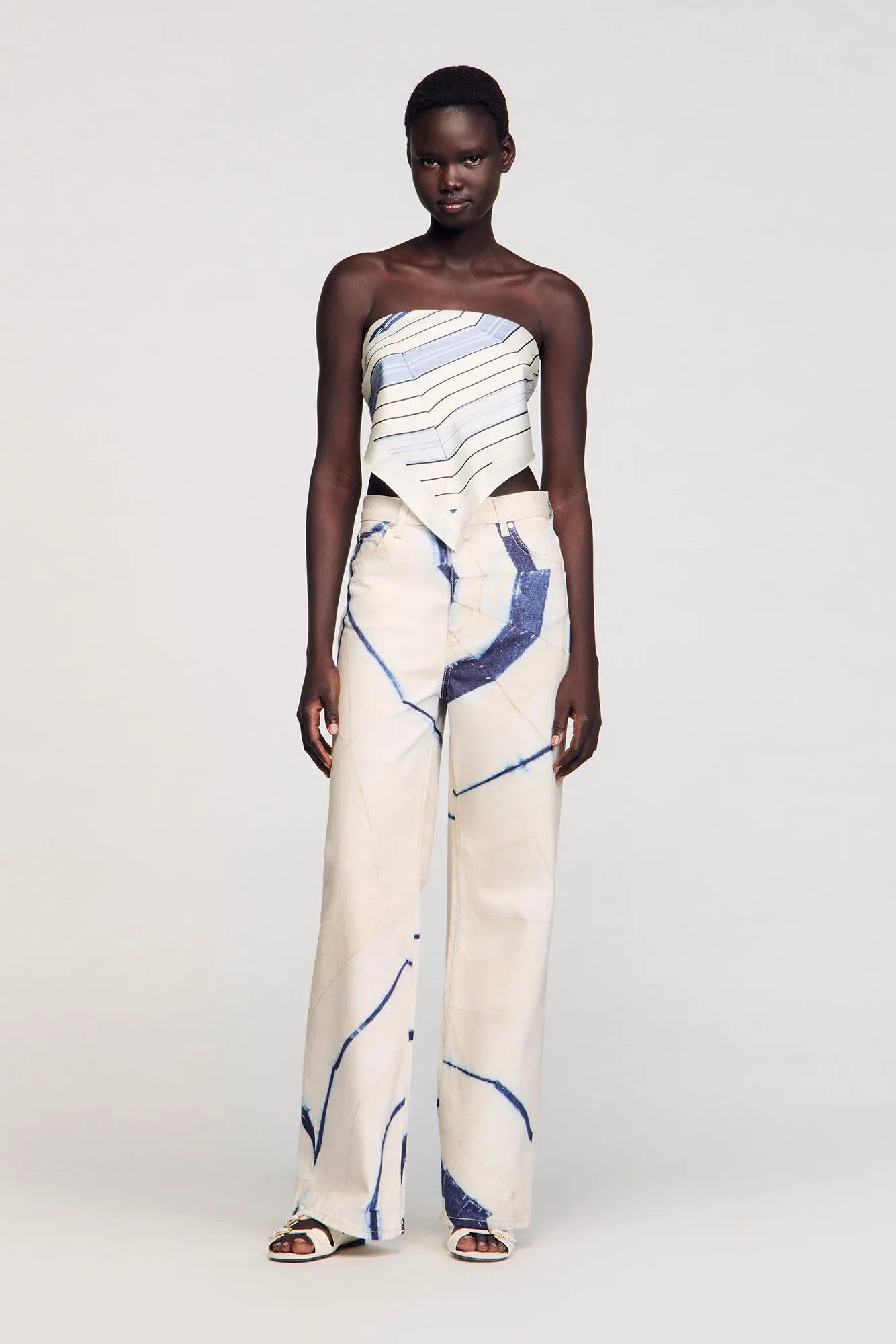 • Spiral-motif wide-leg jeans, with mid-rise waist and belt loops.