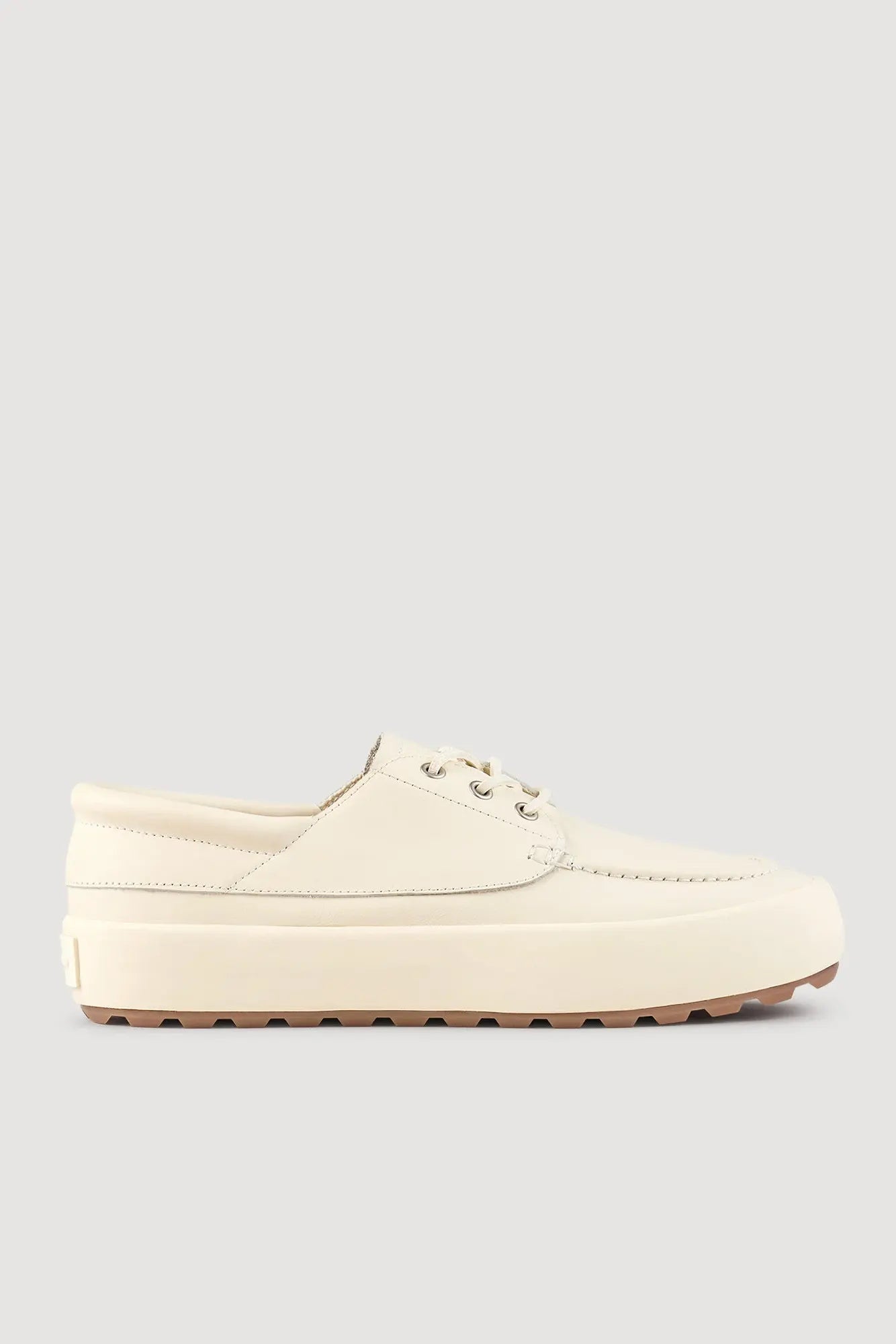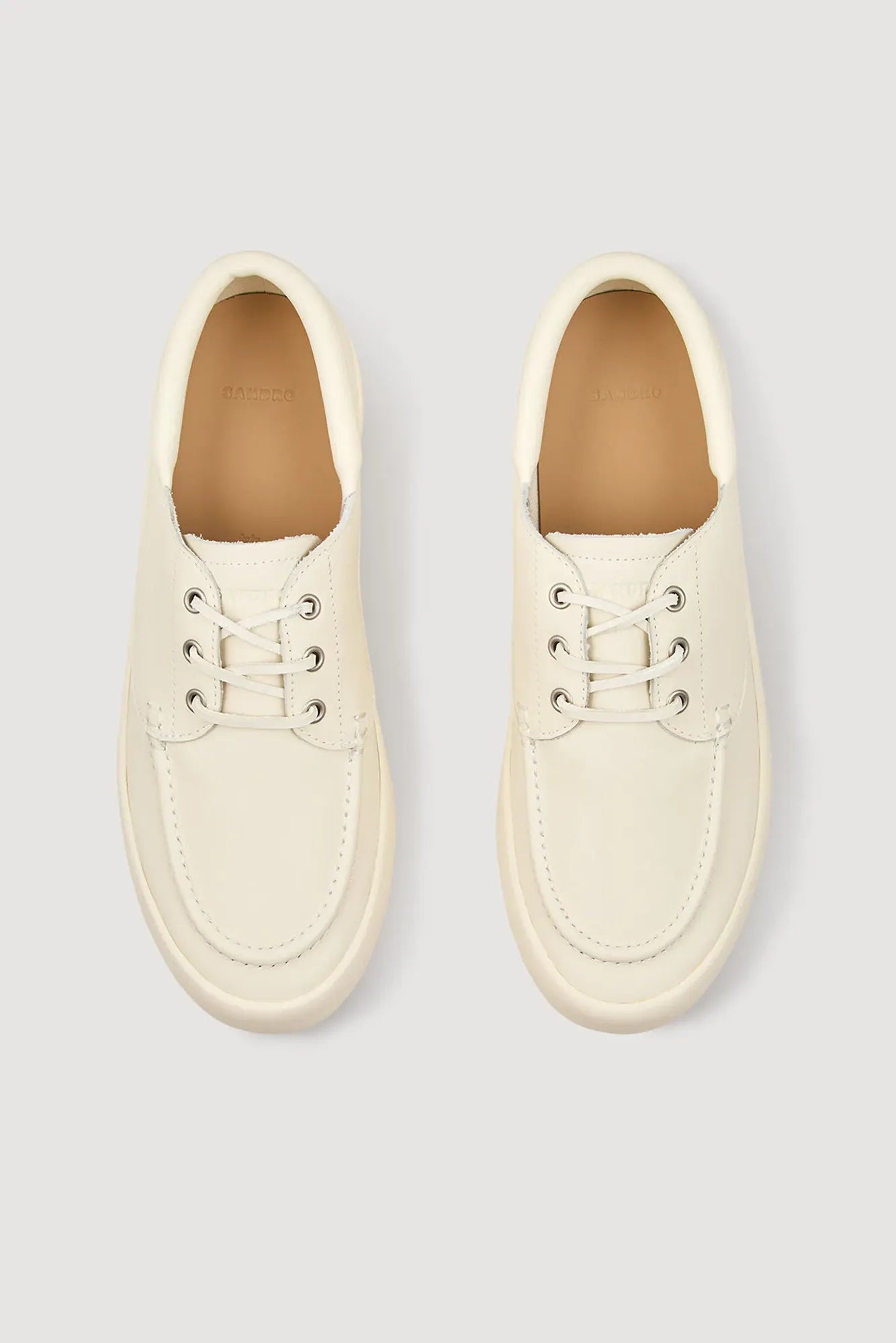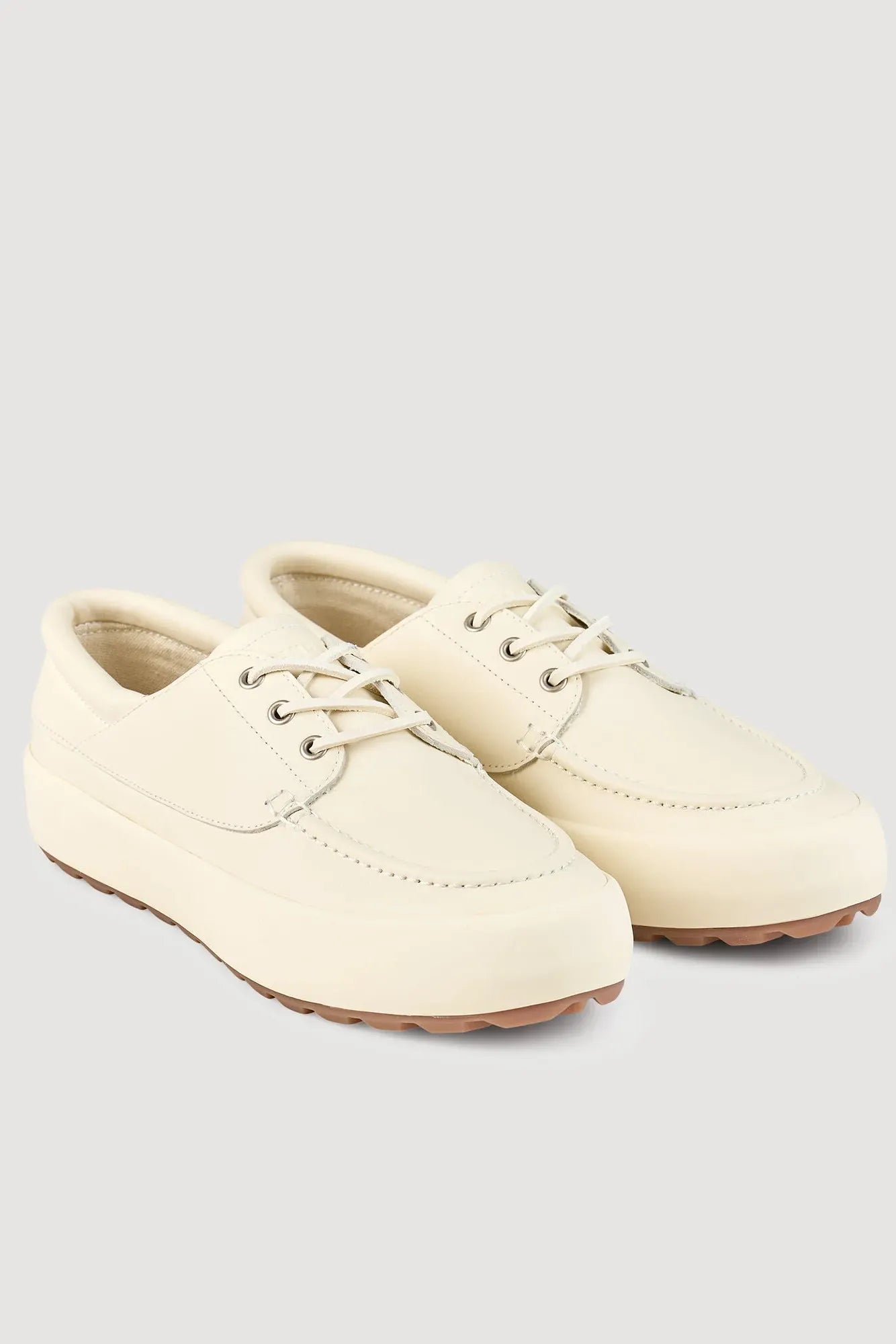 • Low-top boat shoes, with a tongue, laces and a thick vulcanised rubber sole with a contrasting underside with a tread.
