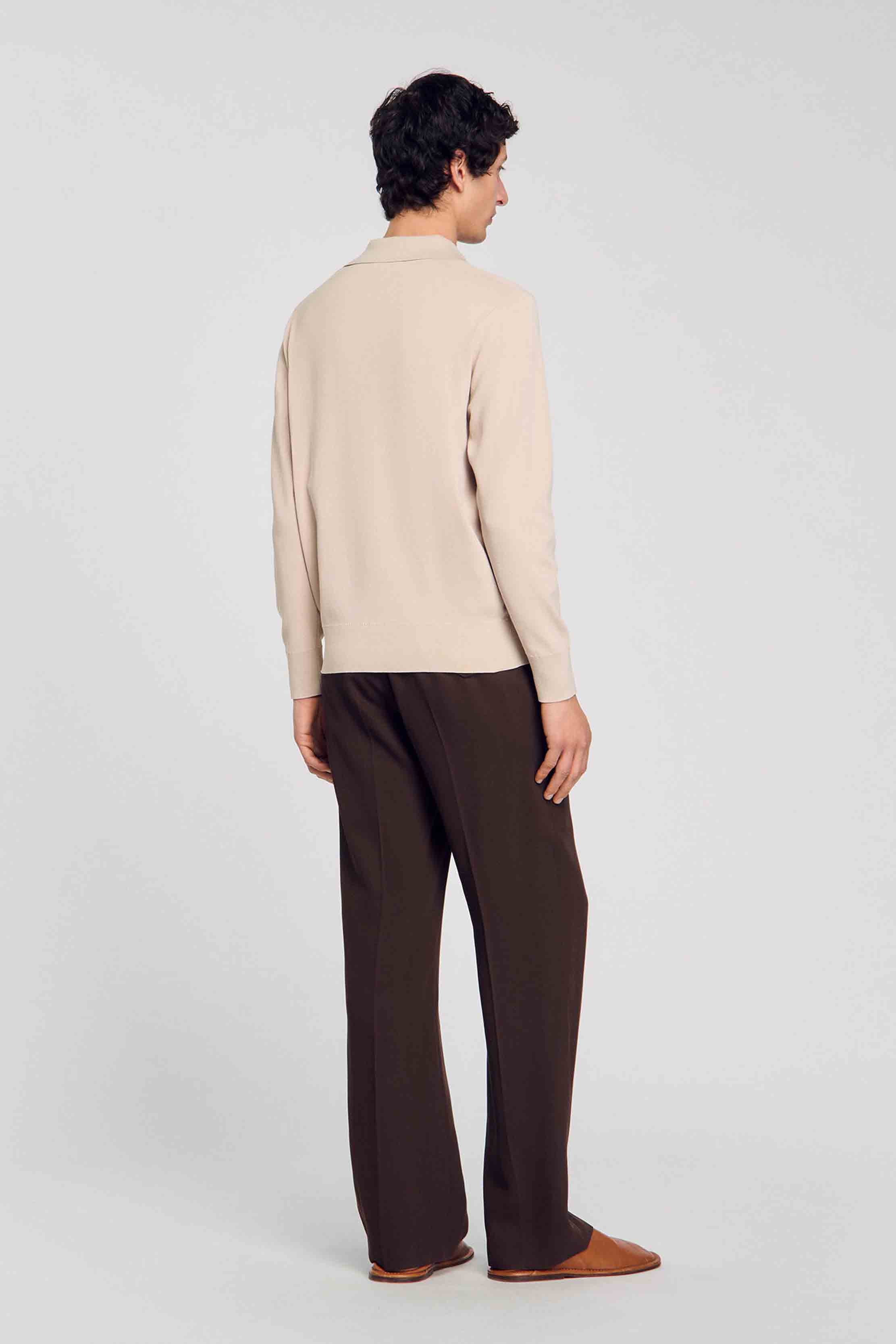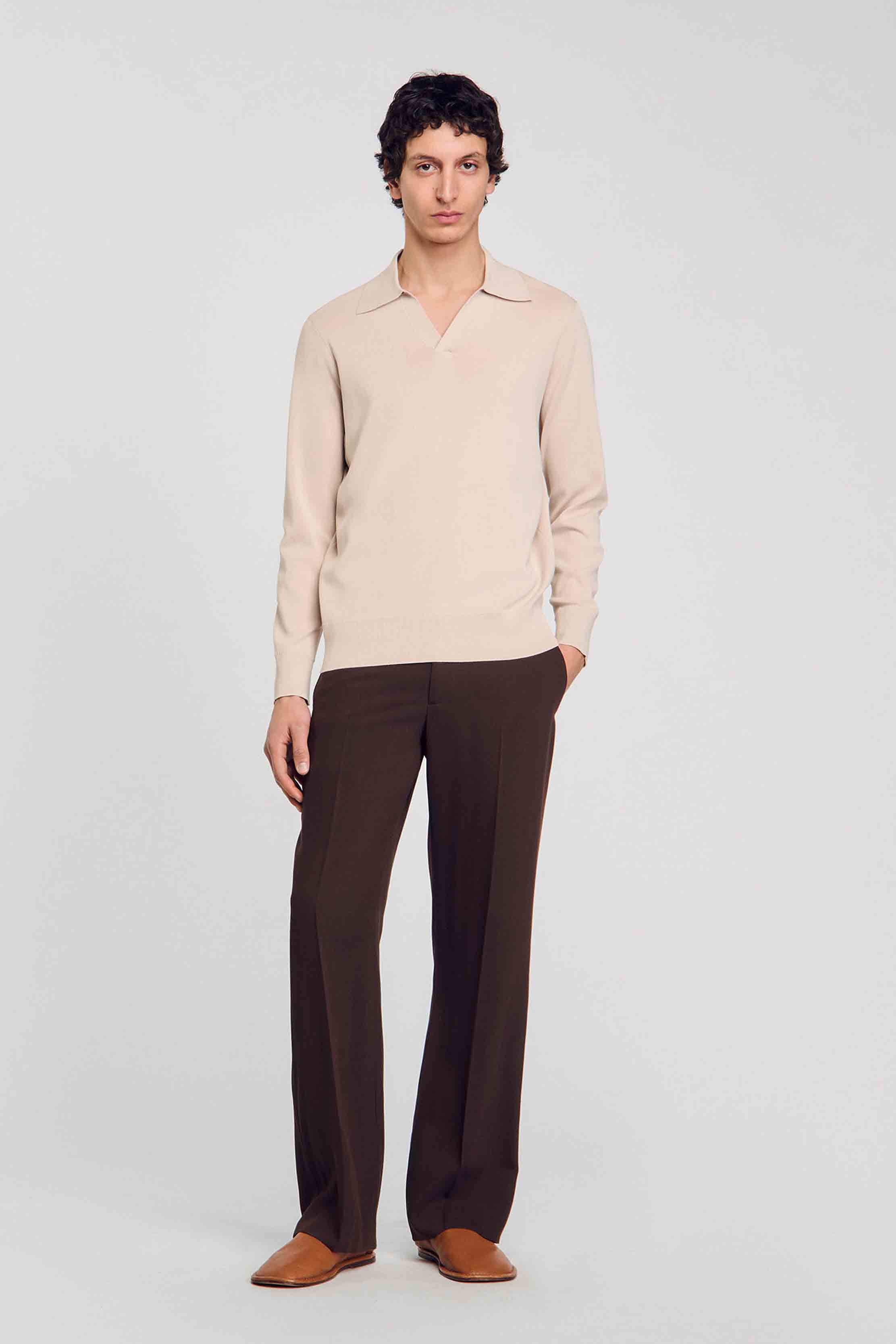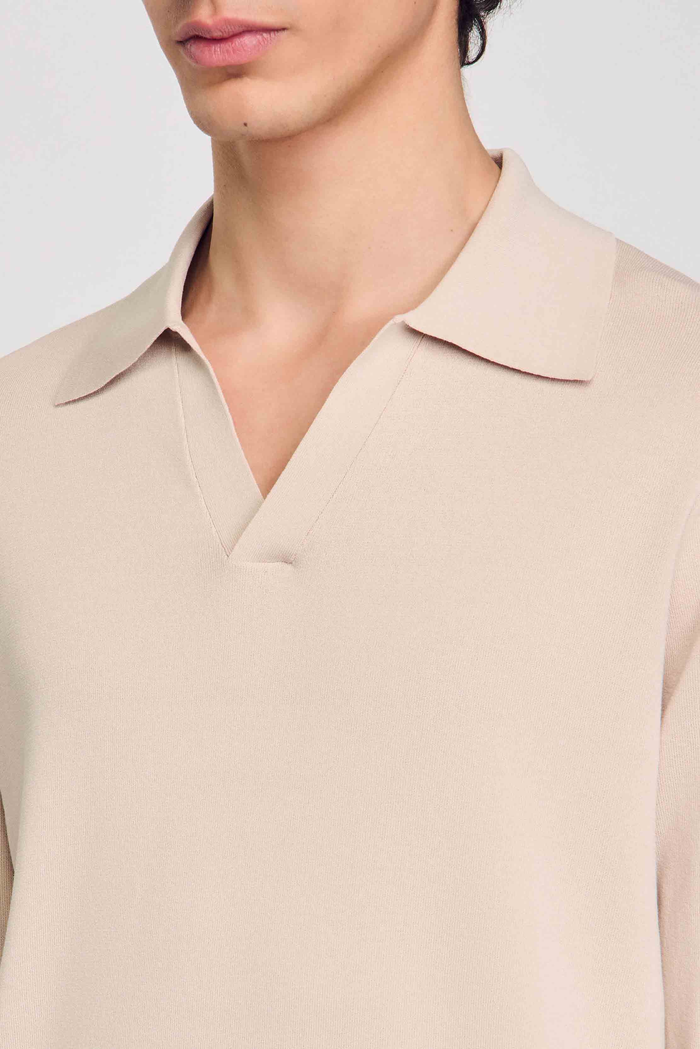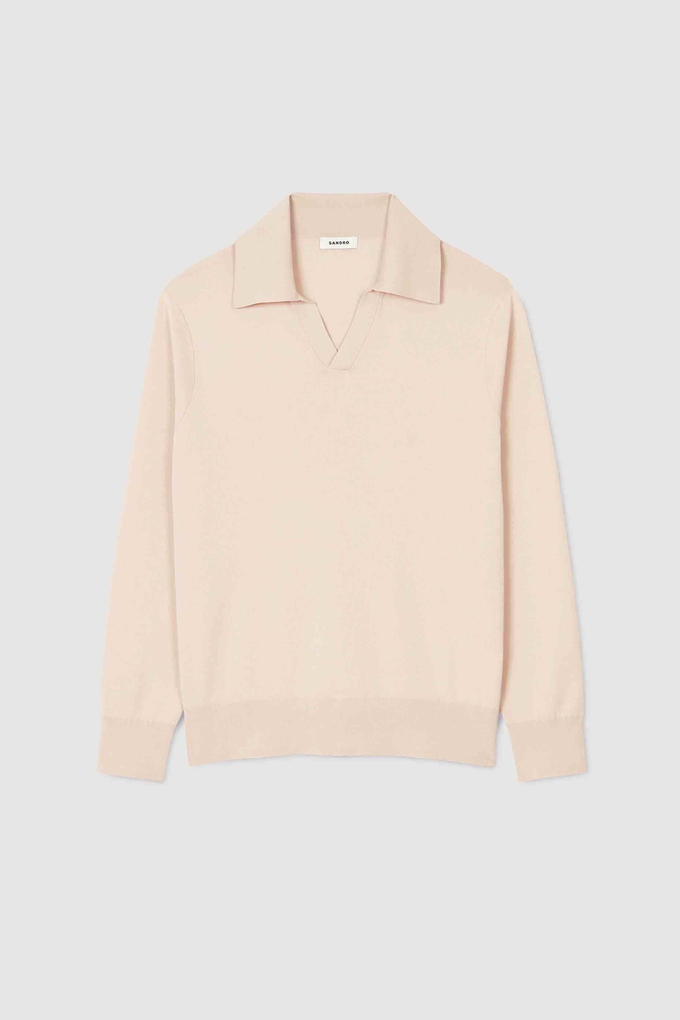 • Knitted polo shirt with wide neck, long sleeves and ribbed hem.