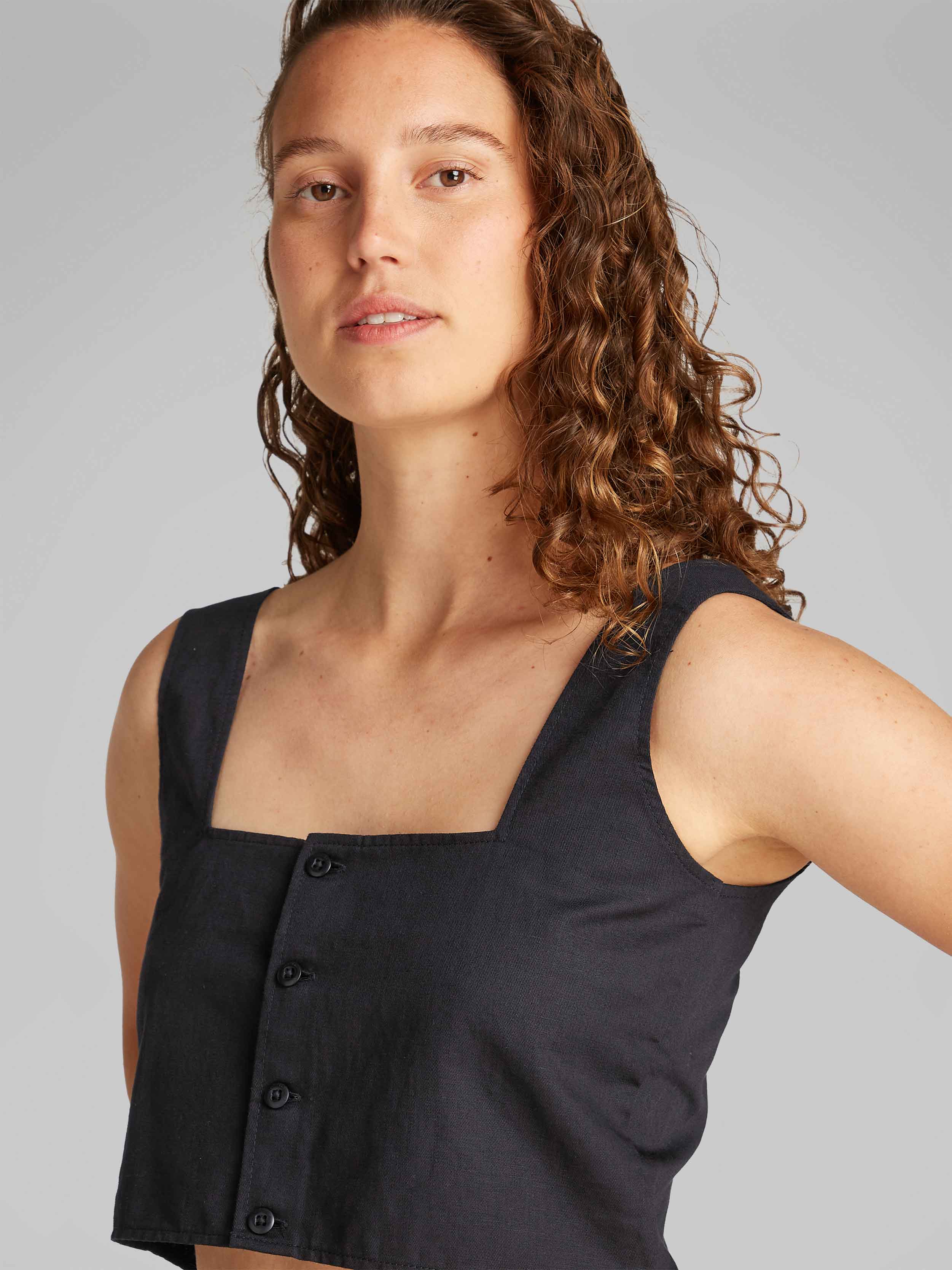 Calvin Klein - SOFT LINEN TOP , L , CK Black , Style J20J225347