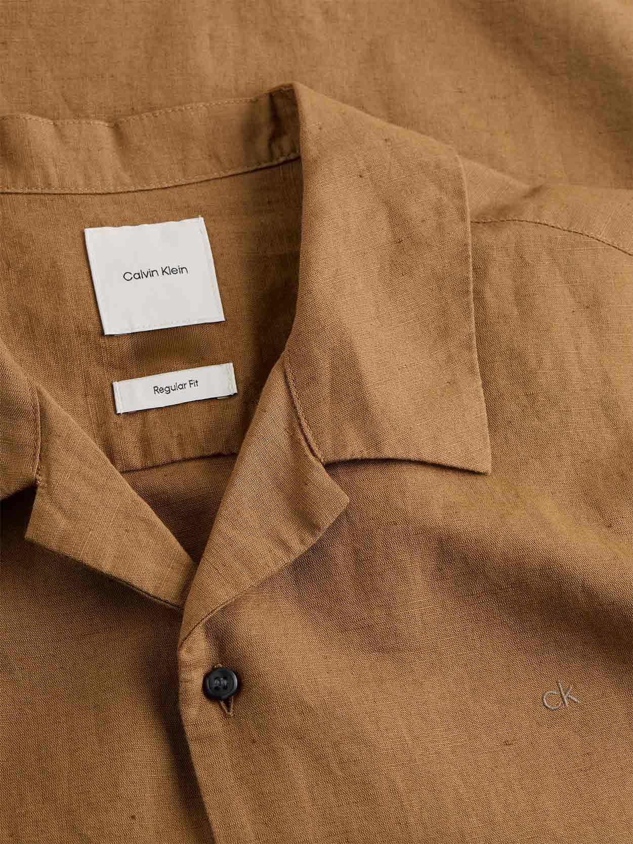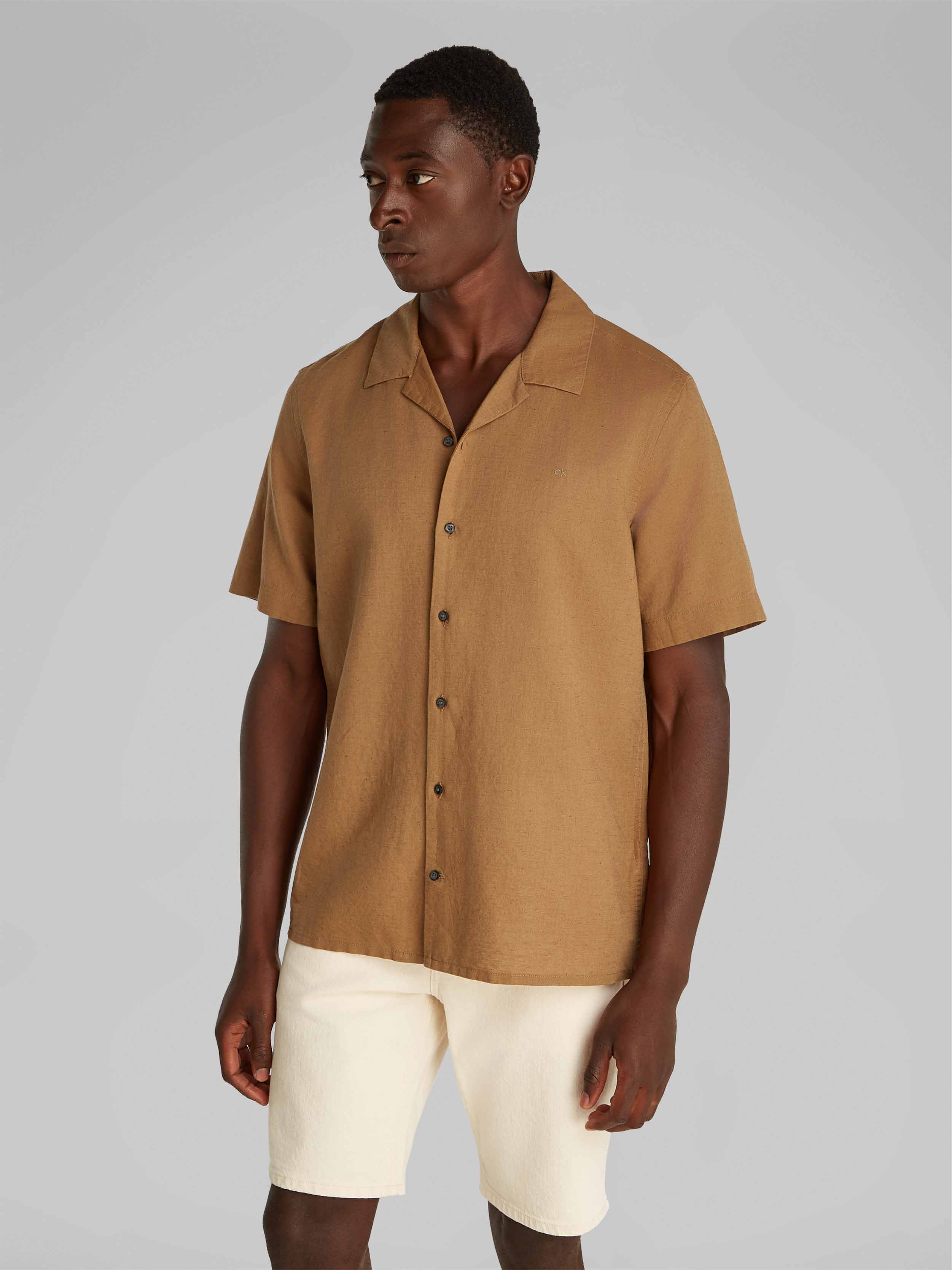 Calvin Klein - LINEN COTTON CUBAN S/S SHIRT , L , Nuthatch , Style K10K114197