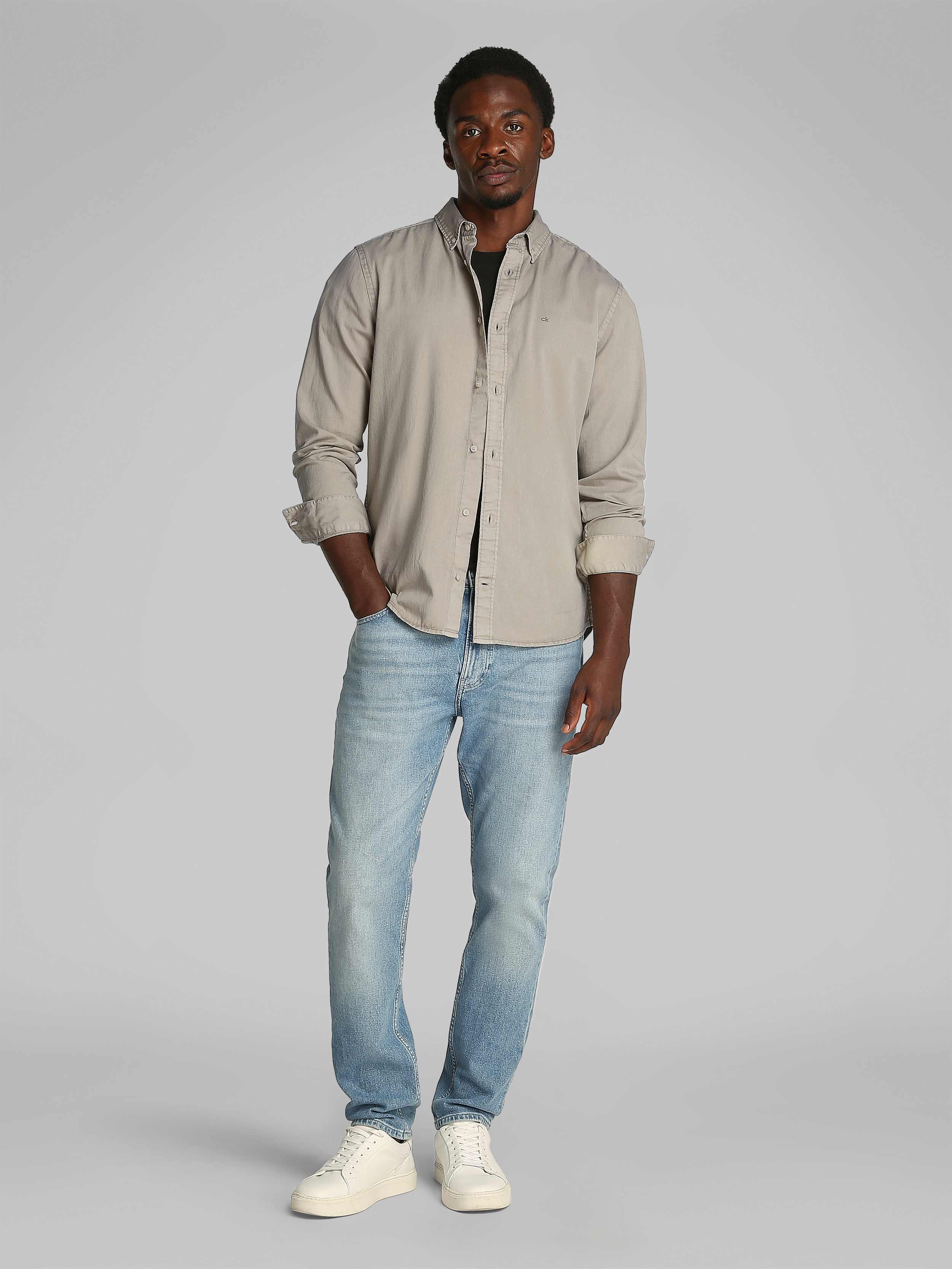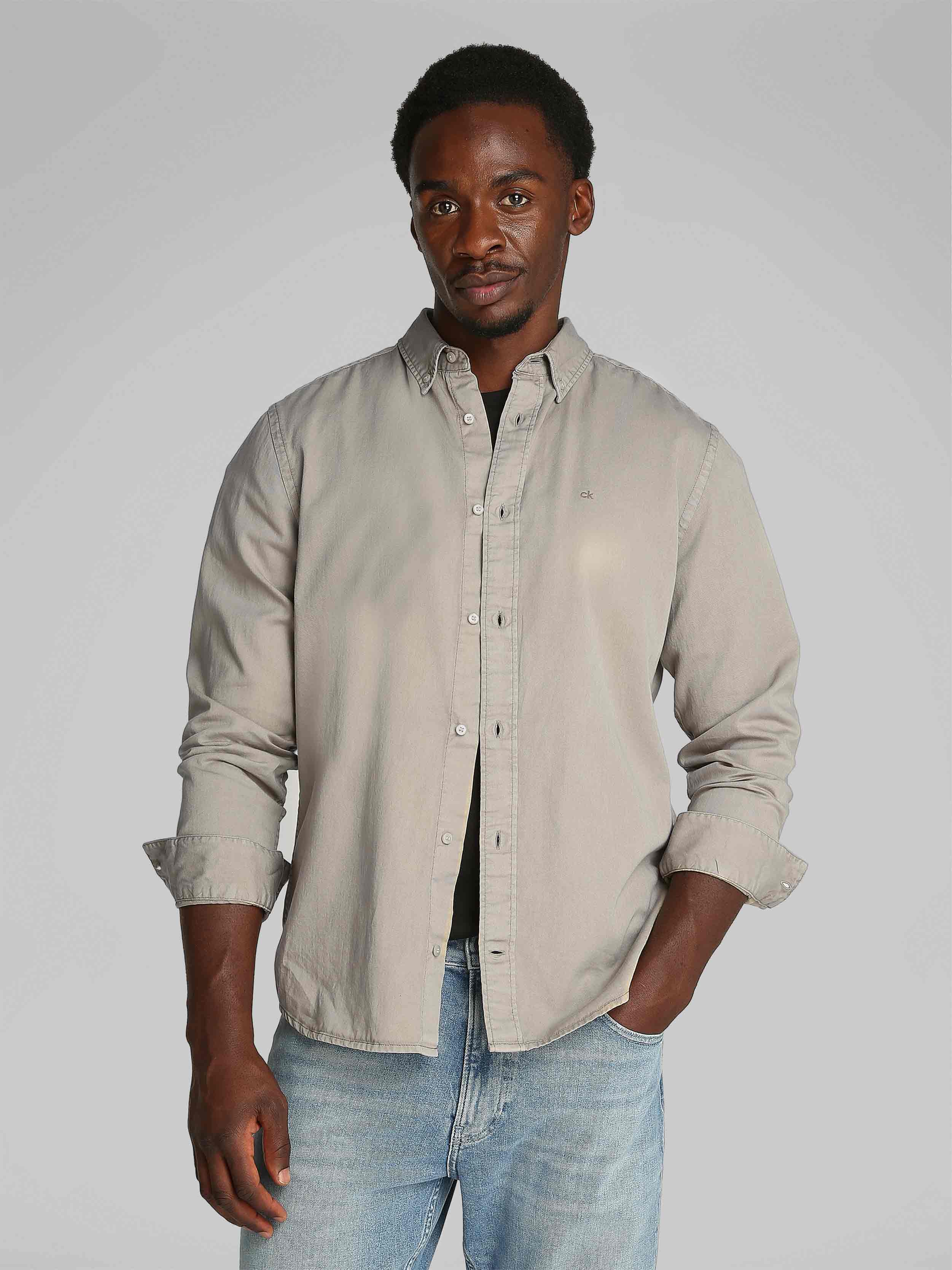 Calvin Klein - GARMENT DYED LW TWILL L/S SHIRT , XXL , Aluminum , Style K10K114200
