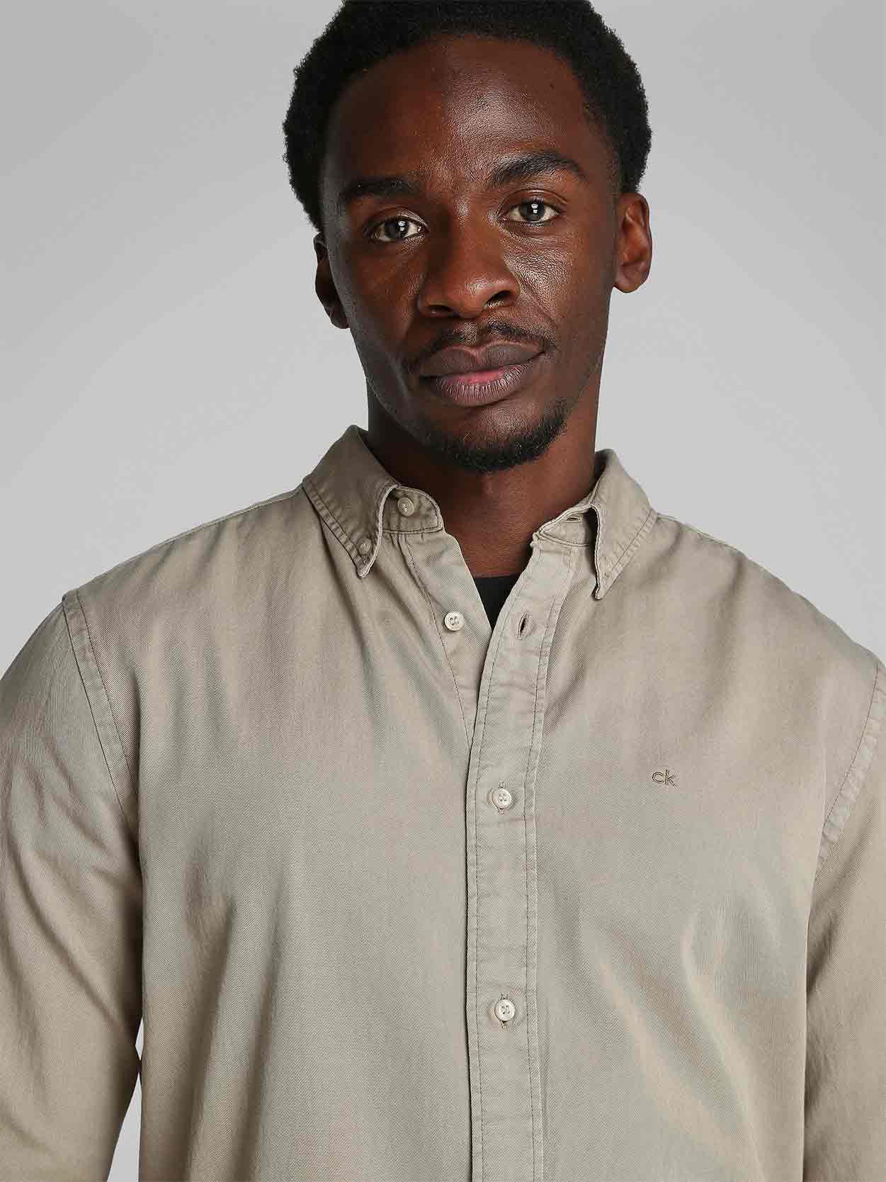Calvin Klein - Men's Garment Dyed Twill Long Sleeve Shirt