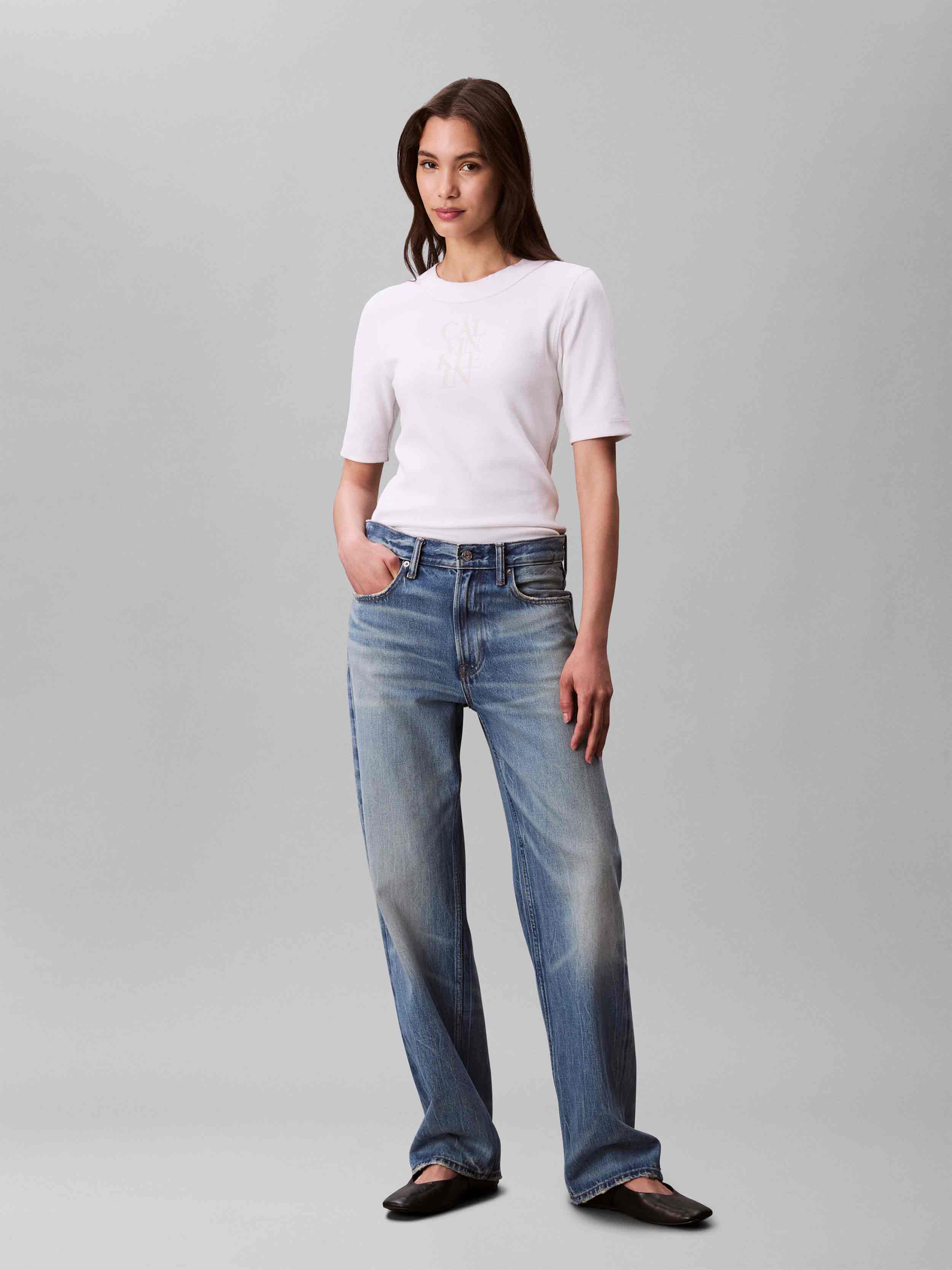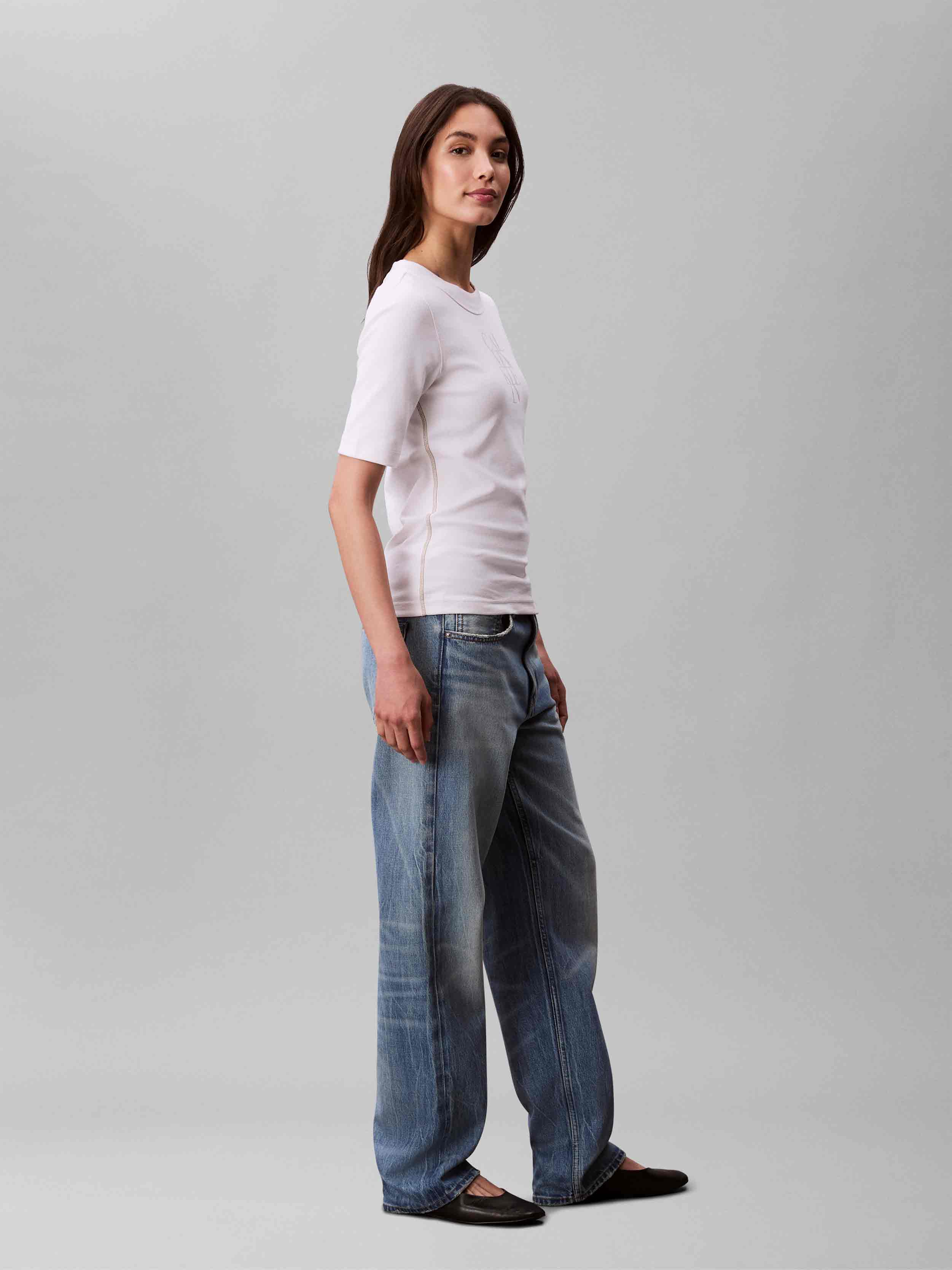 • Calvin Klein Jeans - Women's Short Sleeve Cotton Ribbed Logo T-Shirt