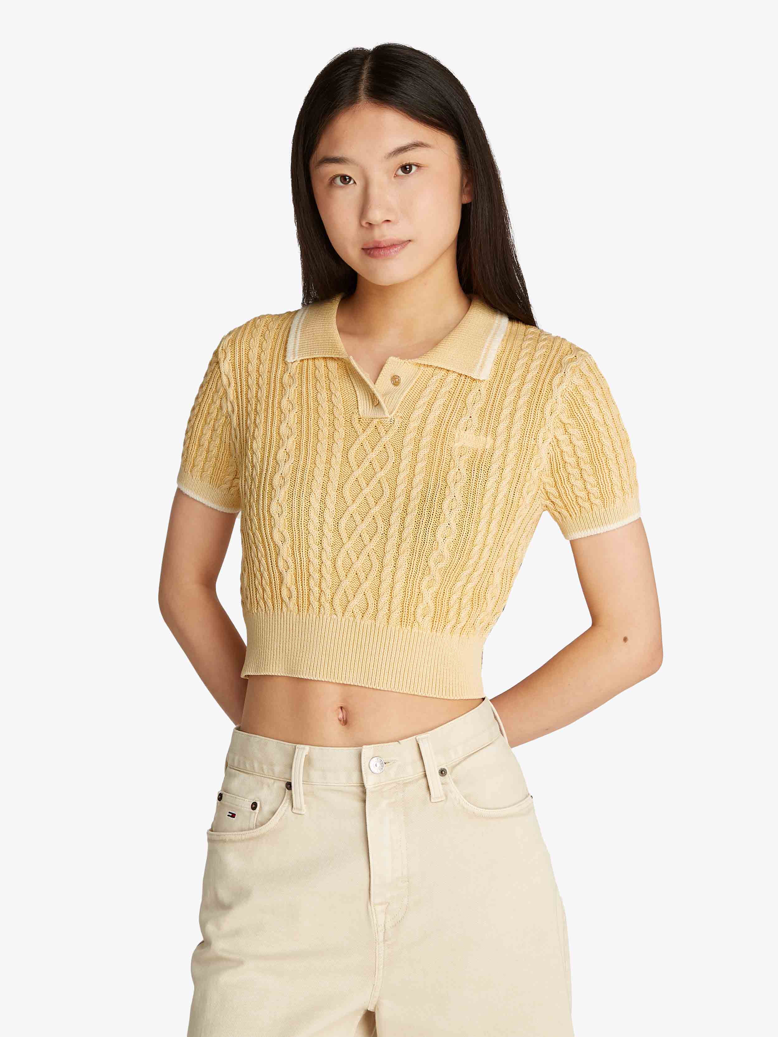 Tommy Hilfiger - TJCW GMD POLO SWEATER , M , Custard Cream , Style DW0DW21357