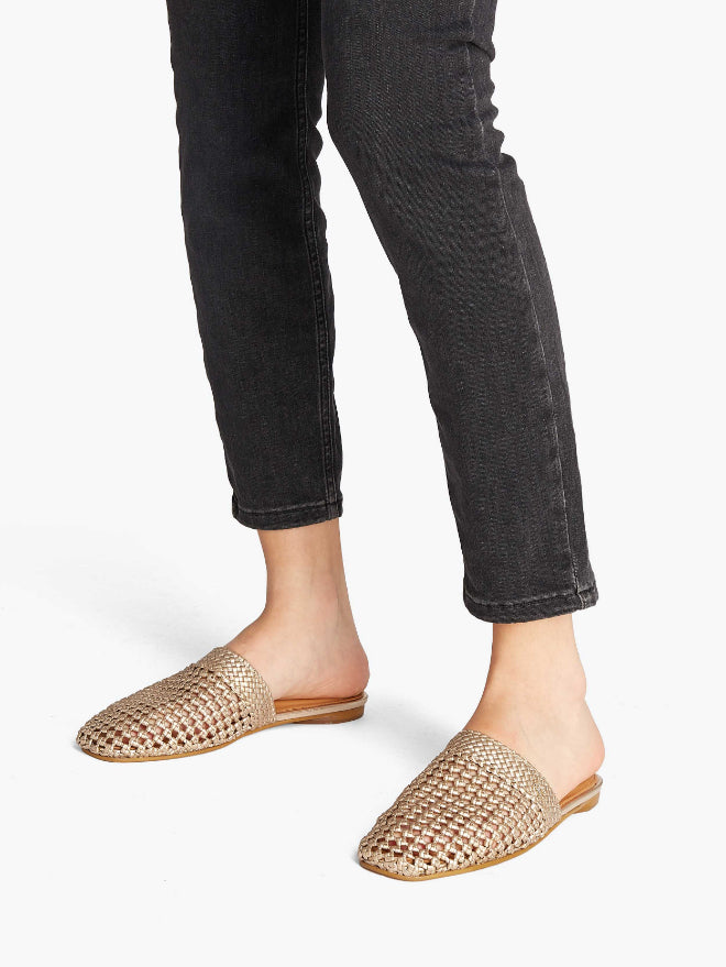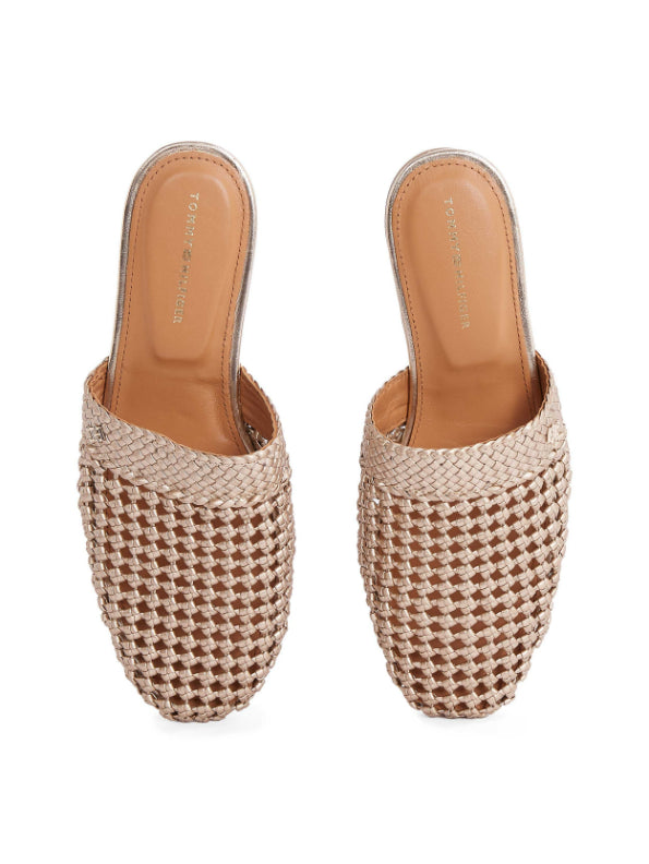Tommy Hilfiger - CROCHET METALLIC LEATHER MULE , 38 , Gold , Style FW0FW08606