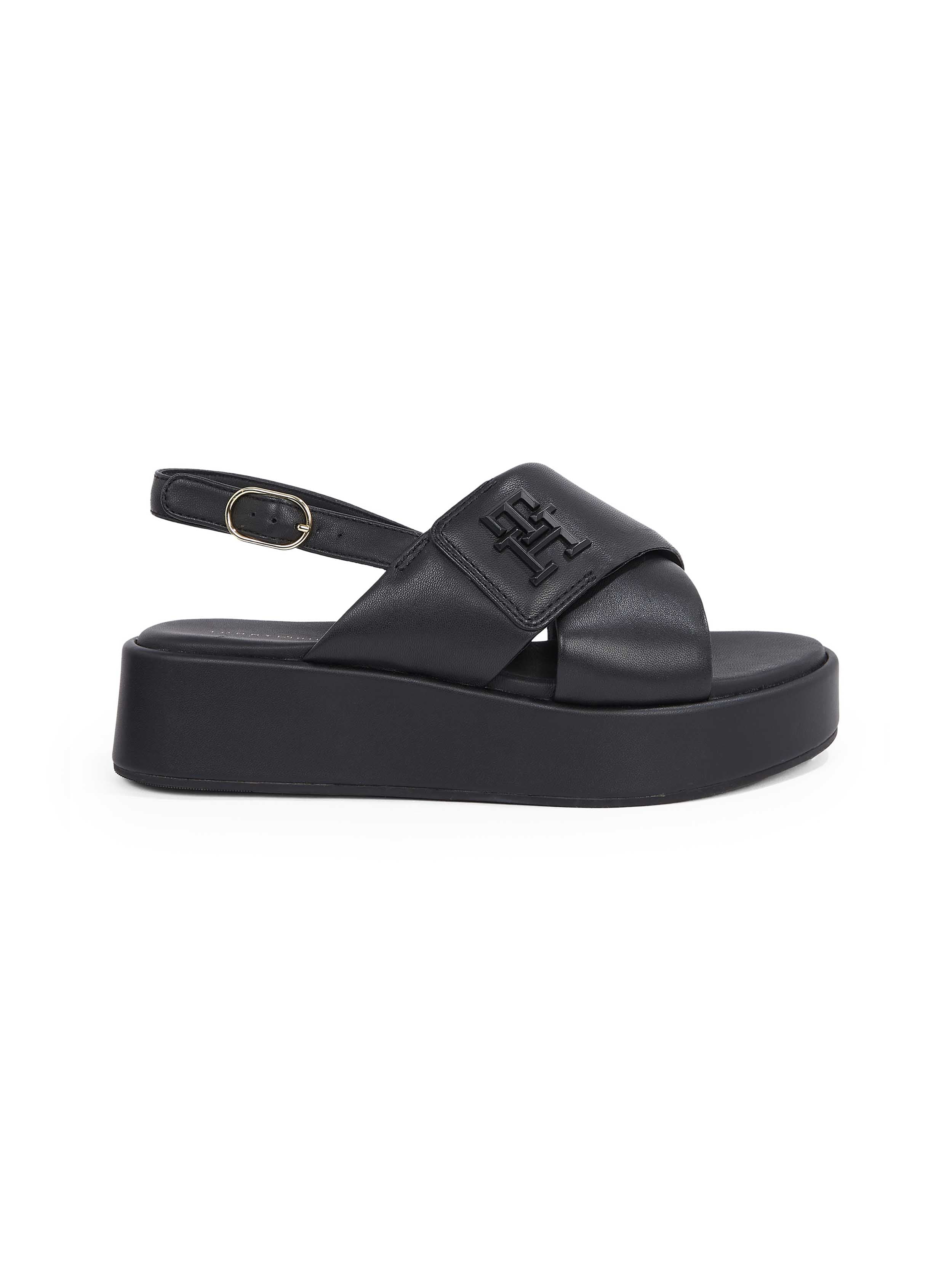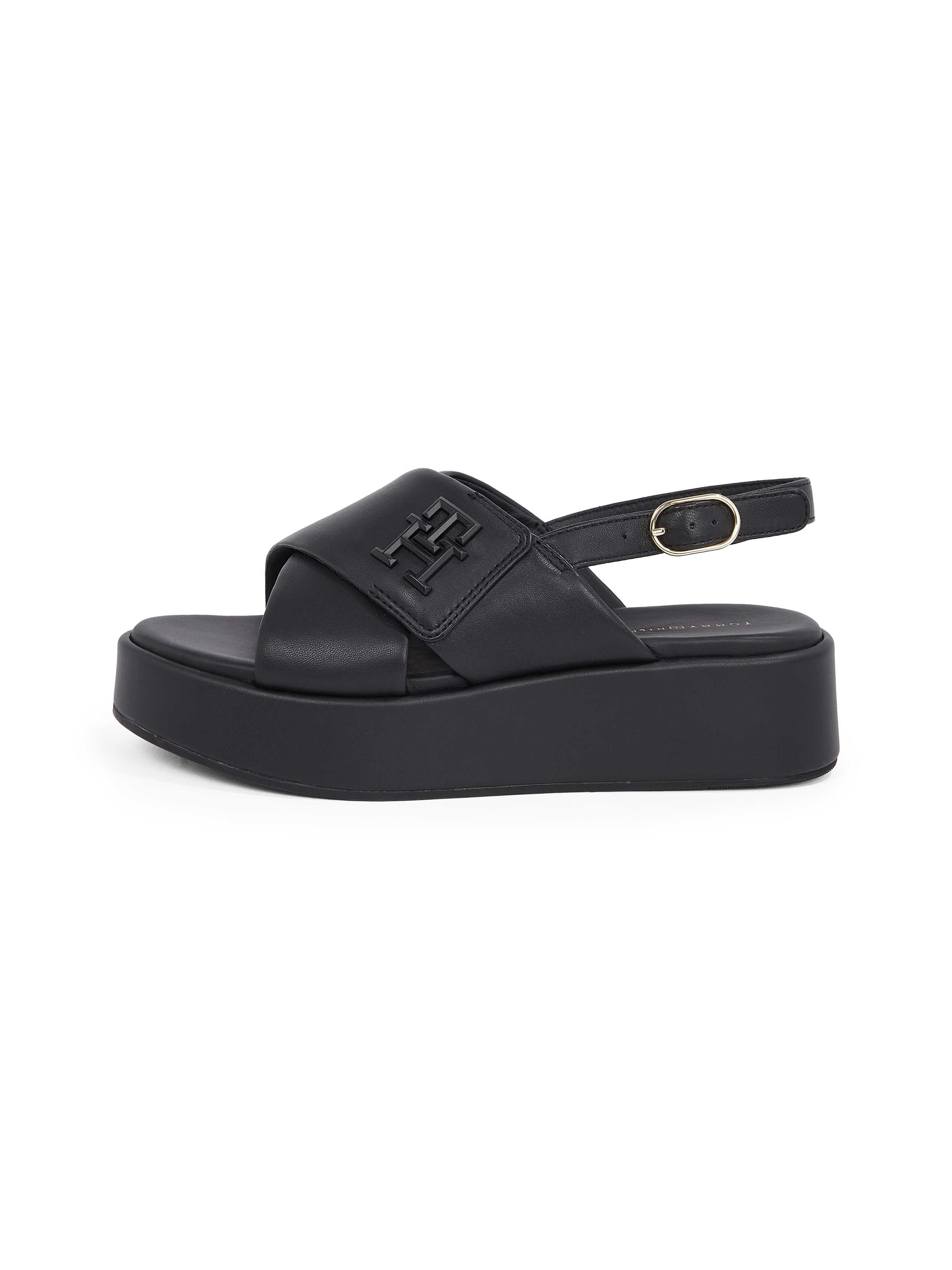Tommy Hilfiger - TH LOGO HW PADDED LEATHER SANDAL , 36 , Black , Style FW0FW08808