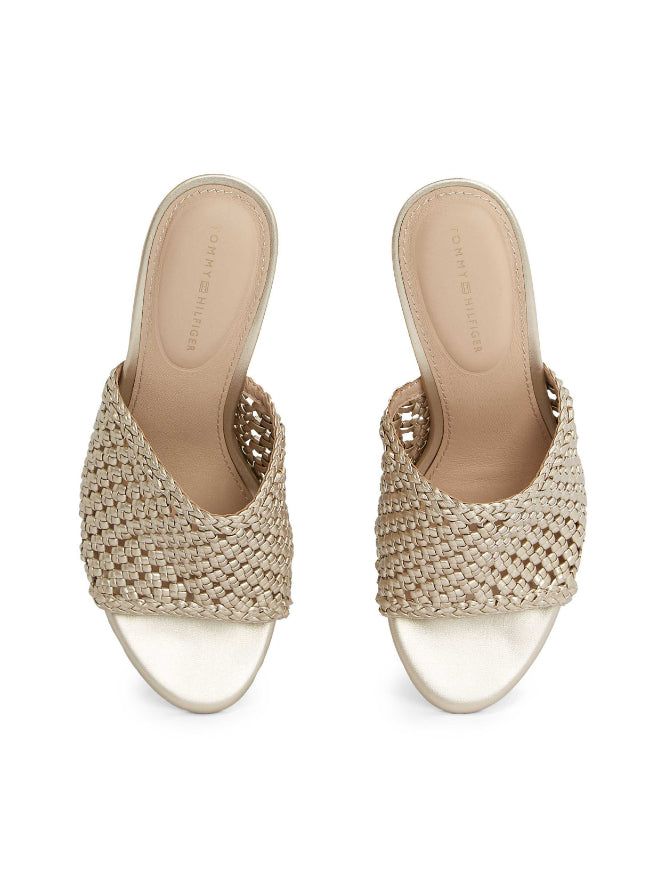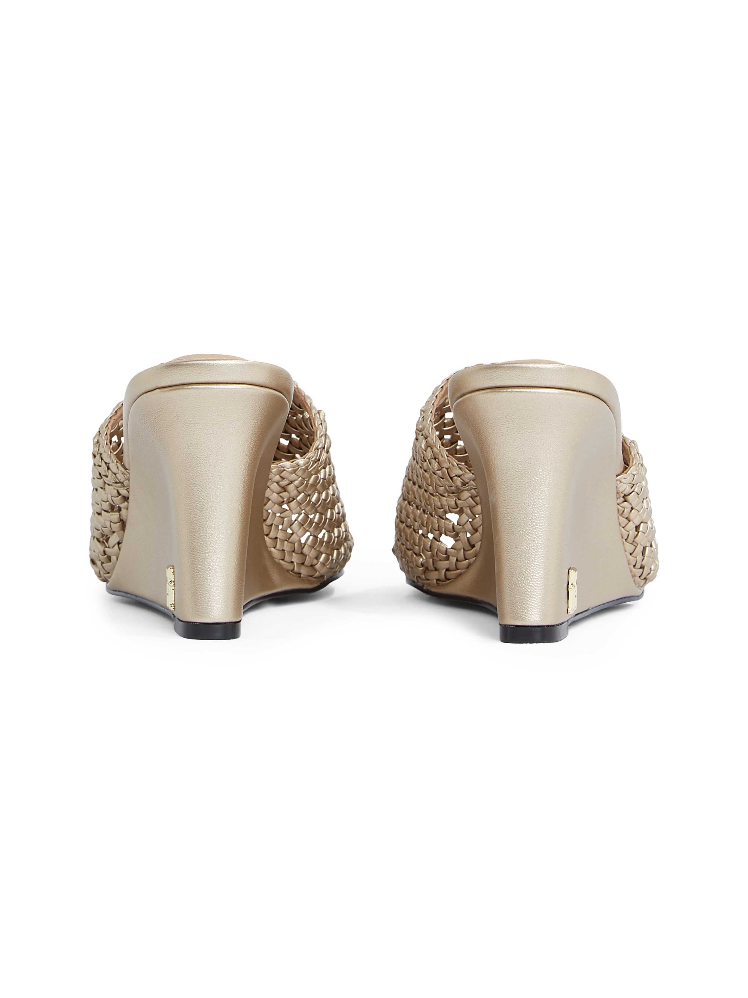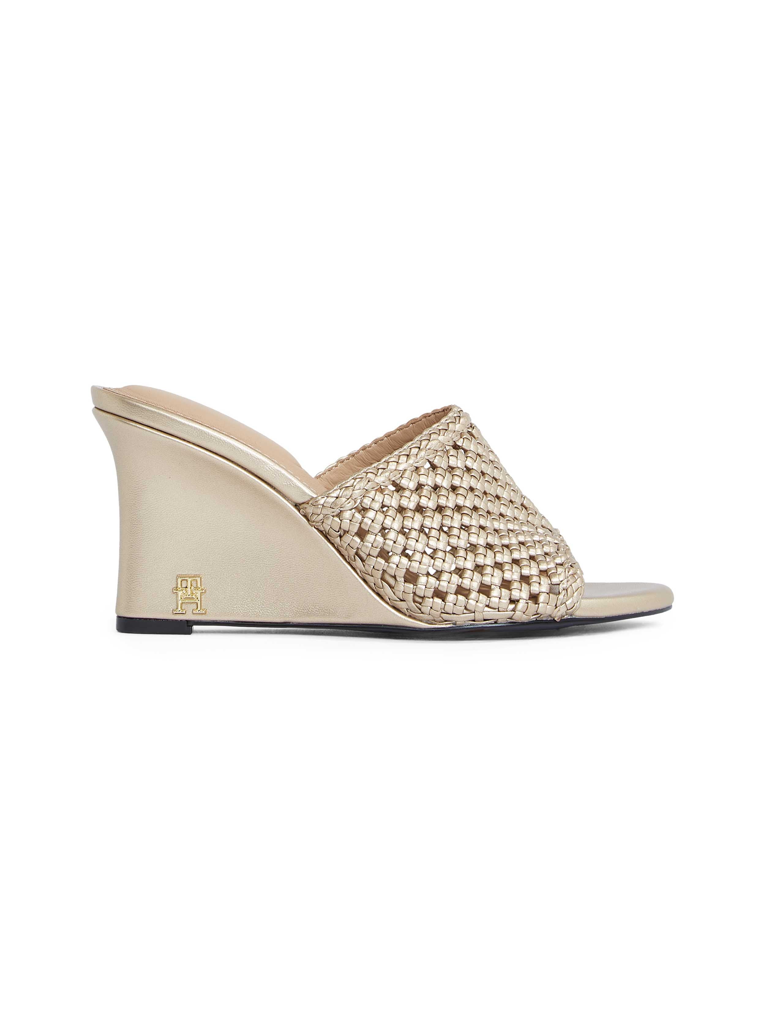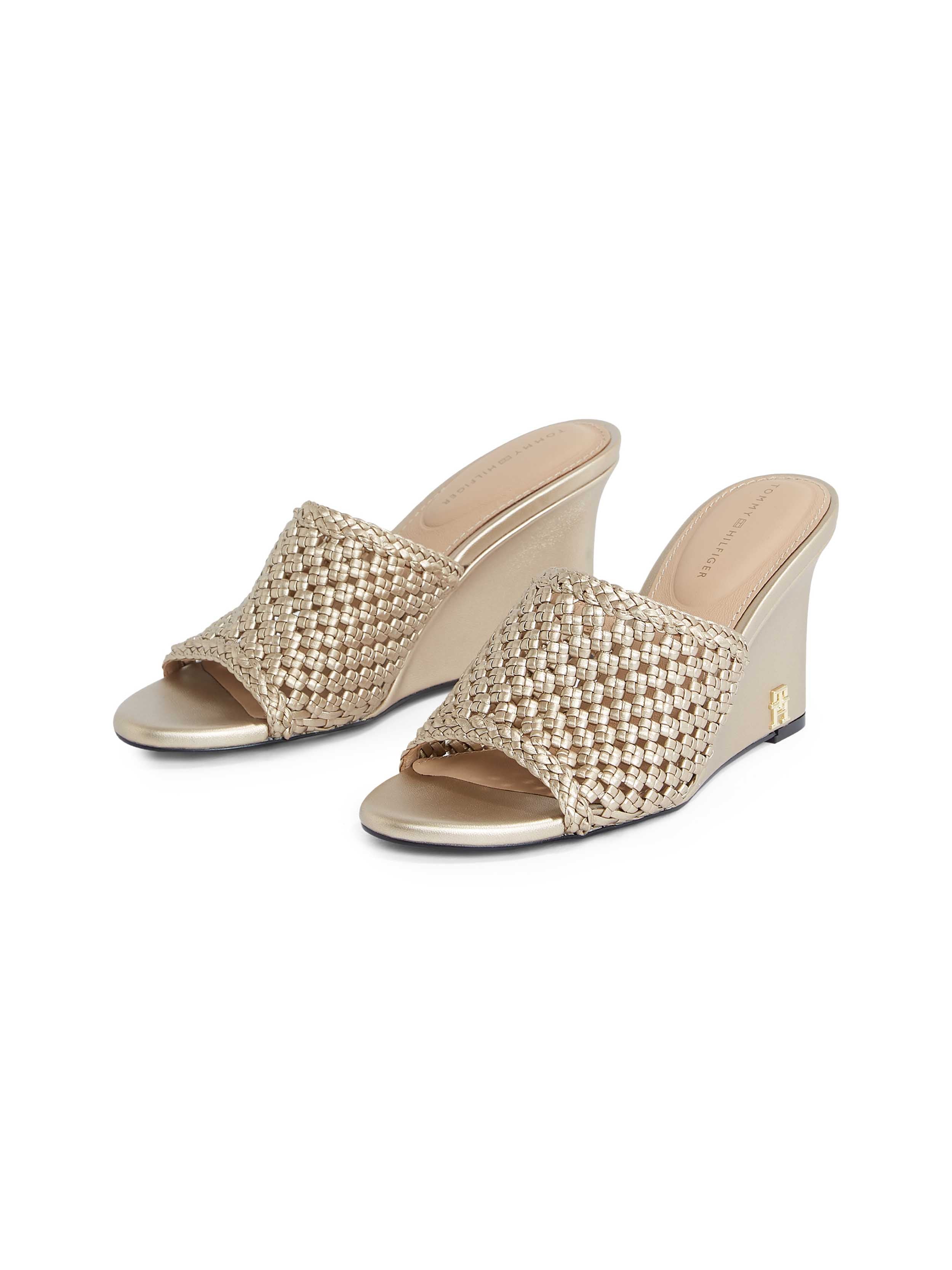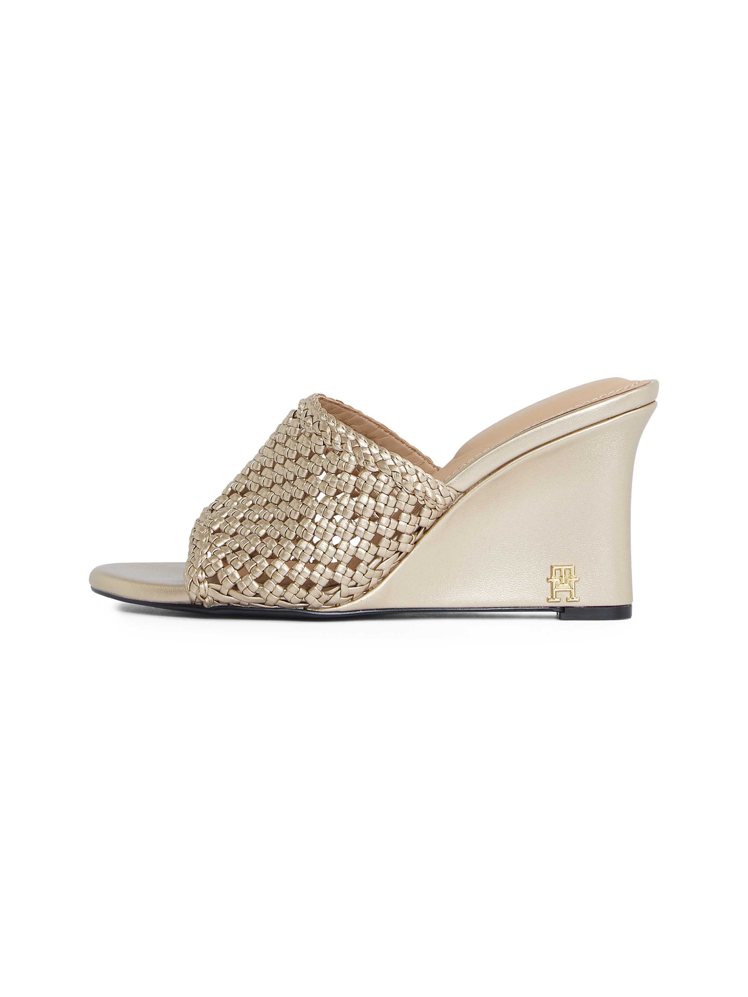 Tommy Hilfiger - CROCHET METALLIC LTHR WEDGE MULE , 36 , Gold , Style FW0FW08812
