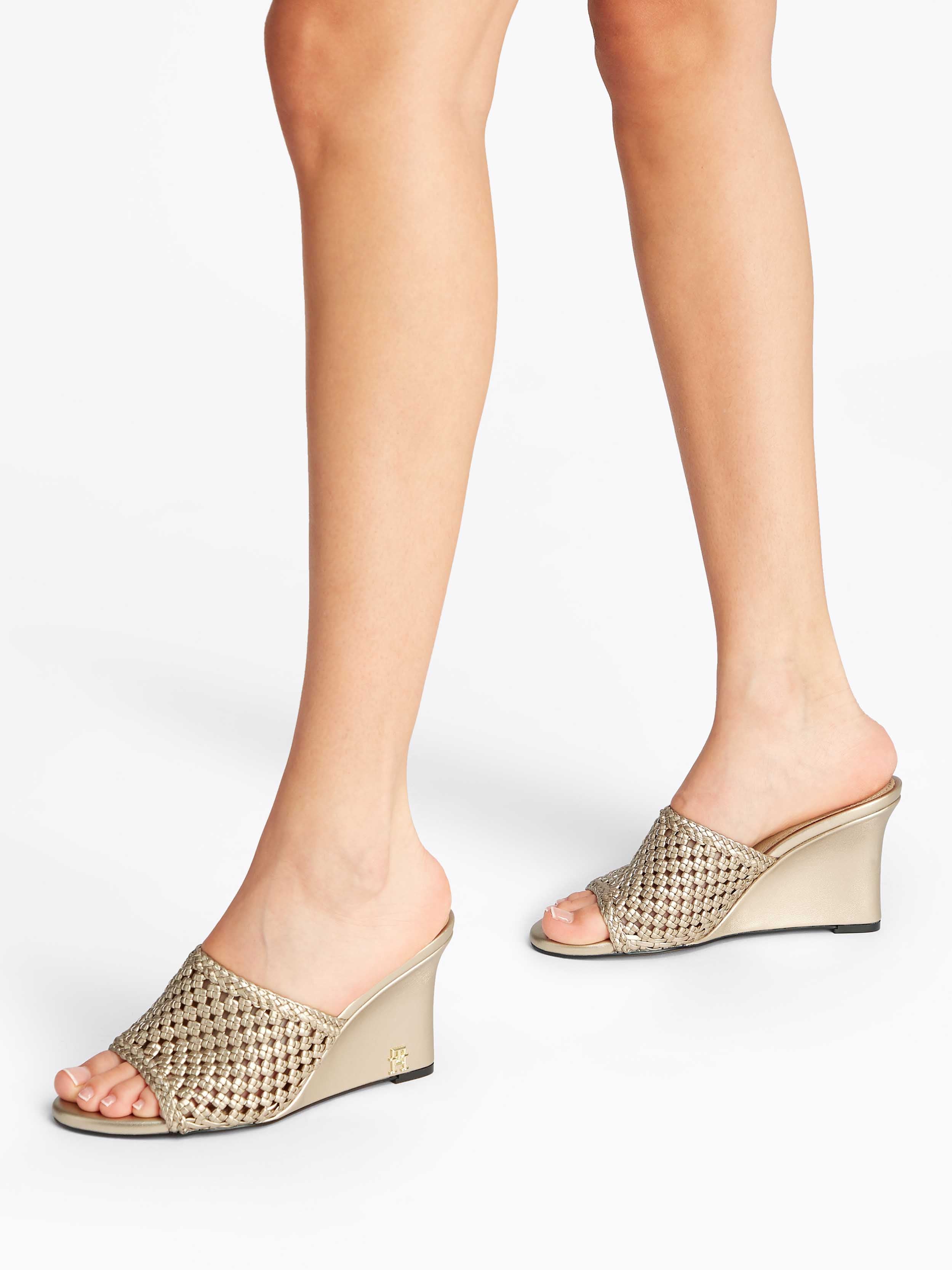 Tommy Hilfiger - Women's Metallic Leather Crochet Wedge Mules