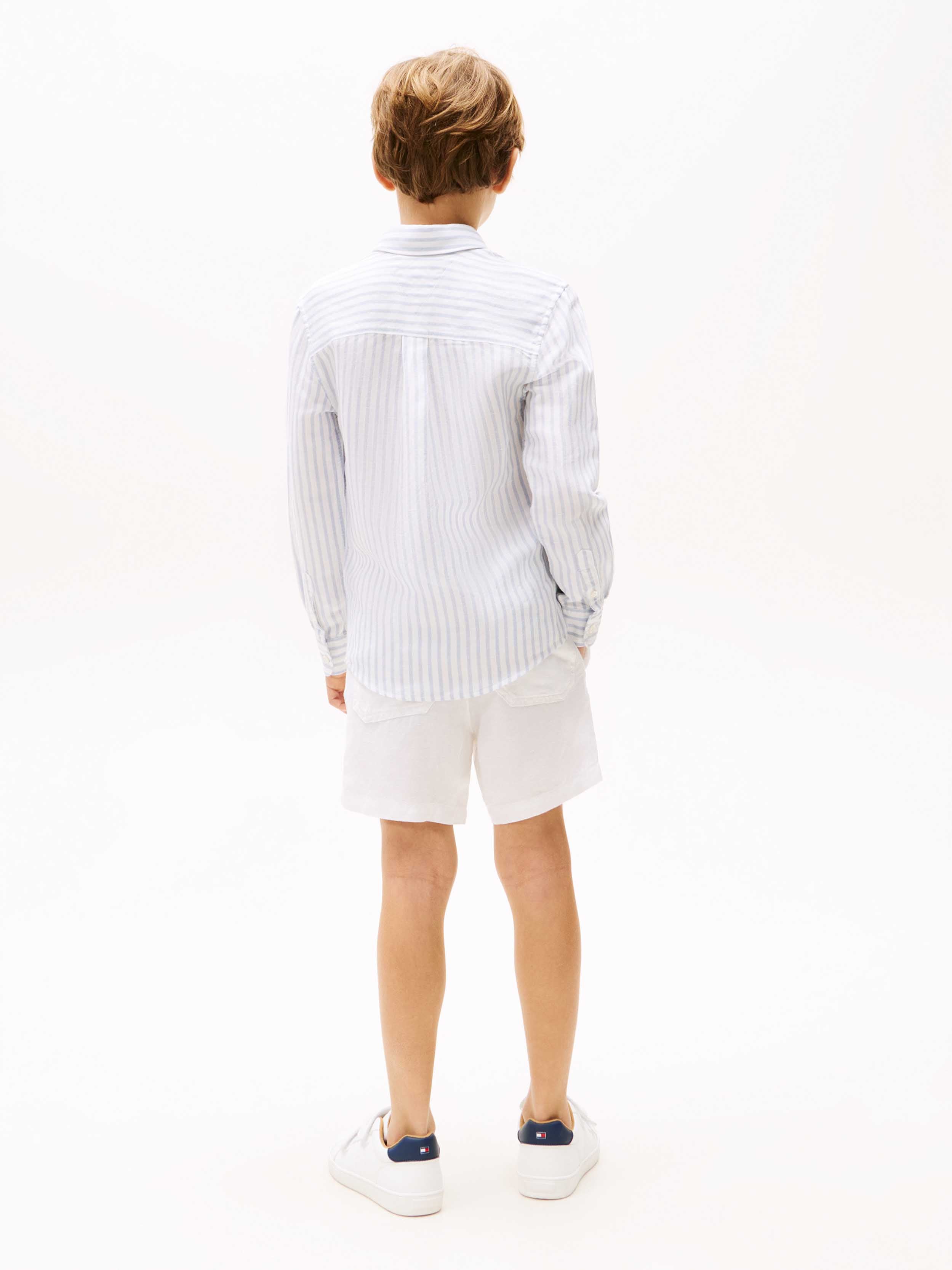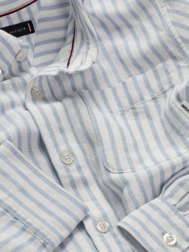 Tommy Hilfiger - LINEN BLEND STRIPED SHIRT LS , 6 , Breezy Blue Stripe , Style KB0KB09630