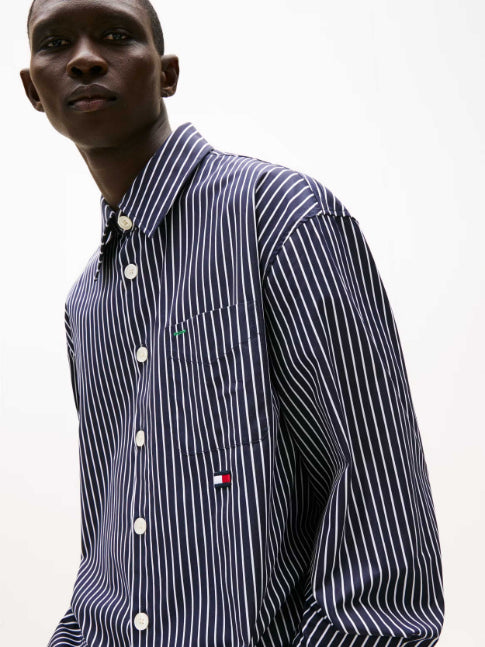 Tommy Hilfiger - LONG SHIRT POPLIN STRIPE , XL , Nightfall , Style MW0MW41734