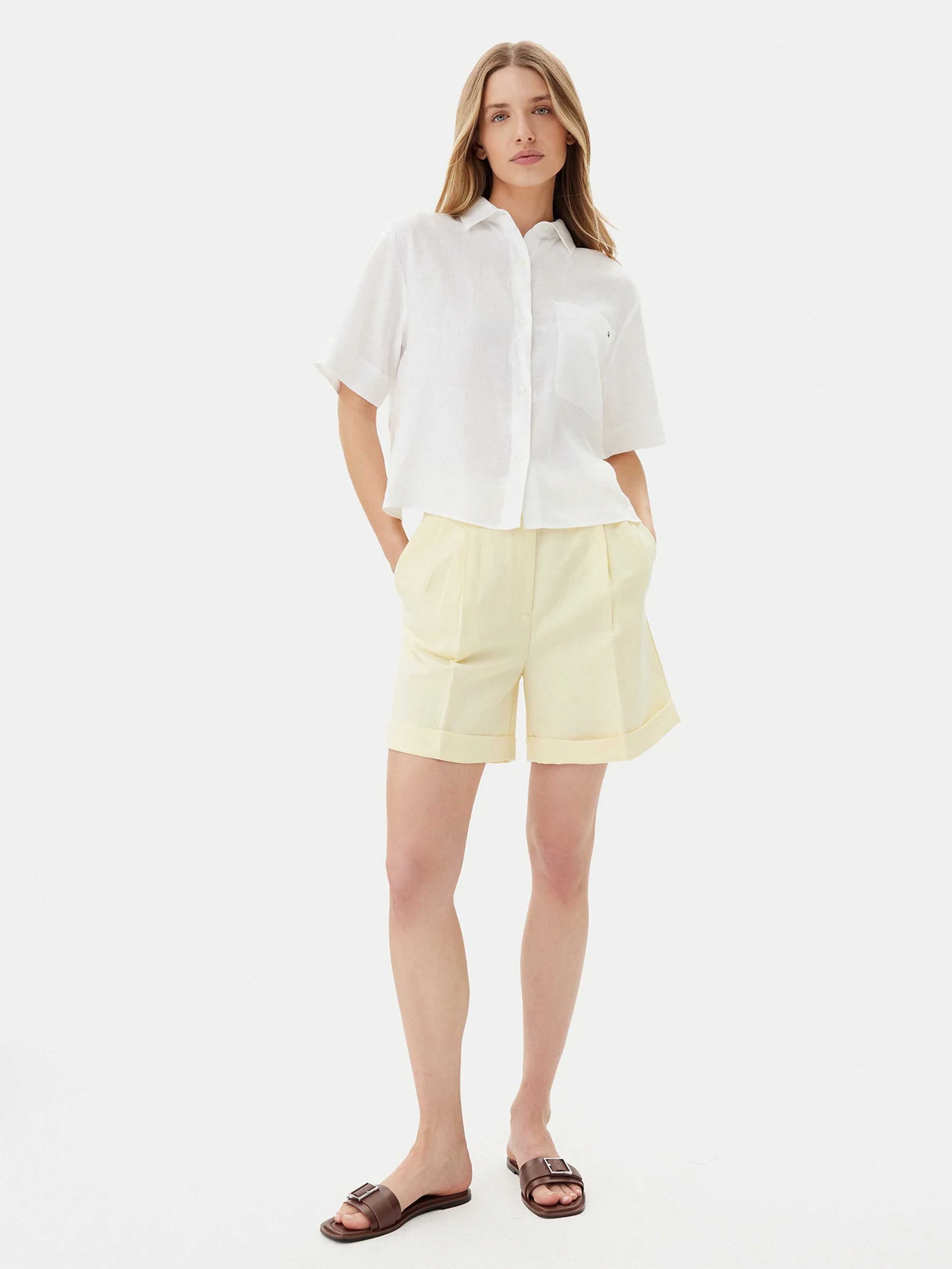 Tommy Hilfiger - LINEN MIX PLEATED SHORT , 36 , Lemon Zest , Style WW0WW44767