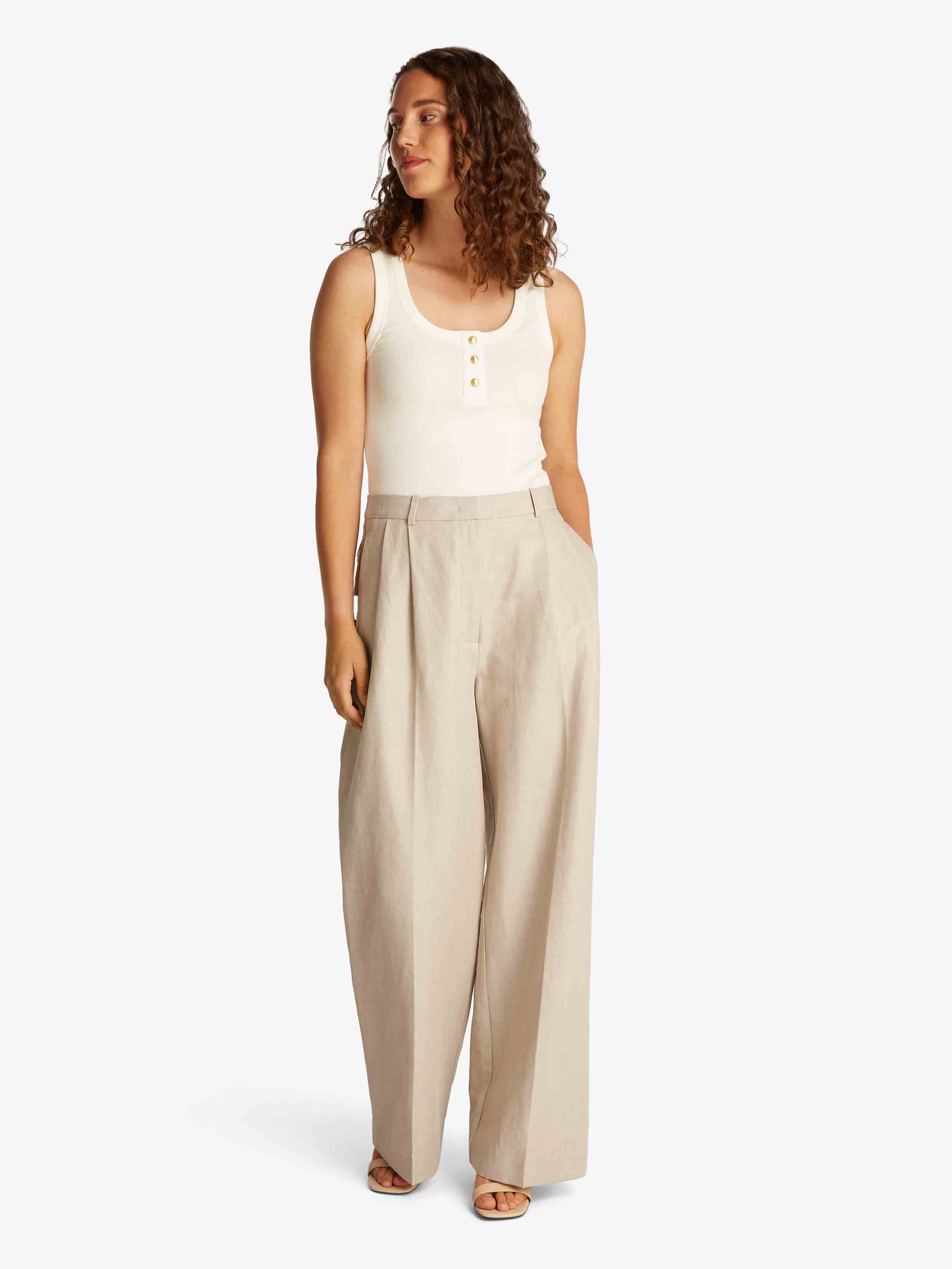 Tommy Hilfiger - LINEN MIX RLXD STRAIGHT PANTS , 40 , Classic Beige , Style WW0WW45460