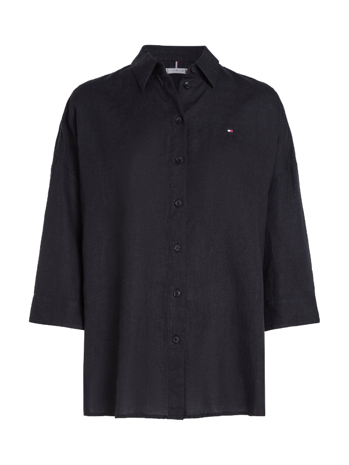Tommy Hilfiger - ESS LINEN LOOSE 3-4 SLEEVE SHIRT , 36 , Black , Style WW0WW46169