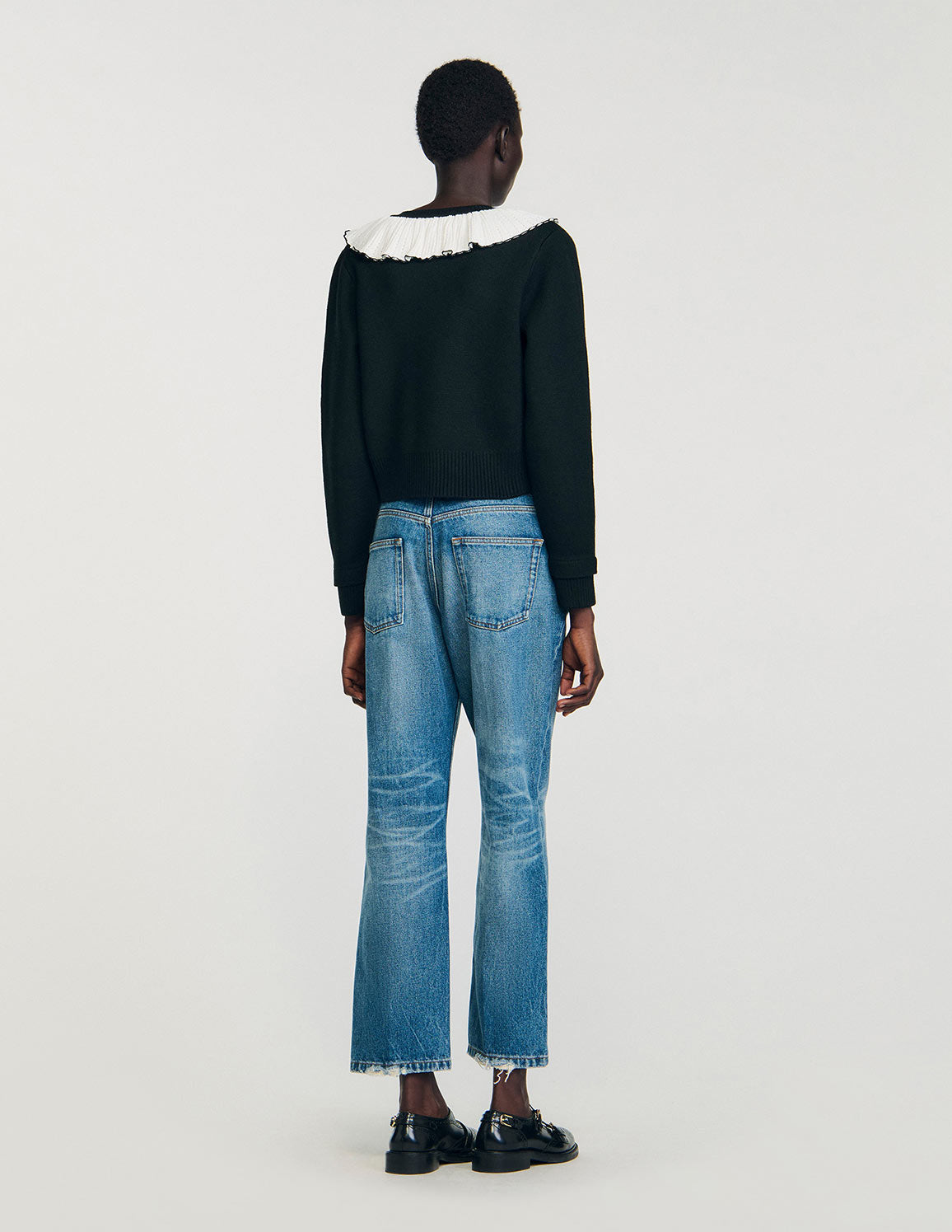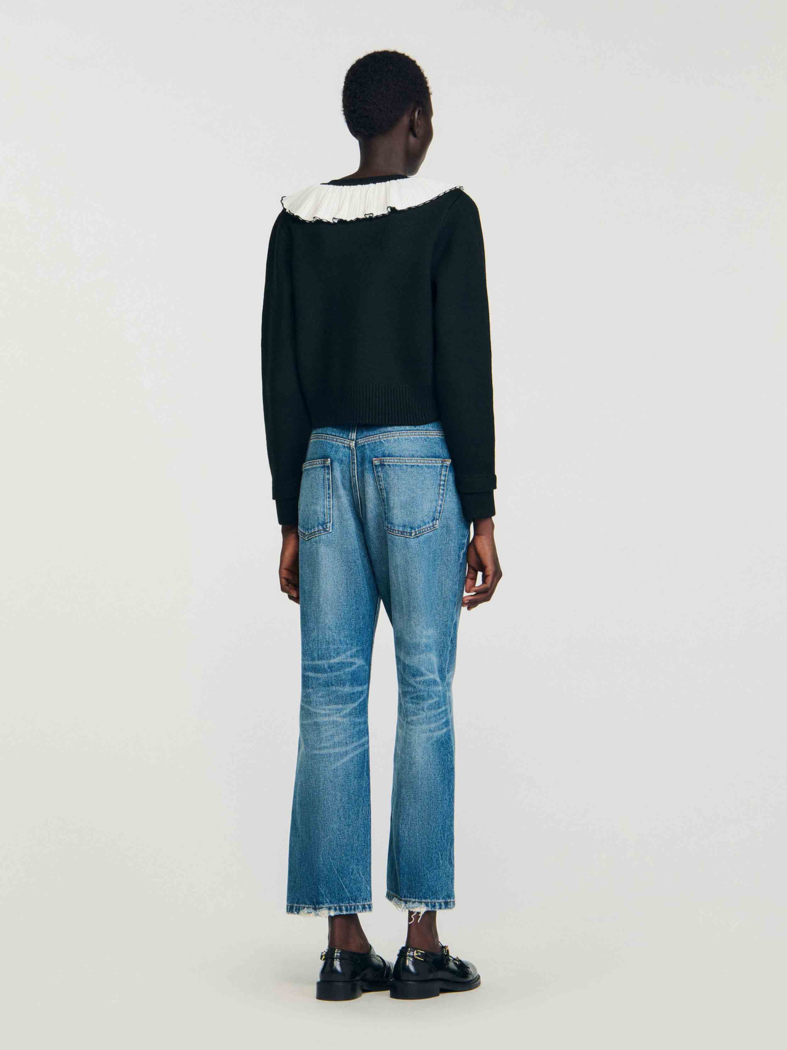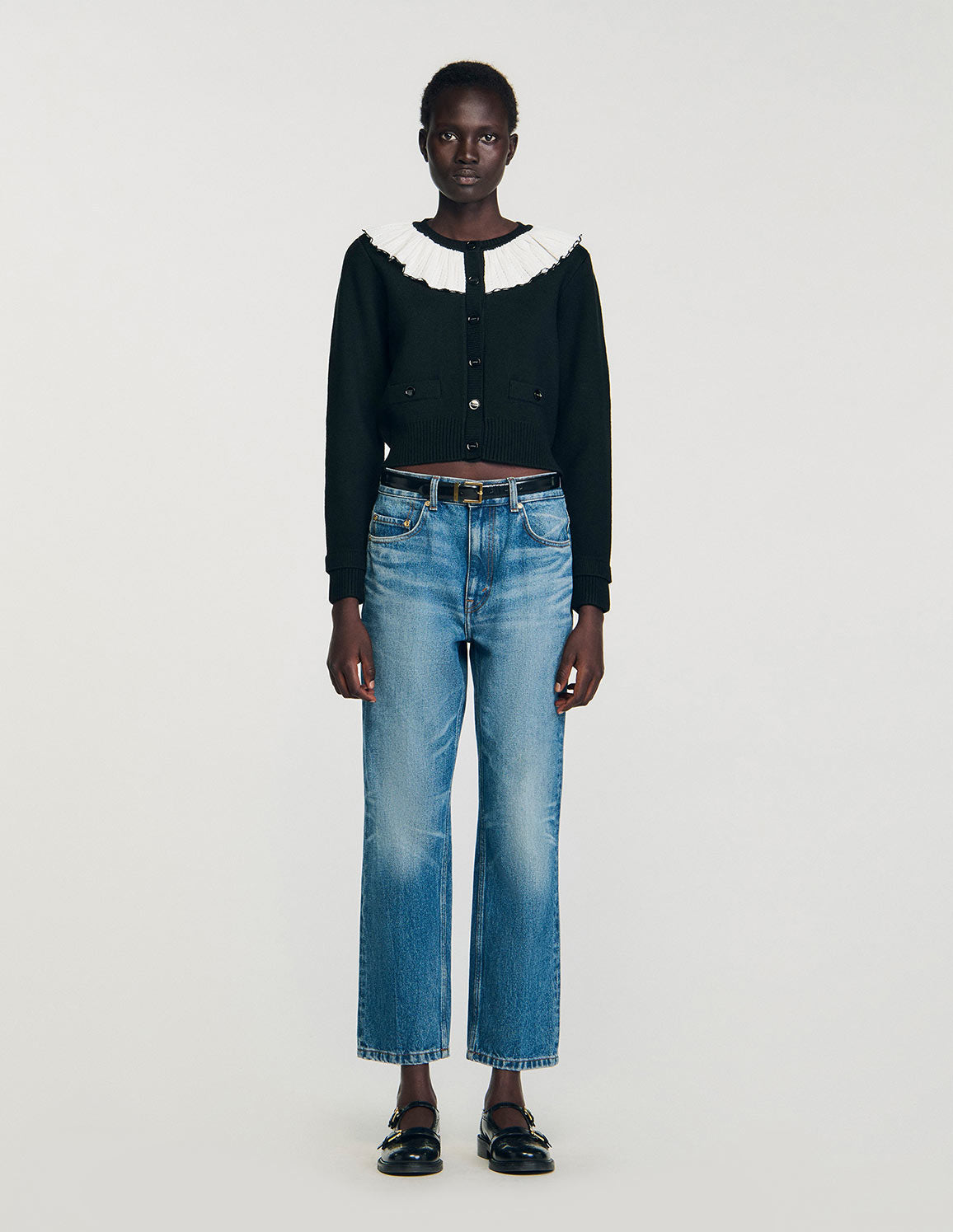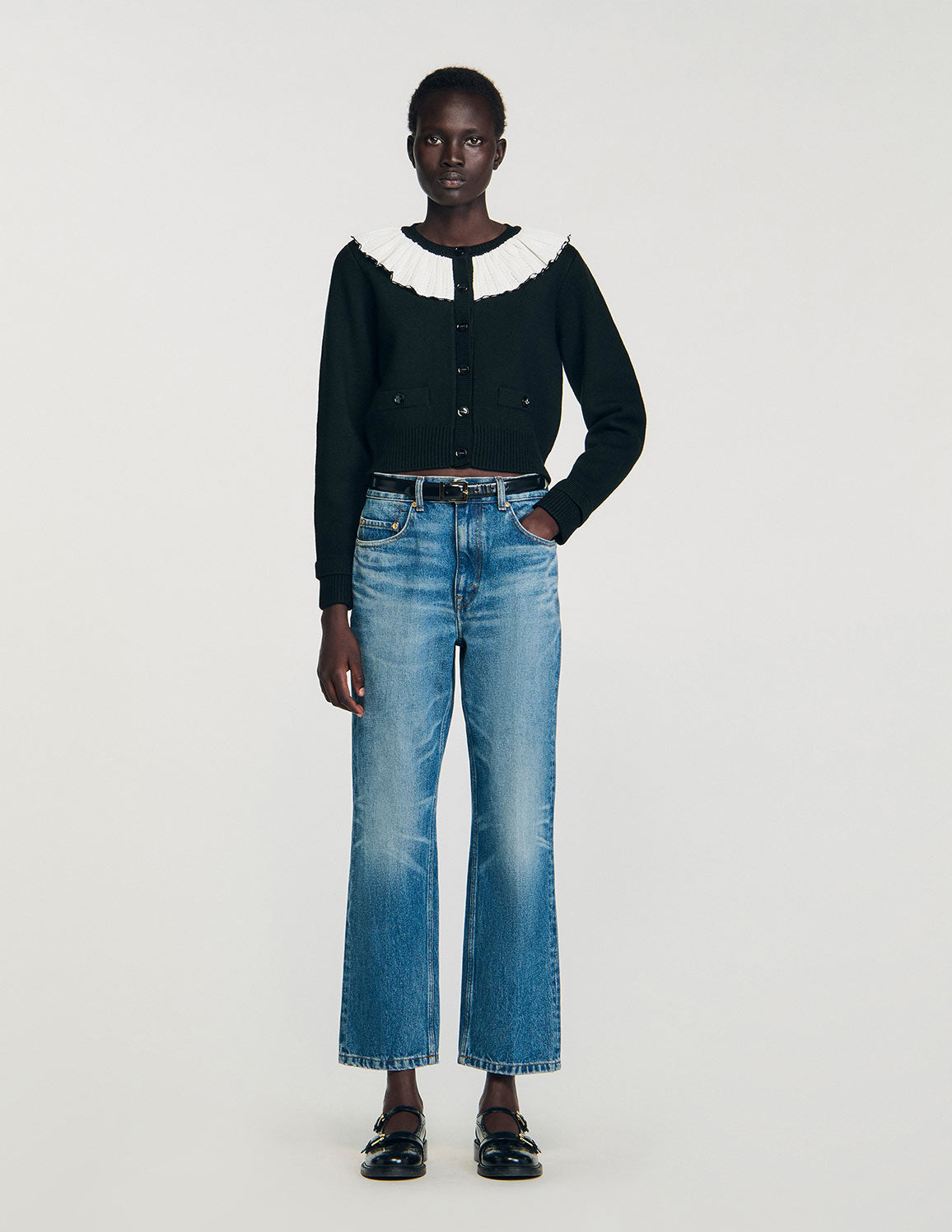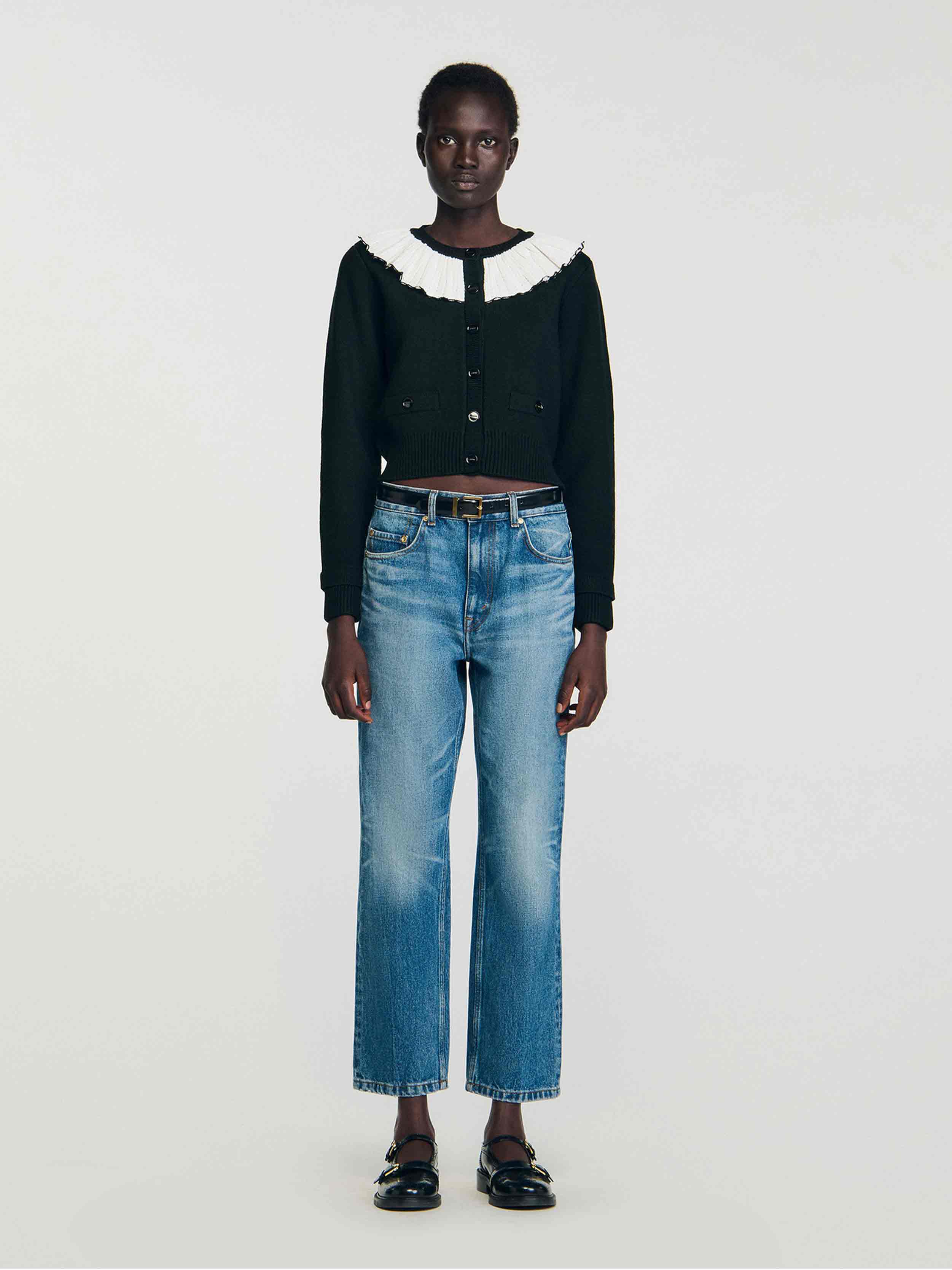 • Wool cardigan with a contrasting ruffled collar, button fastening, long sleeves and decorative piped pockets.