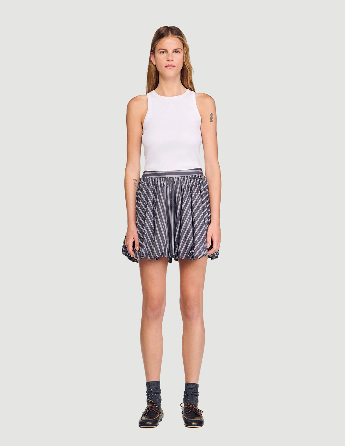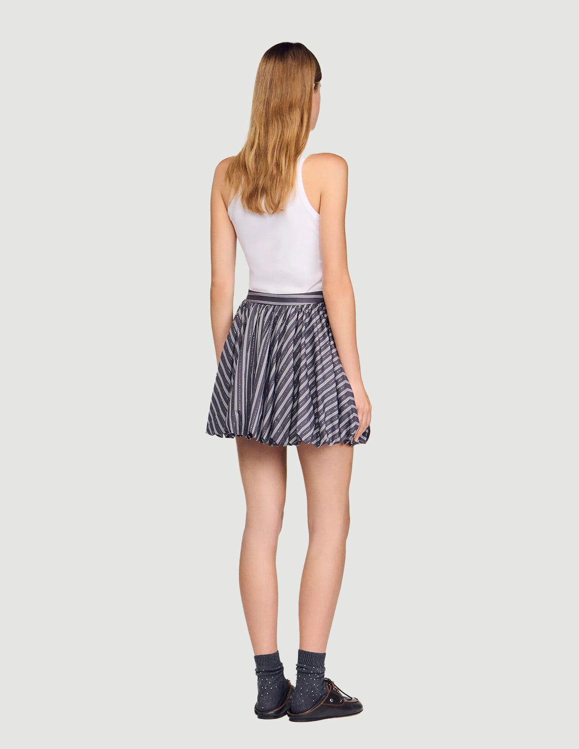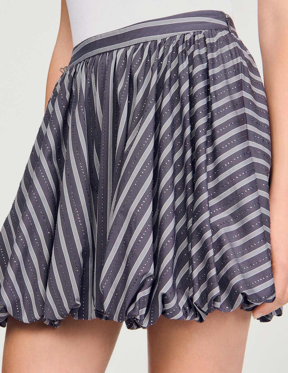 • Striped skater bubble skirt embellished with rhinestones, with a side zip fastening.