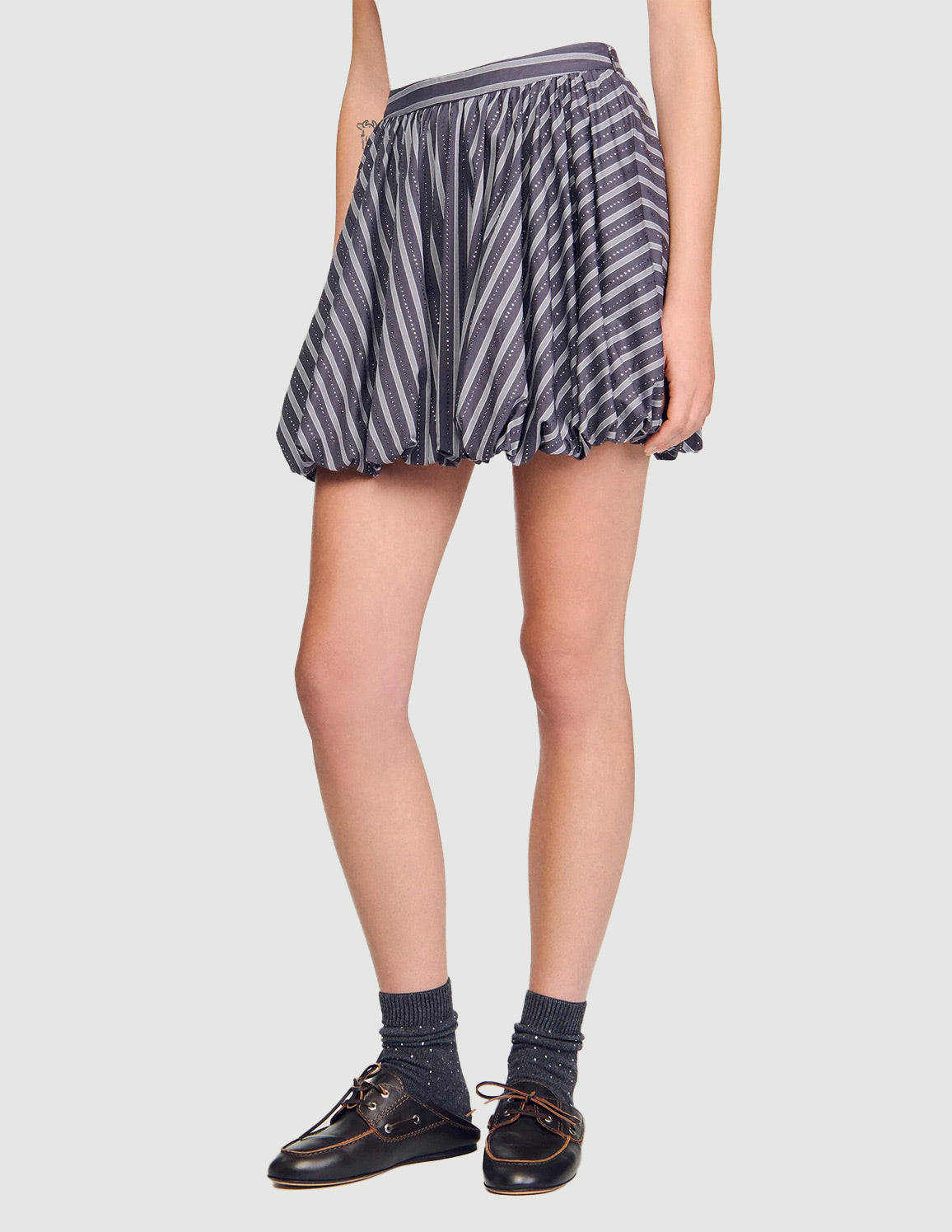 SANDRO - Women's Middy Striped Rhinestone Bubble Skirt