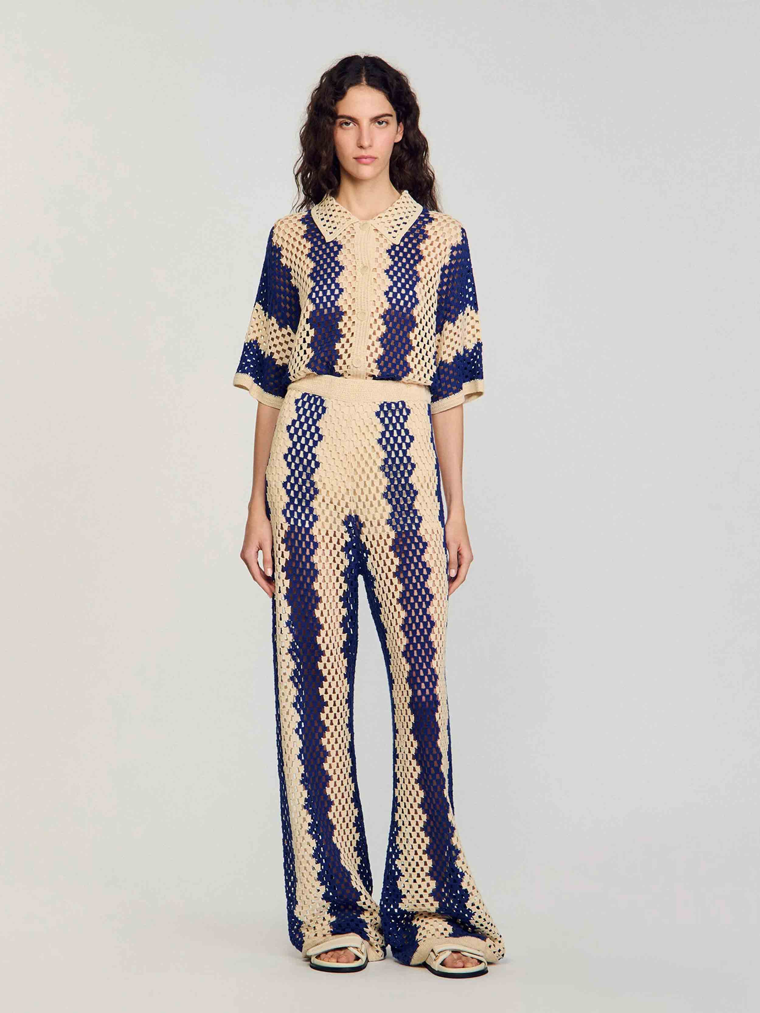 • SANDRO - Women's Two-Tone Open Weave Trousers