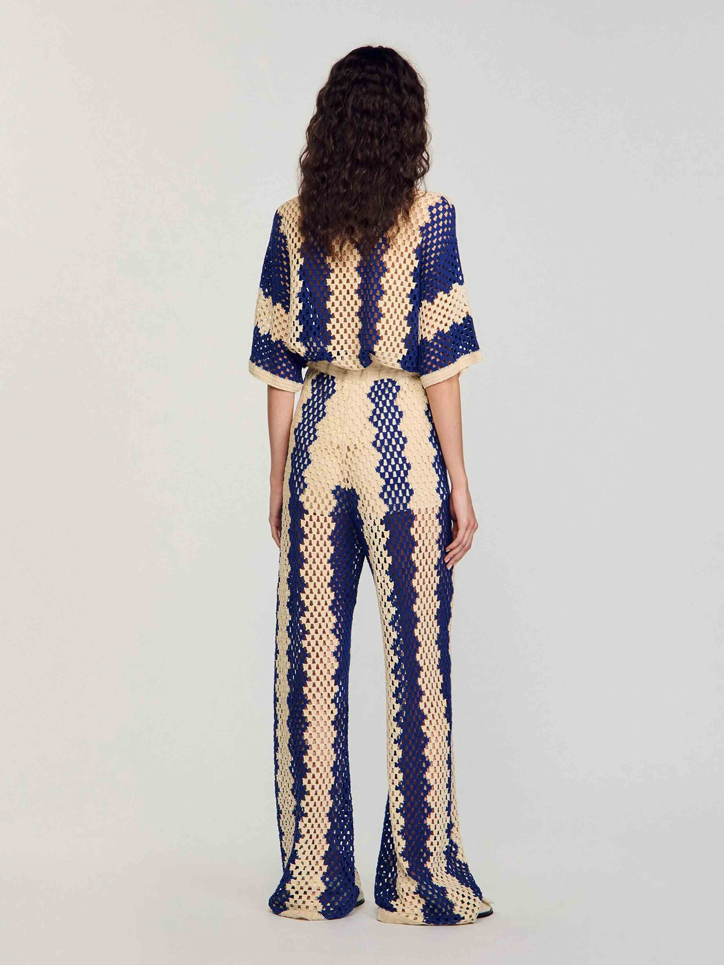 • Open weave straight trousers with a contrasting pattern and short lining.