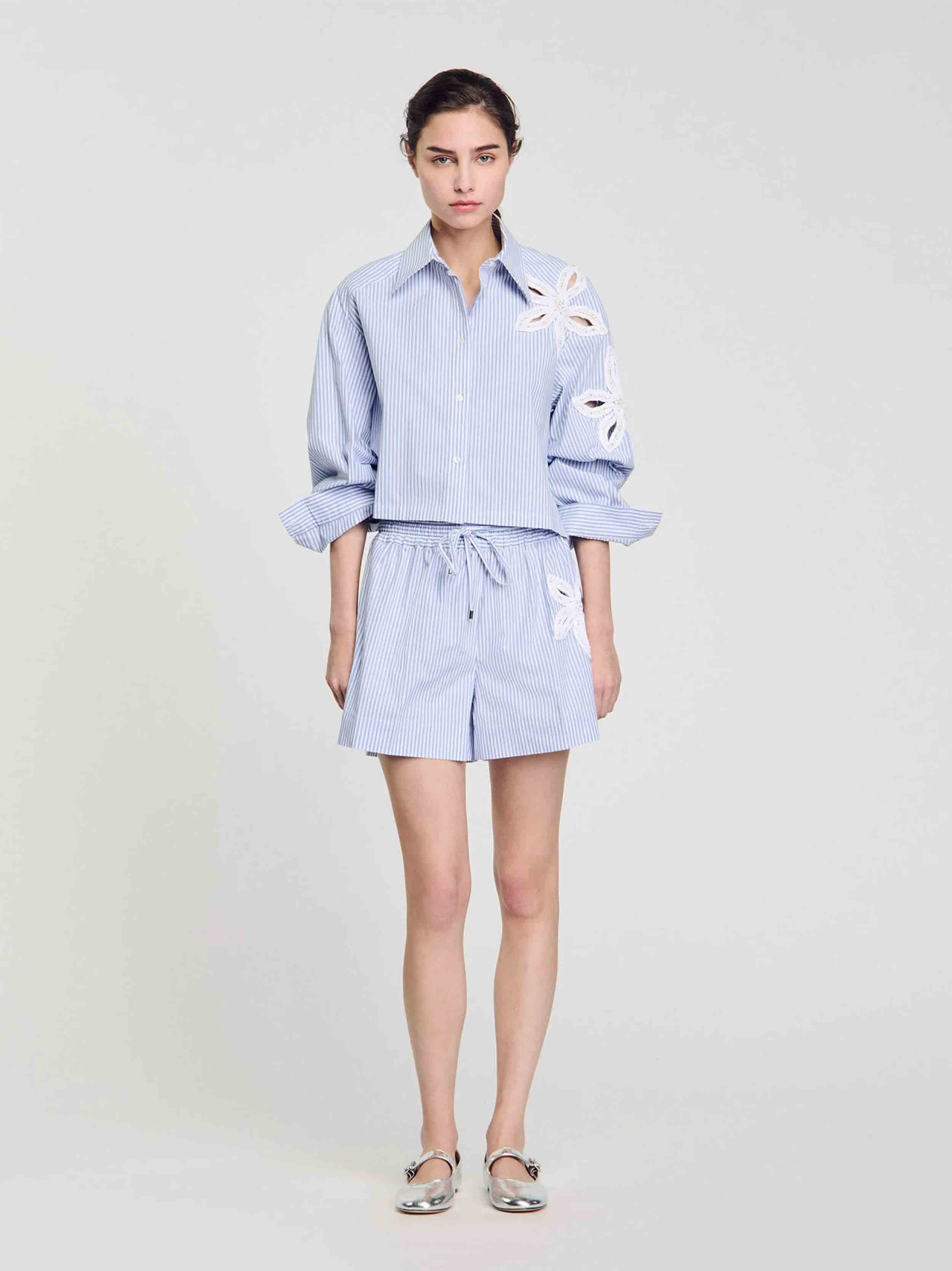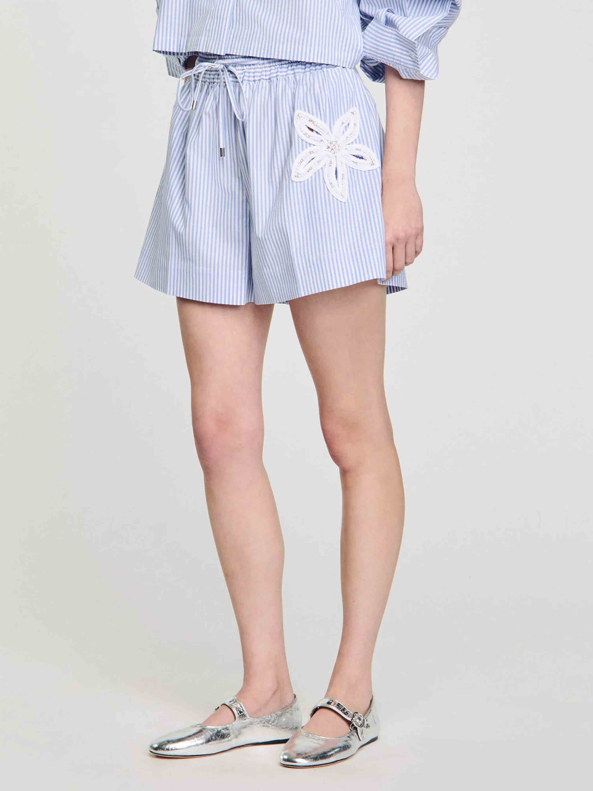 SANDRO - Women’s Striped Shorts With Flower Detail