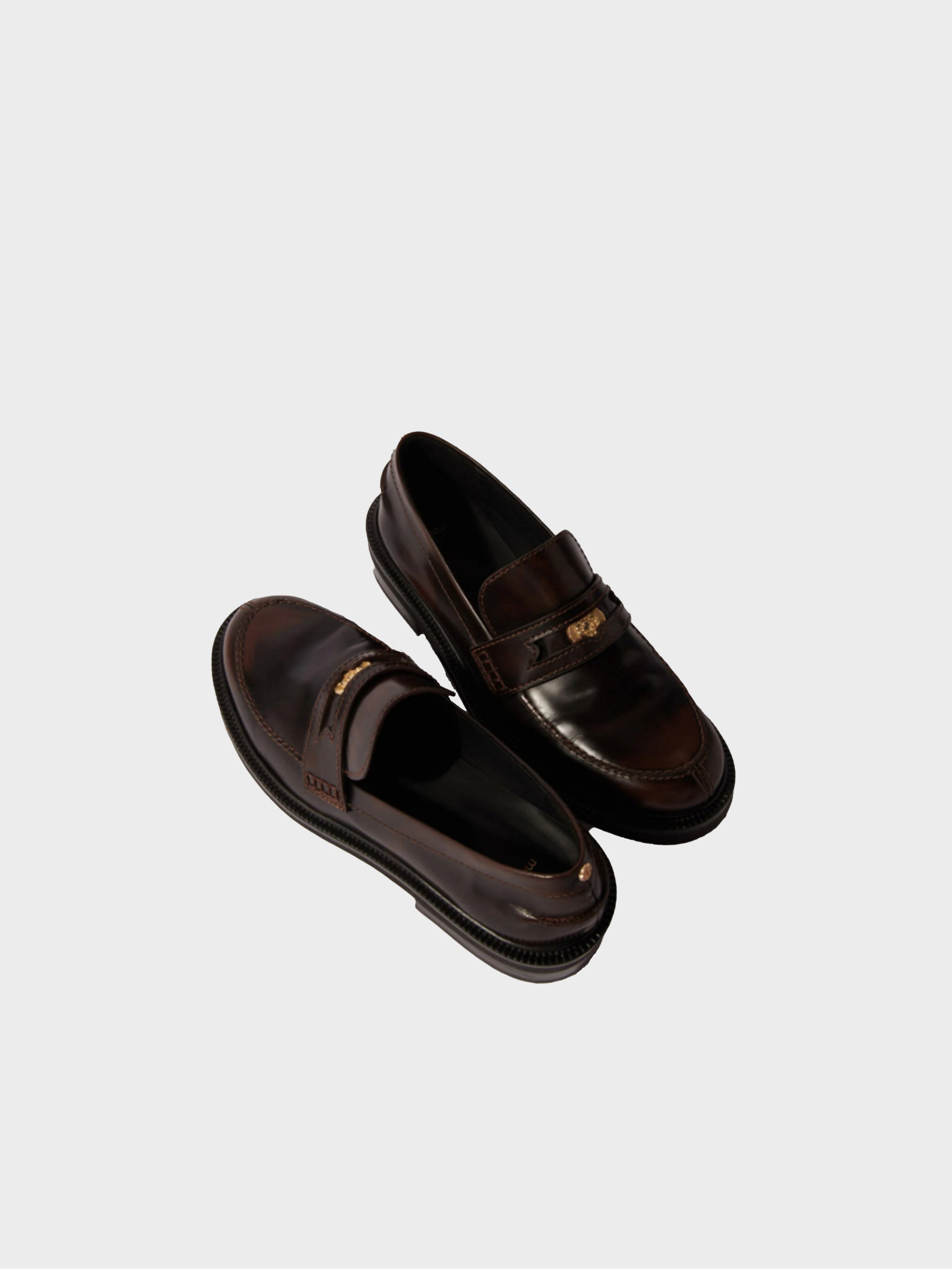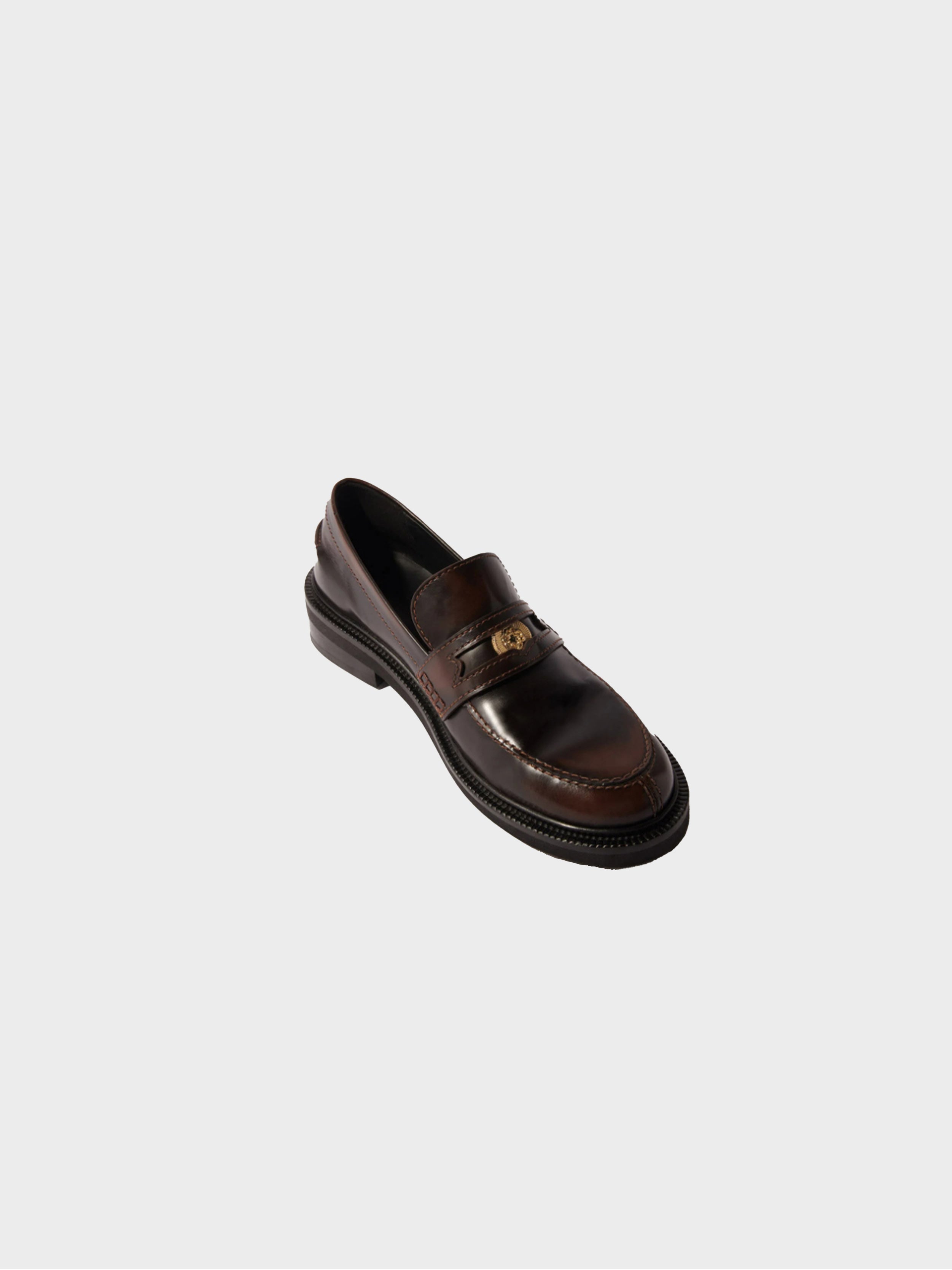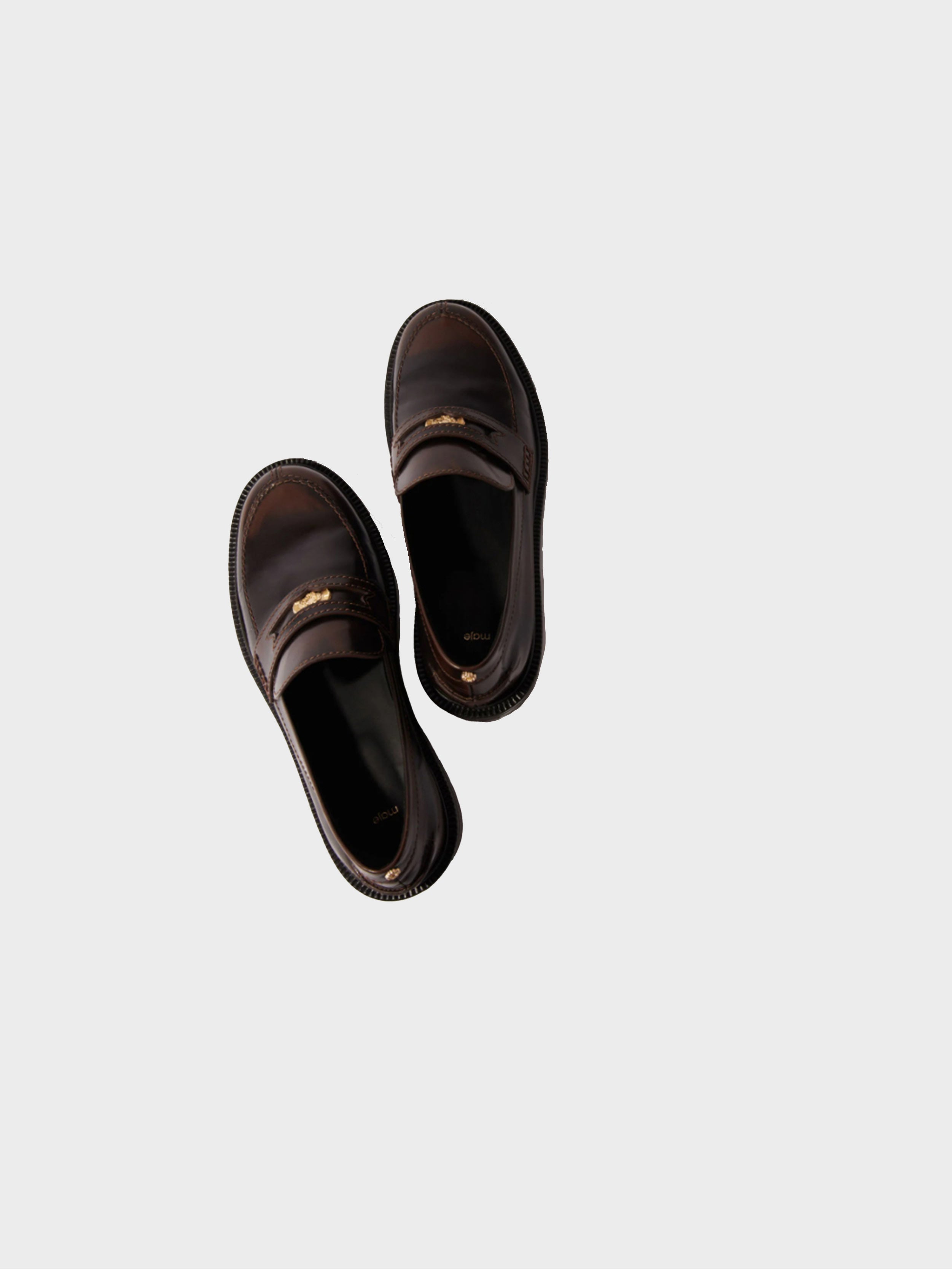 • These smooth leather loafers revisit a preppy look with a contemporary twist. Effortlessly elegant, they focus on a clean silhouette, enhanced by a signature detail: a gold Clover medallion discreetly tucked under the tongue. The flat, padded sole promises everyday comfort.
