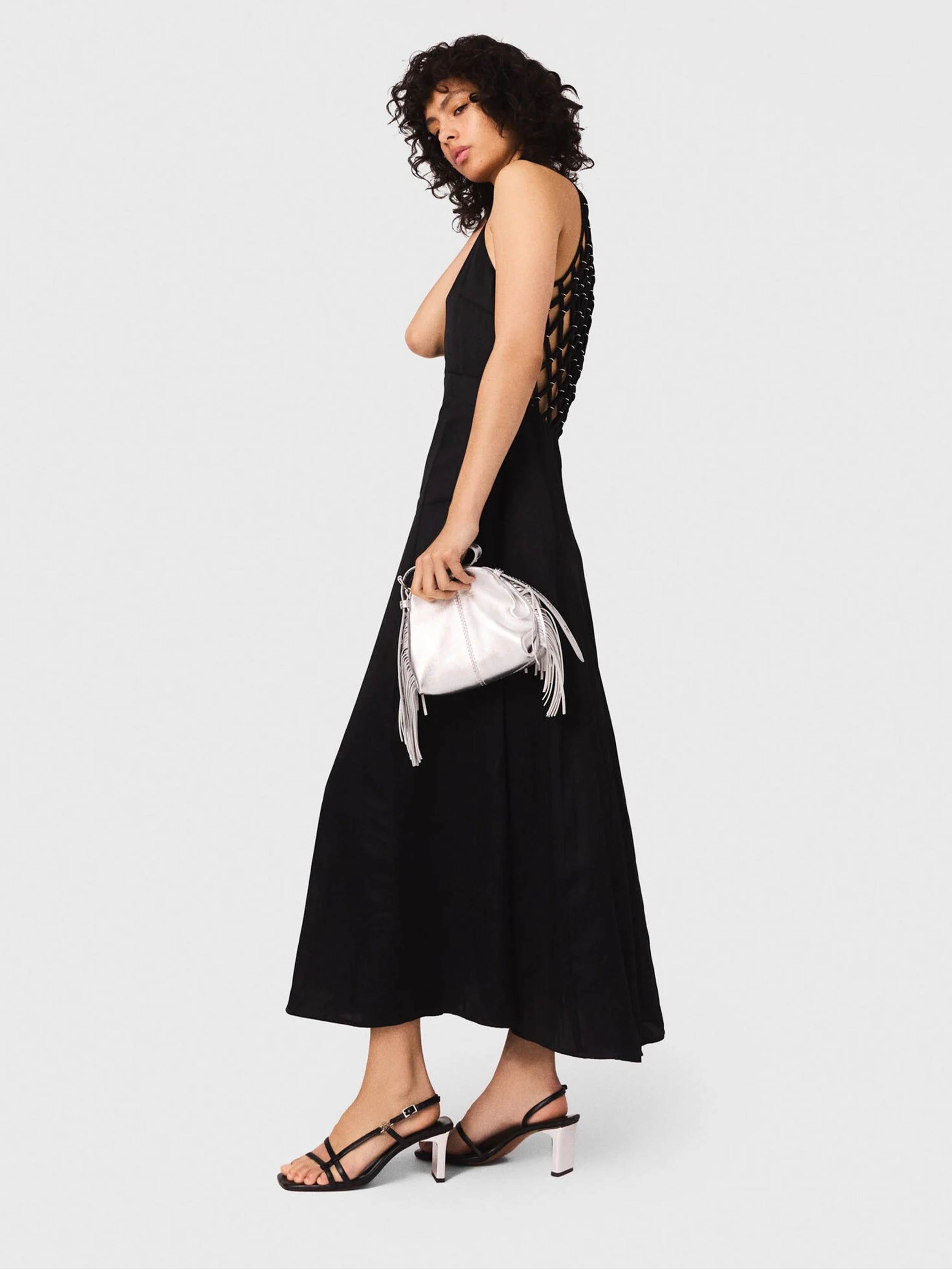 • This season's must-have accessory, the Miss M comes in a new micro metallic format enhanced with fringes on the sides. Still featuring its dual carrying options, it adds a bold touch to any silhouette and can be worn from morning to night.