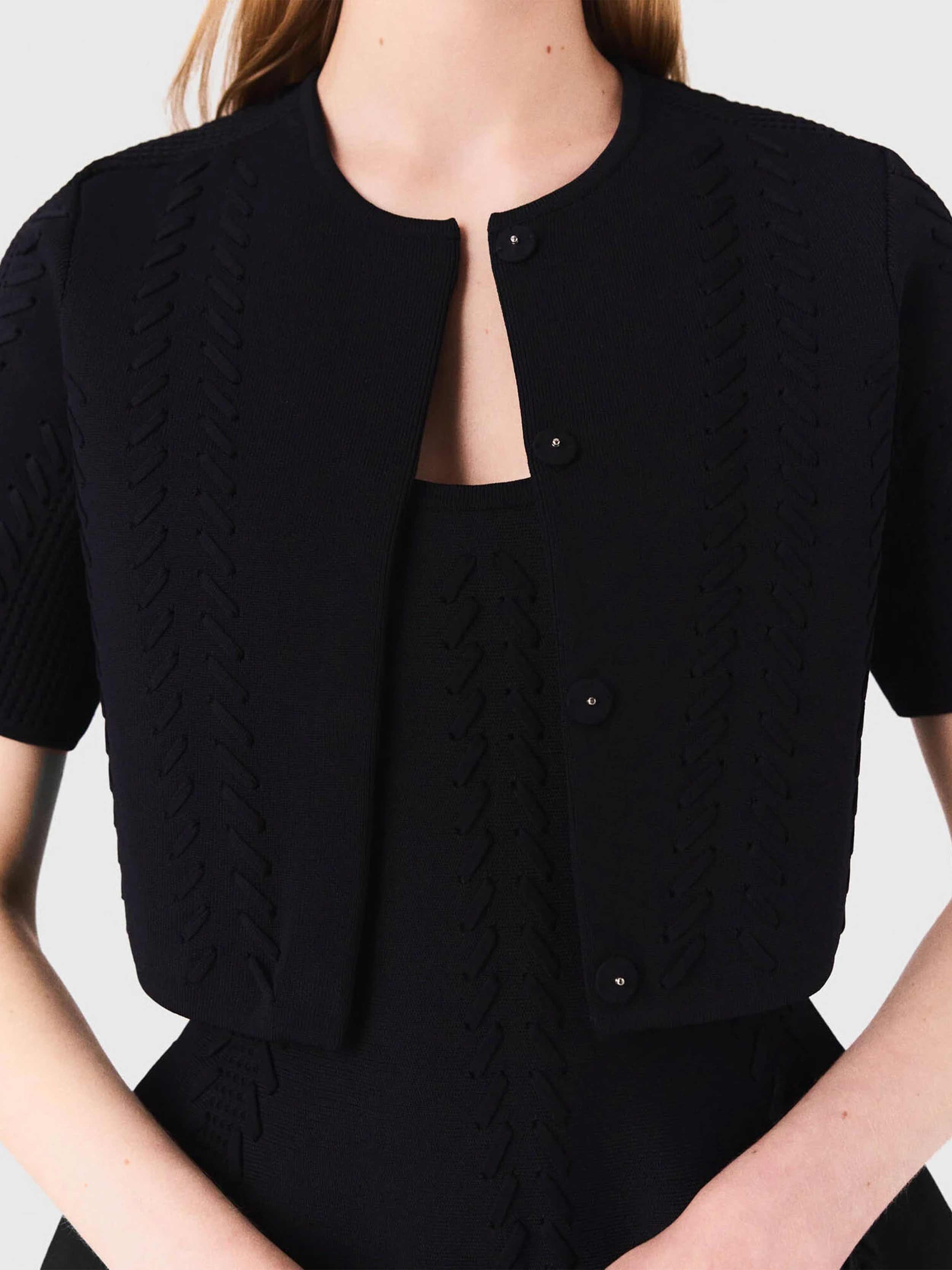 • Short pointelle knit cardigan