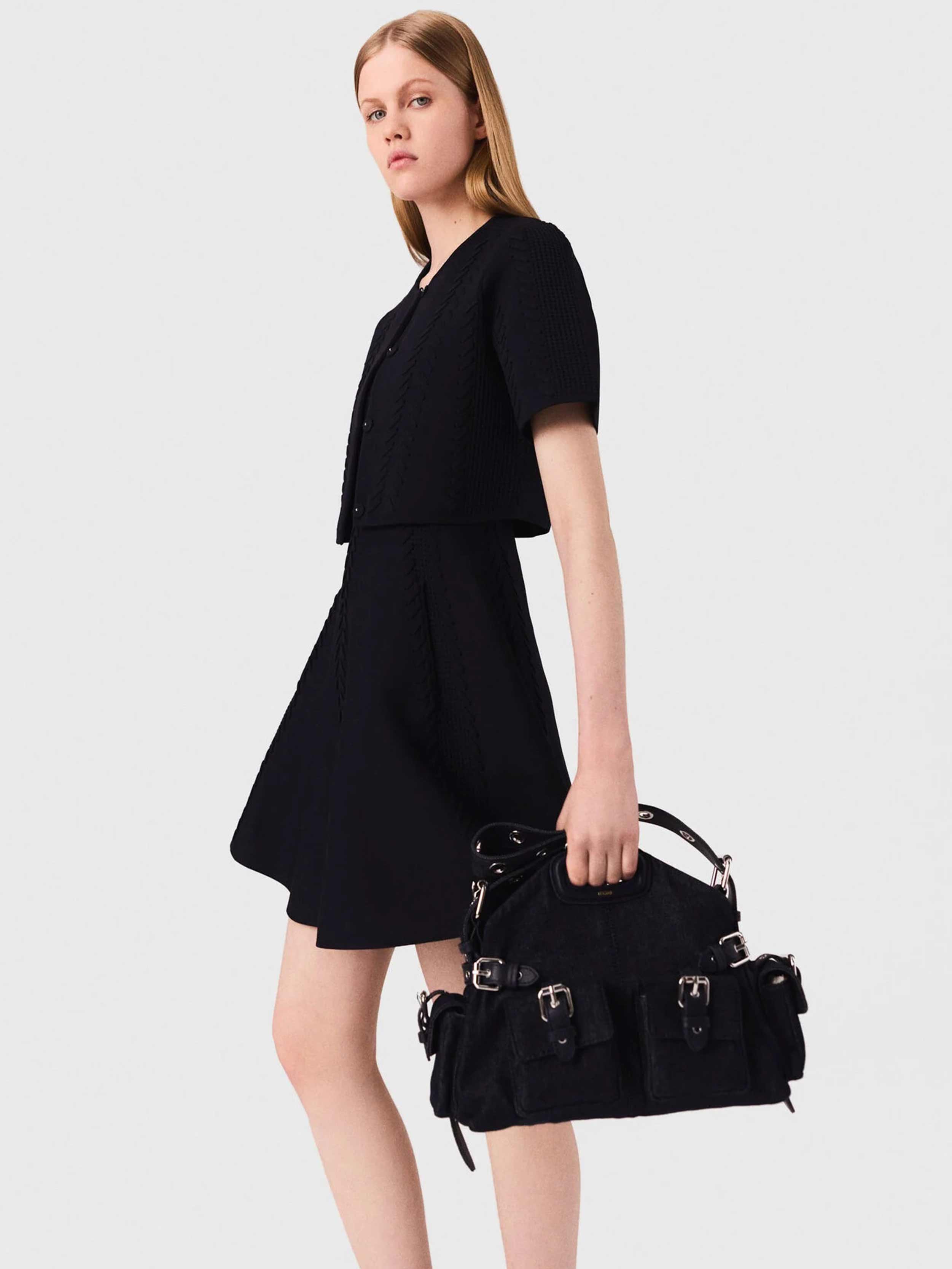 • This short pointelle knit cardigan, hand-embroidered, combines delicacy and lightness. Its round neck and short sleeves add a touch of softness, while the press stud fastening allows for easy and elegant adjustment.