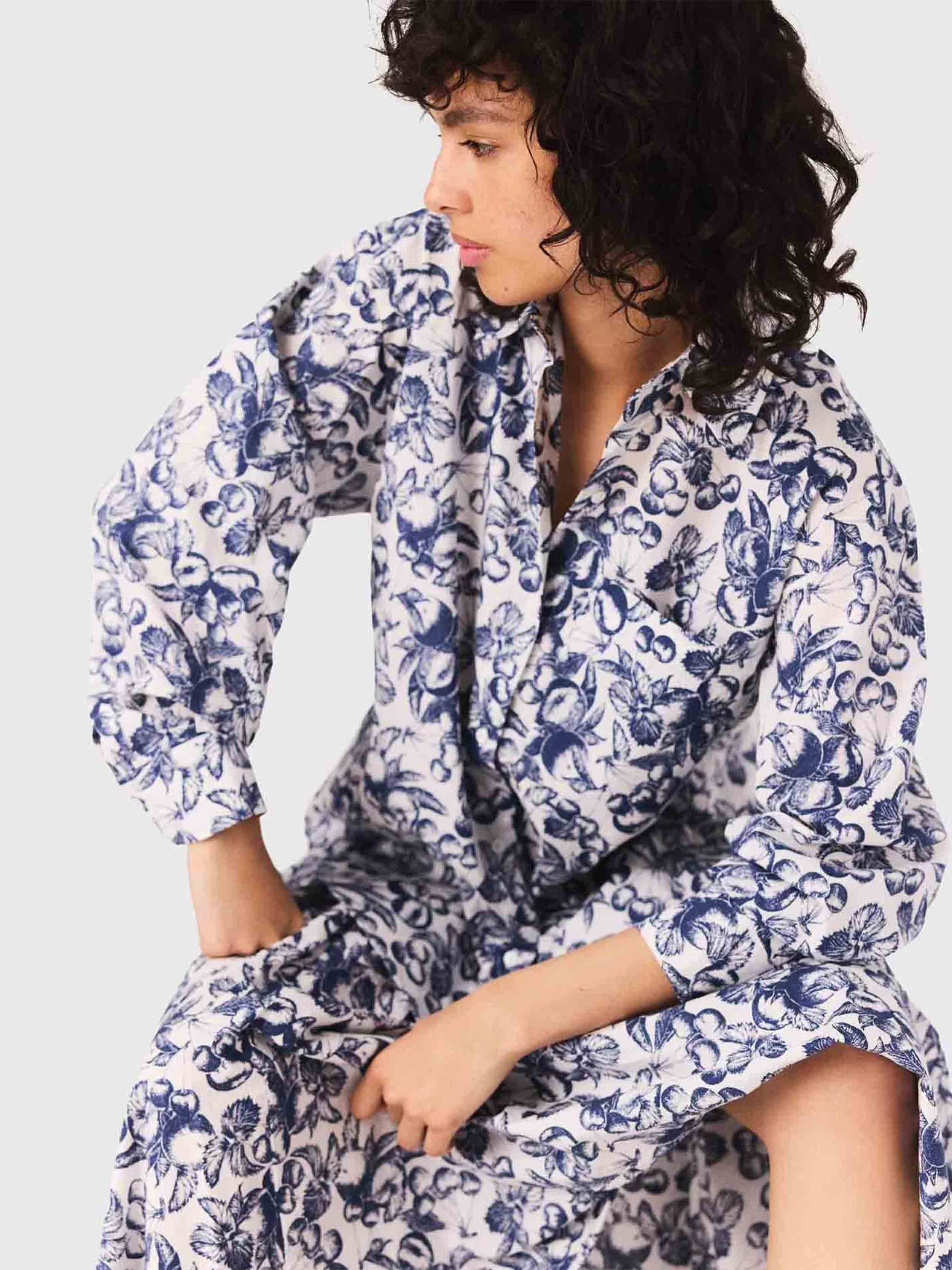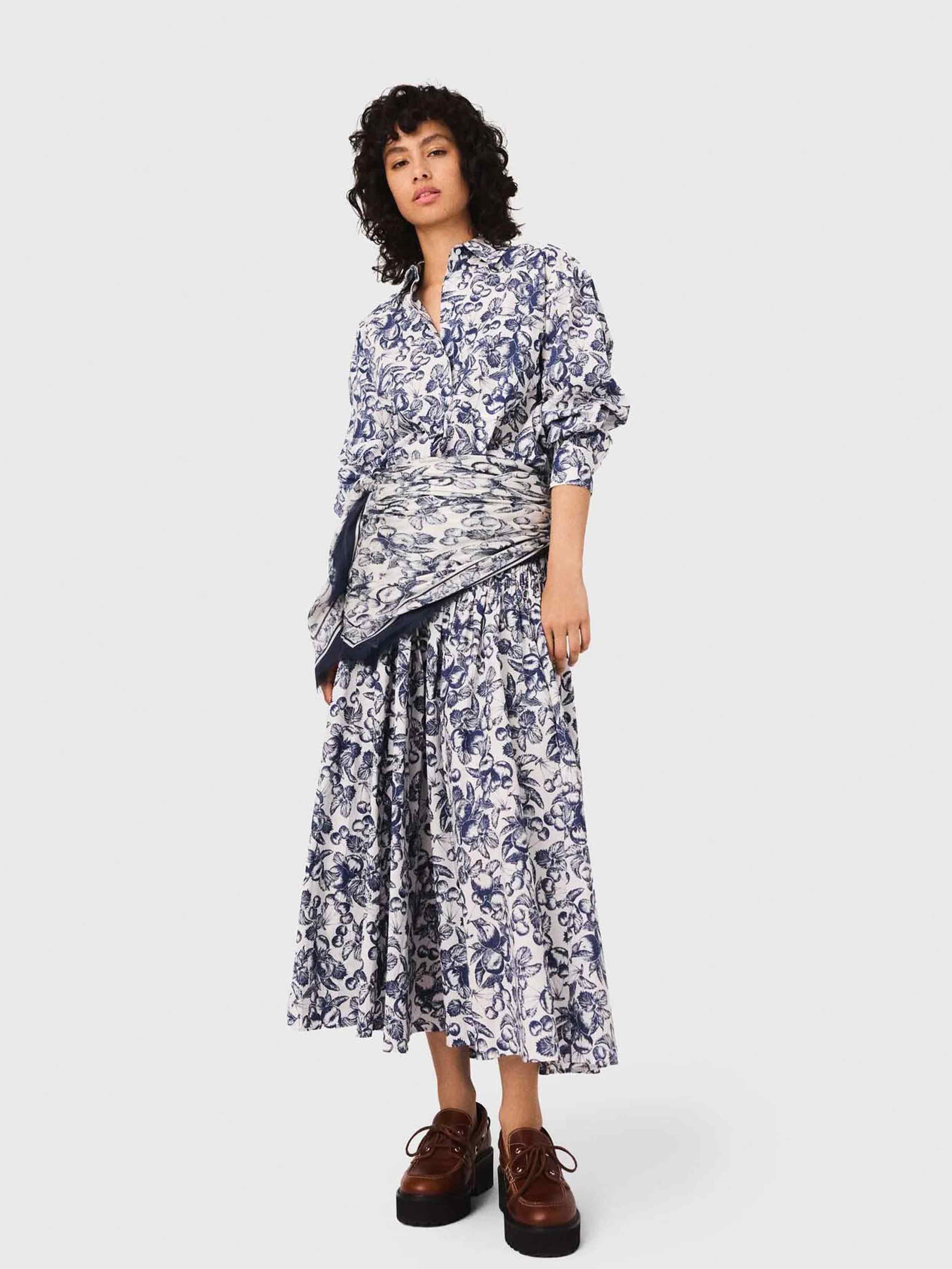 • This shirt features the fruit print, the season's signature motif. It has a straight cut, a classic collar, and a shirt hem slightly longer at the back. Smitten with this favourite print? Embrace the coordinated pieces and go for the total look.