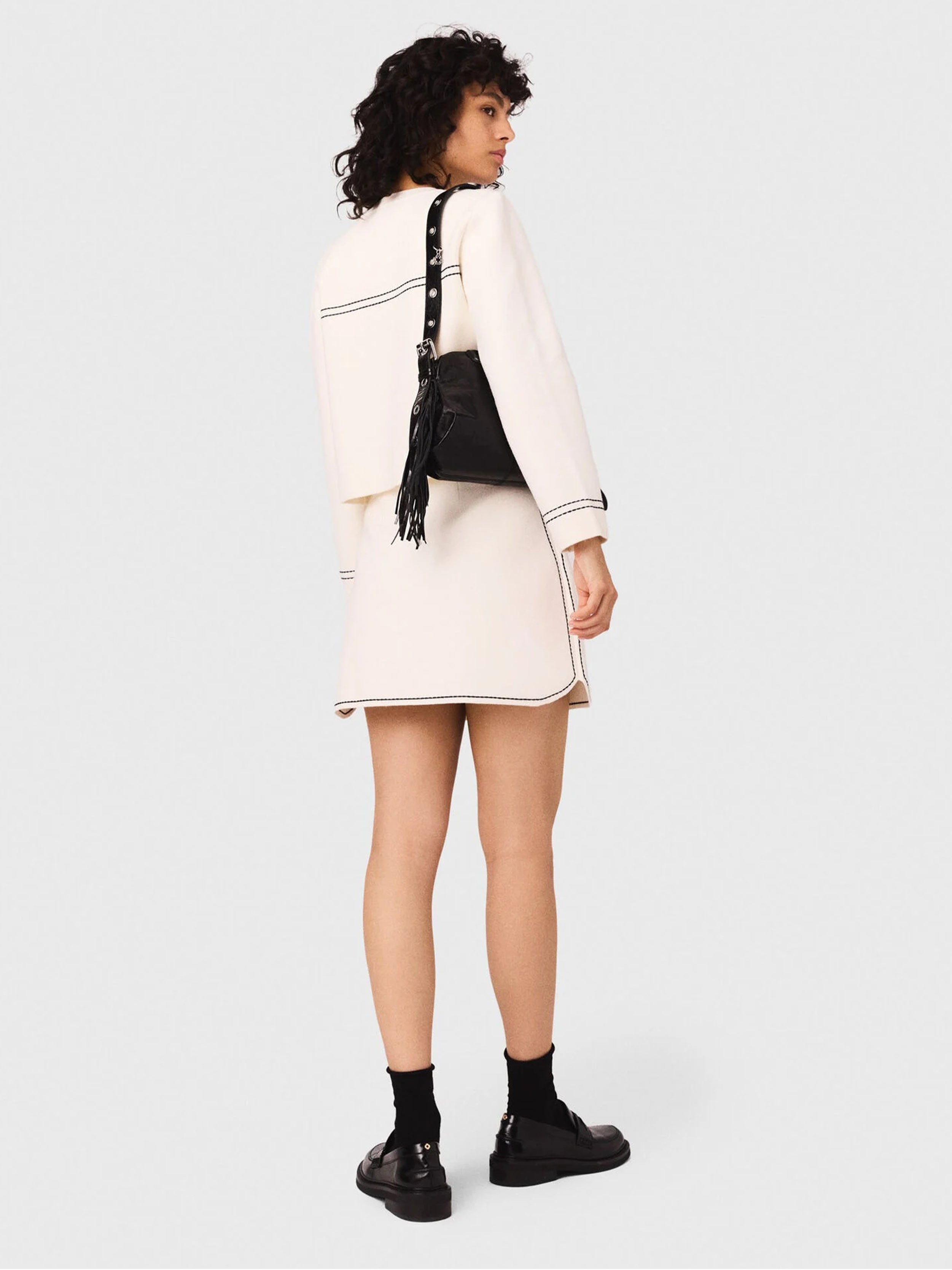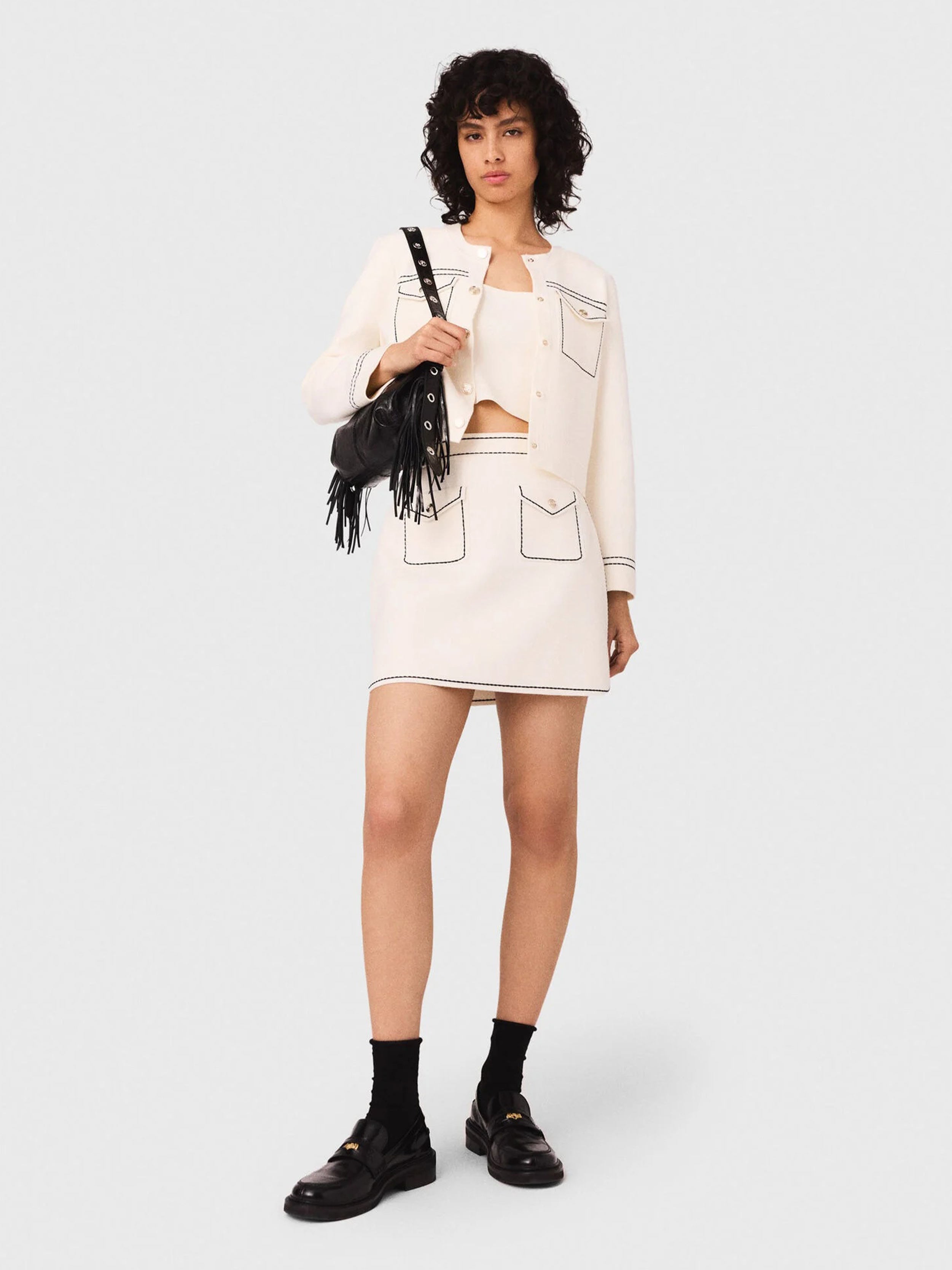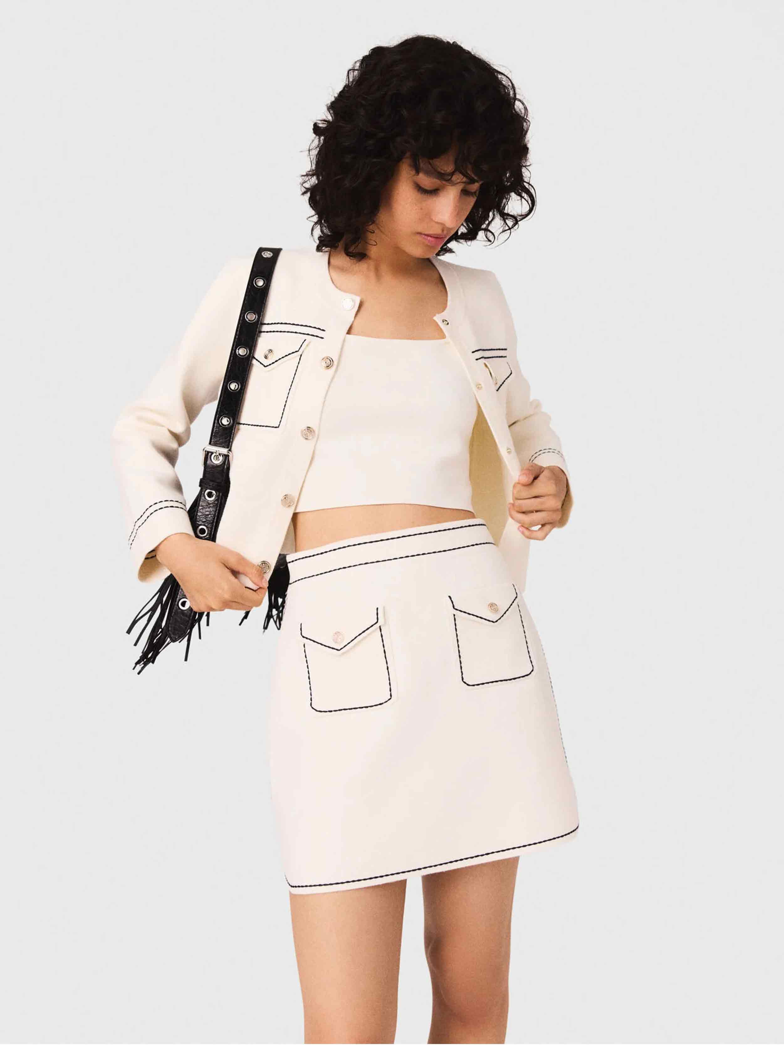 • This short quilted knit skirt adds a touch of relaxed sophistication to your silhouette. Its patch pockets with flaps and decorative buttons highlight its structure, while the small side slits and elasticated waist ensure great comfort. Wear it with the matching jacket, a plain top and a signature bag to complete a look that is both chic and casual.