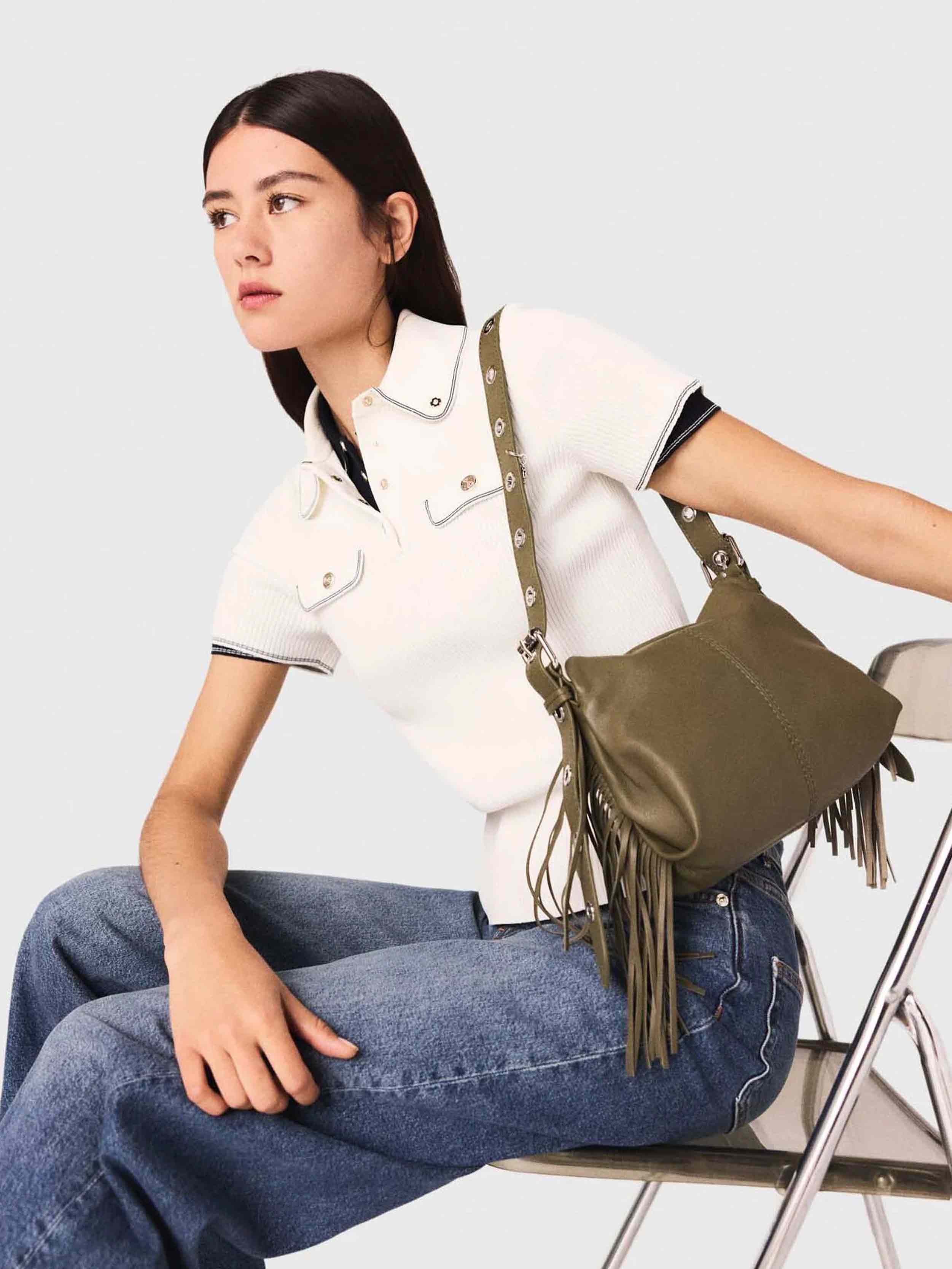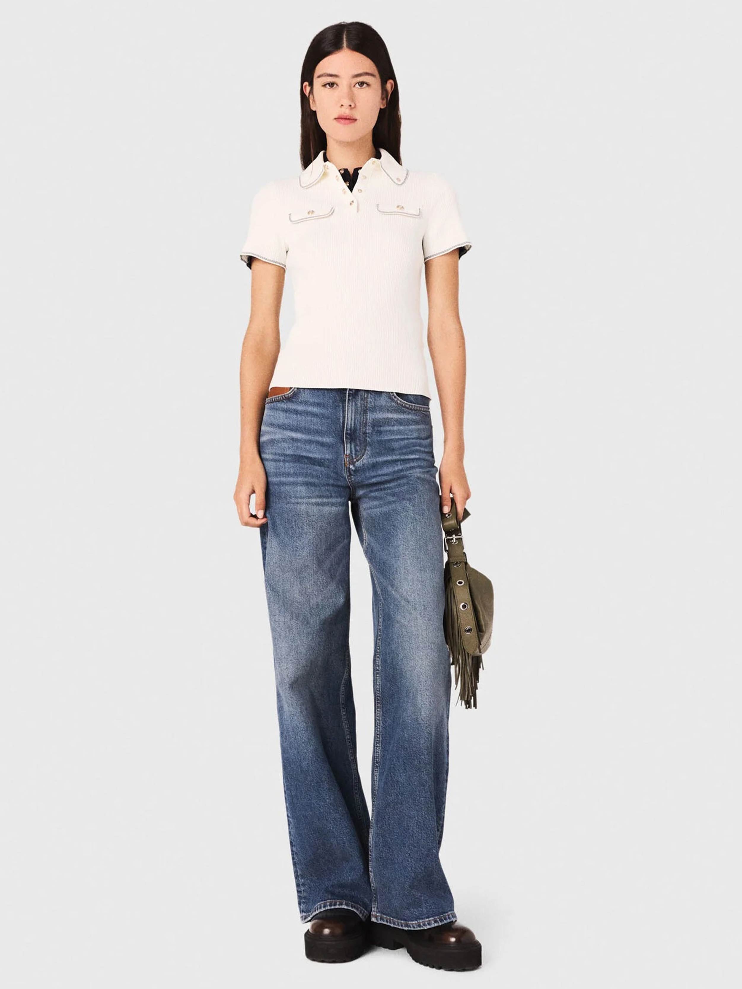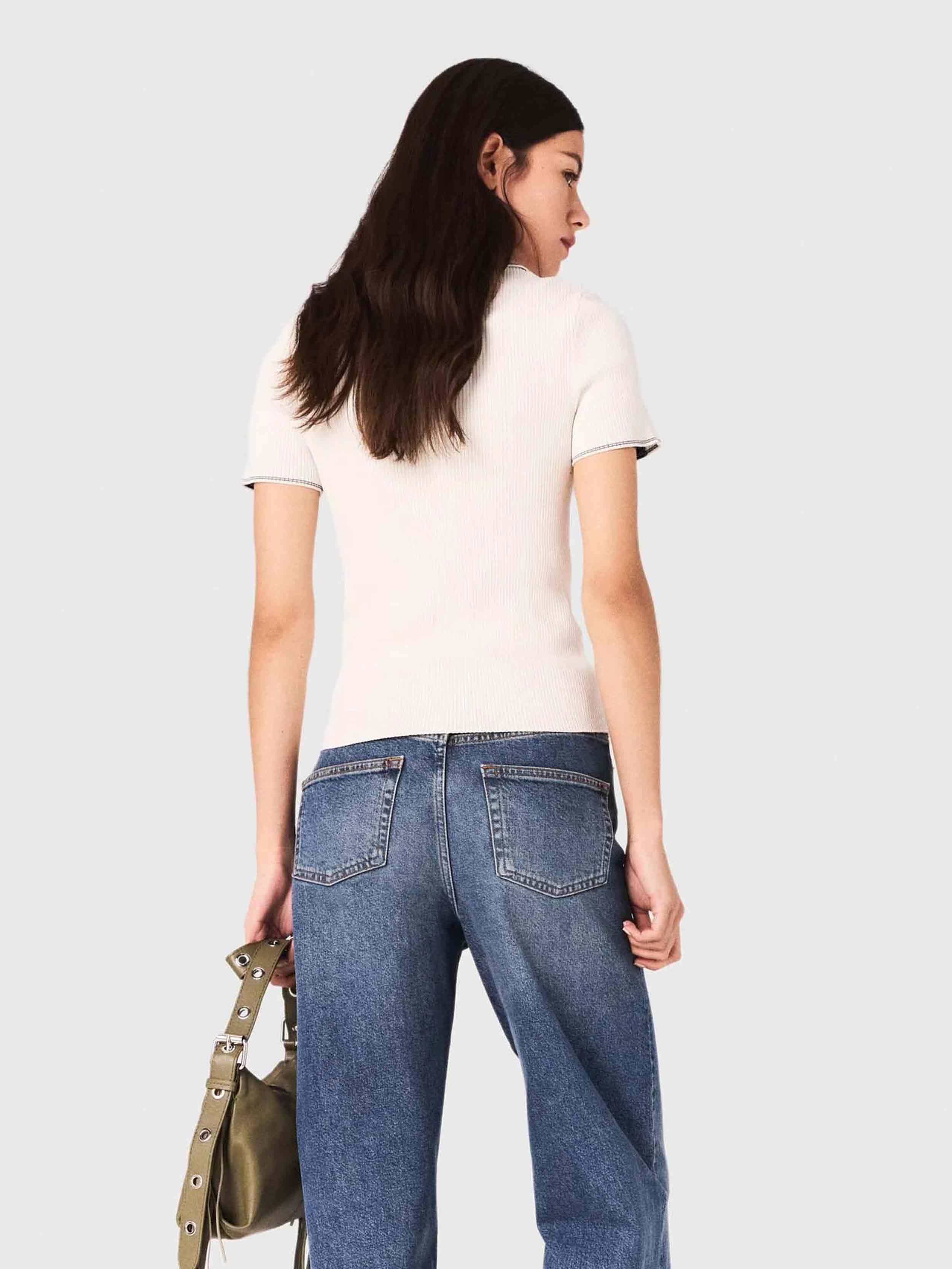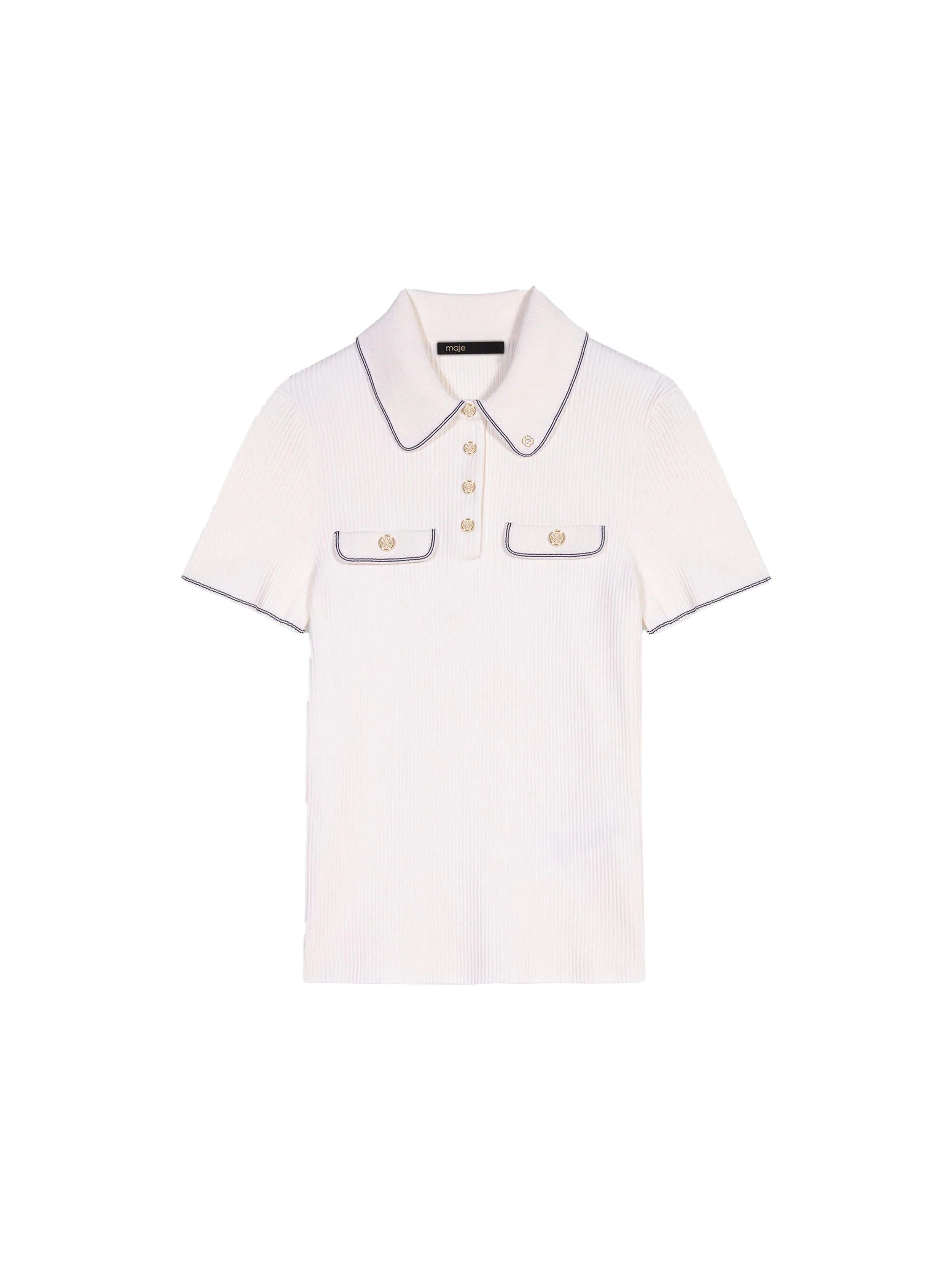 • This short-sleeved rib knit polo stands out as a versatile and contemporary piece to have in your wardrobe. The buttoned collar, adorned with a discreet Clover detail, adds a refined touch. The flap chest pockets and short sleeves make it an everyday essential, easy to pair with a leather skirt or tailored trousers. Wear it with leather loafers and a designer handbag for a modern and elegant look.