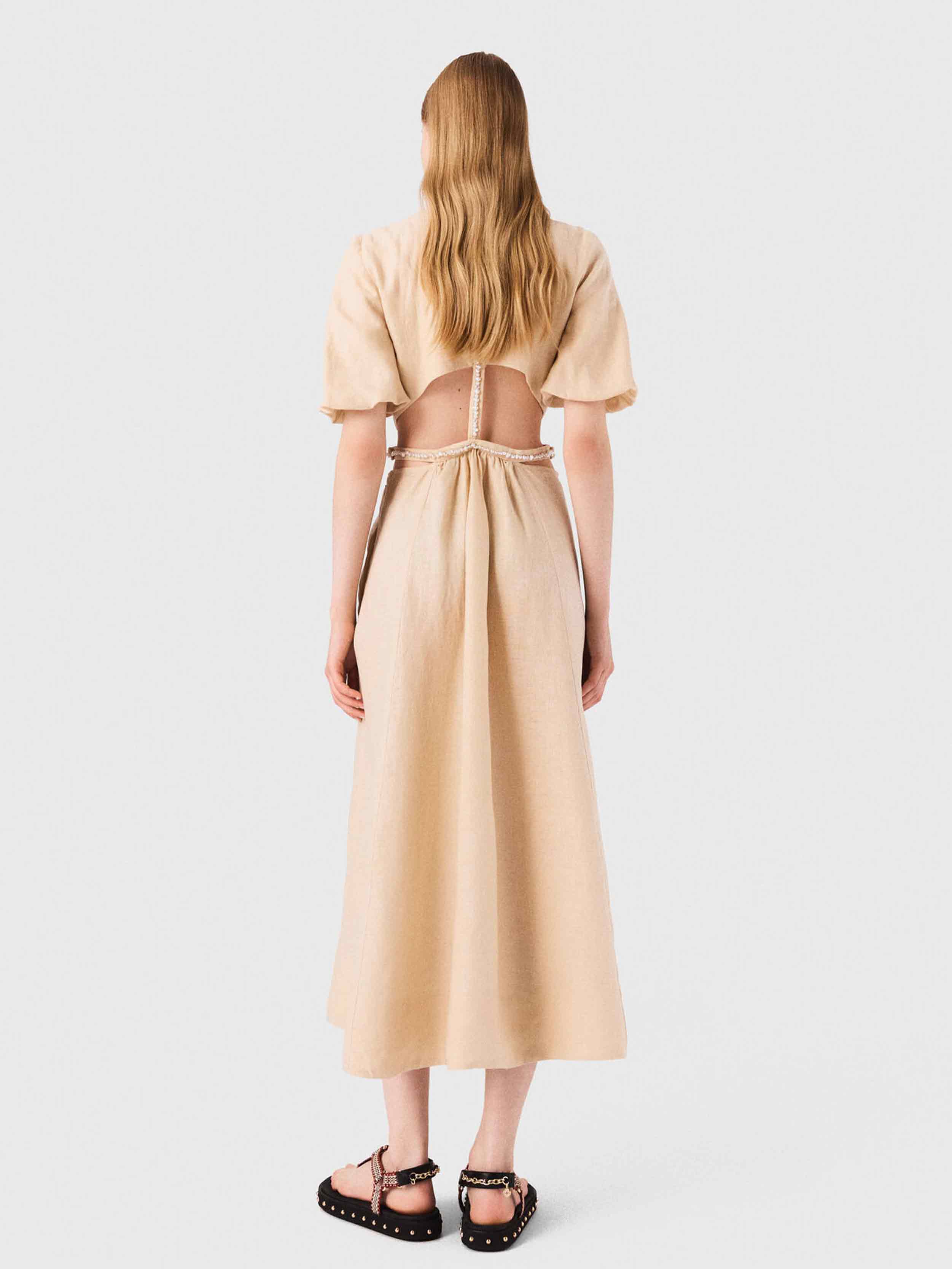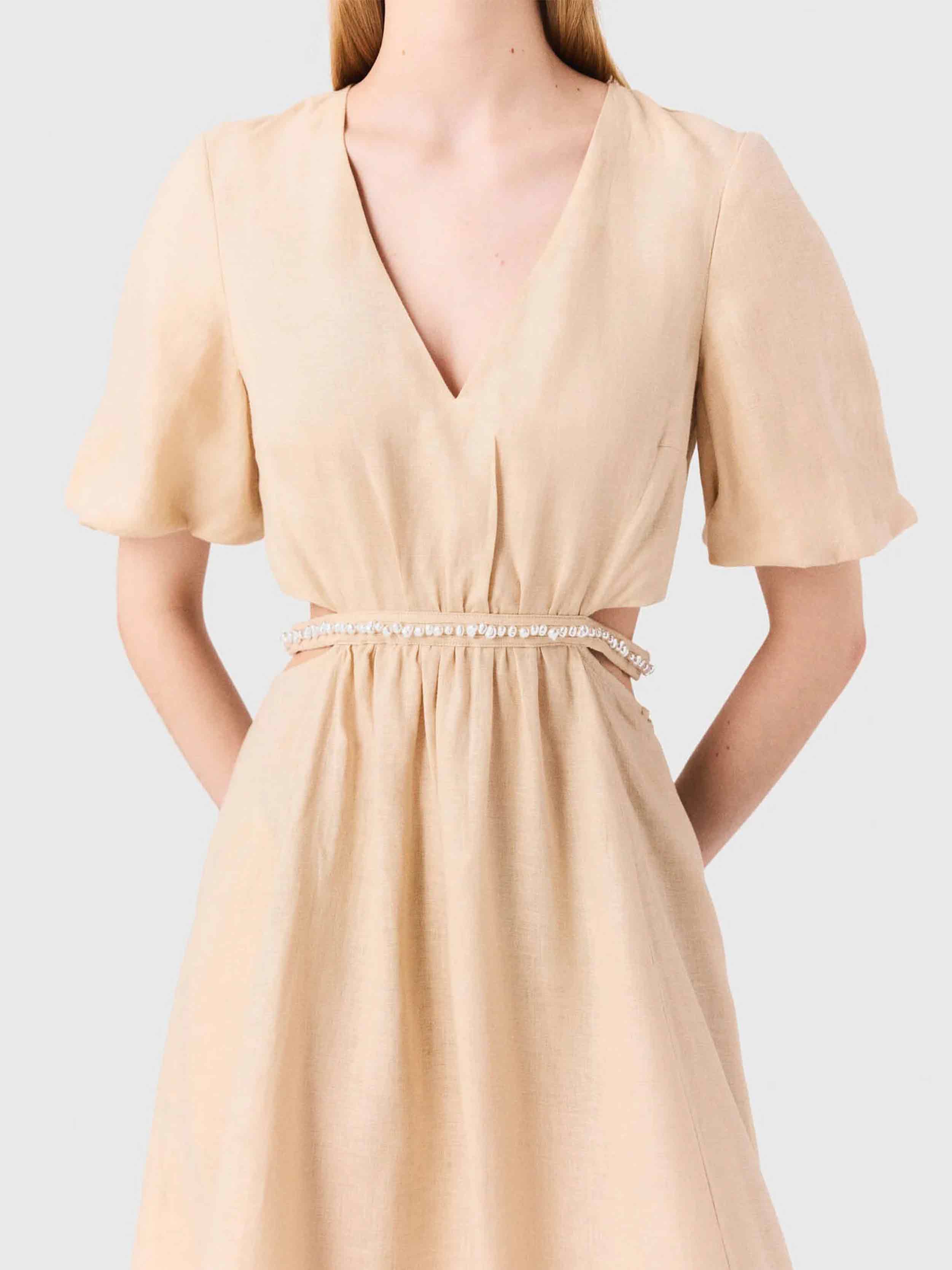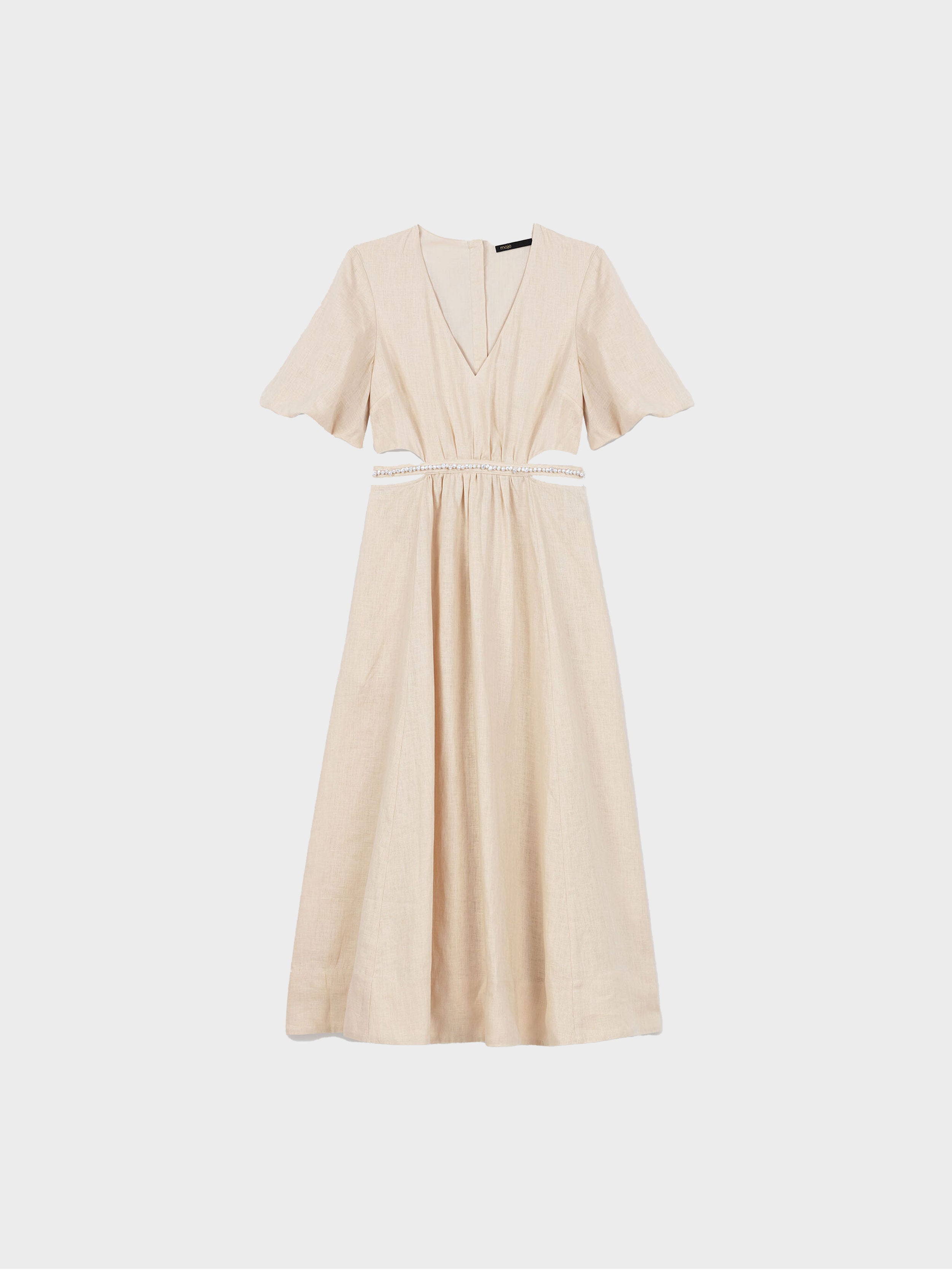 • With a V-neck and 3/4-length sleeves, this maxi dress is light and airy. The waist is emphasised by sparkling beads and cutaway details, for a sophisticated look.