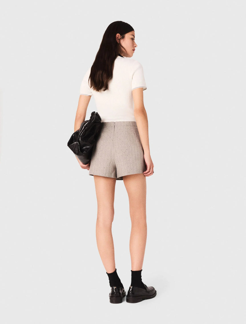 • Pleated skort with striped rhinestones