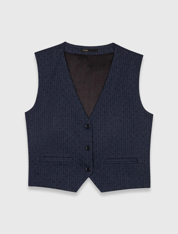 • This sleeveless striped waistcoat plays on sparkling details with its placed rhinestones and fitted cut.