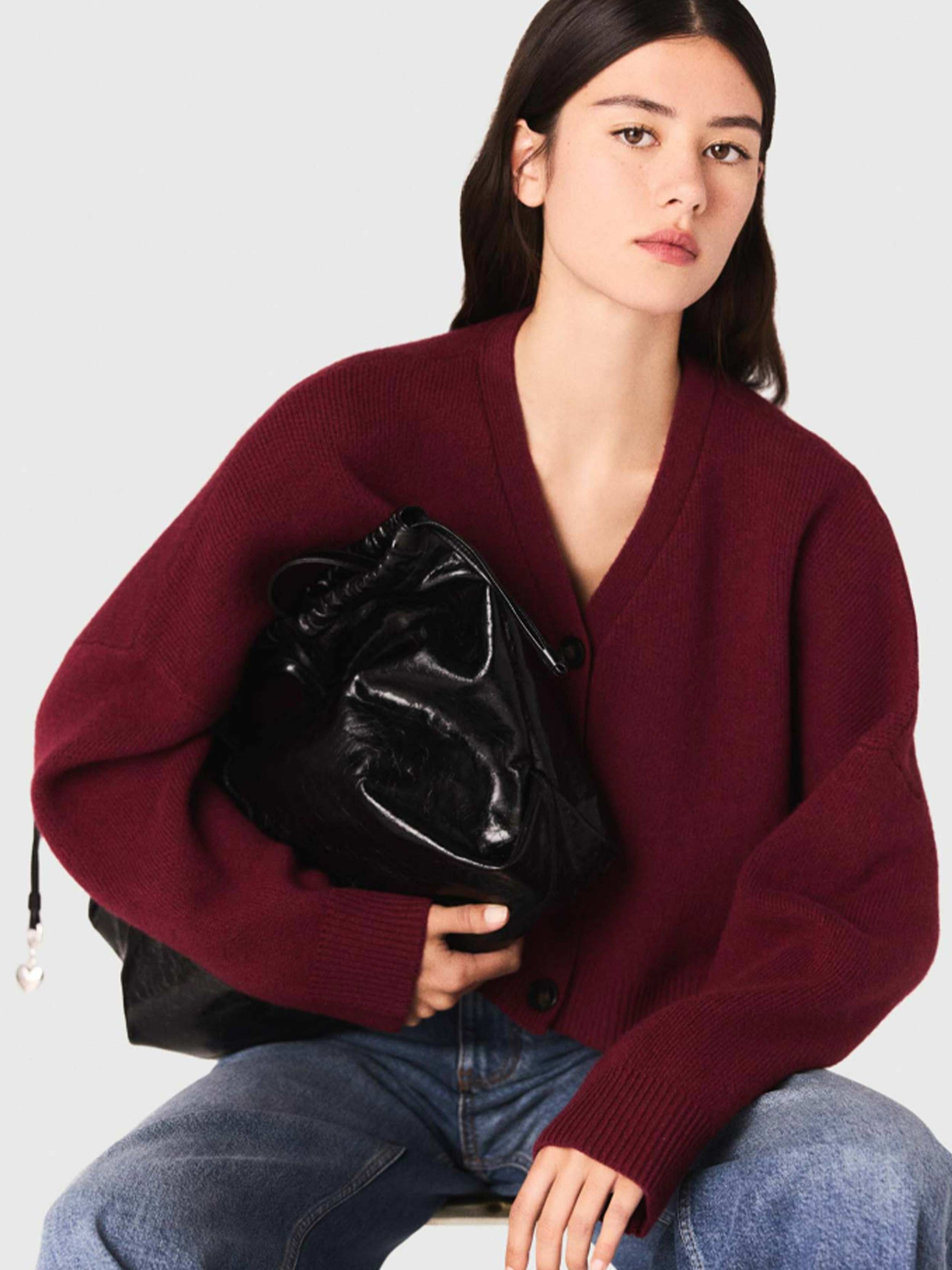 • This cropped cardigan focuses on a soft, comfortable textured knit and a minimalist cut with a structuring effect. With long sleeves and a contrasting button fastening, its cropped cut enhances the silhouette.